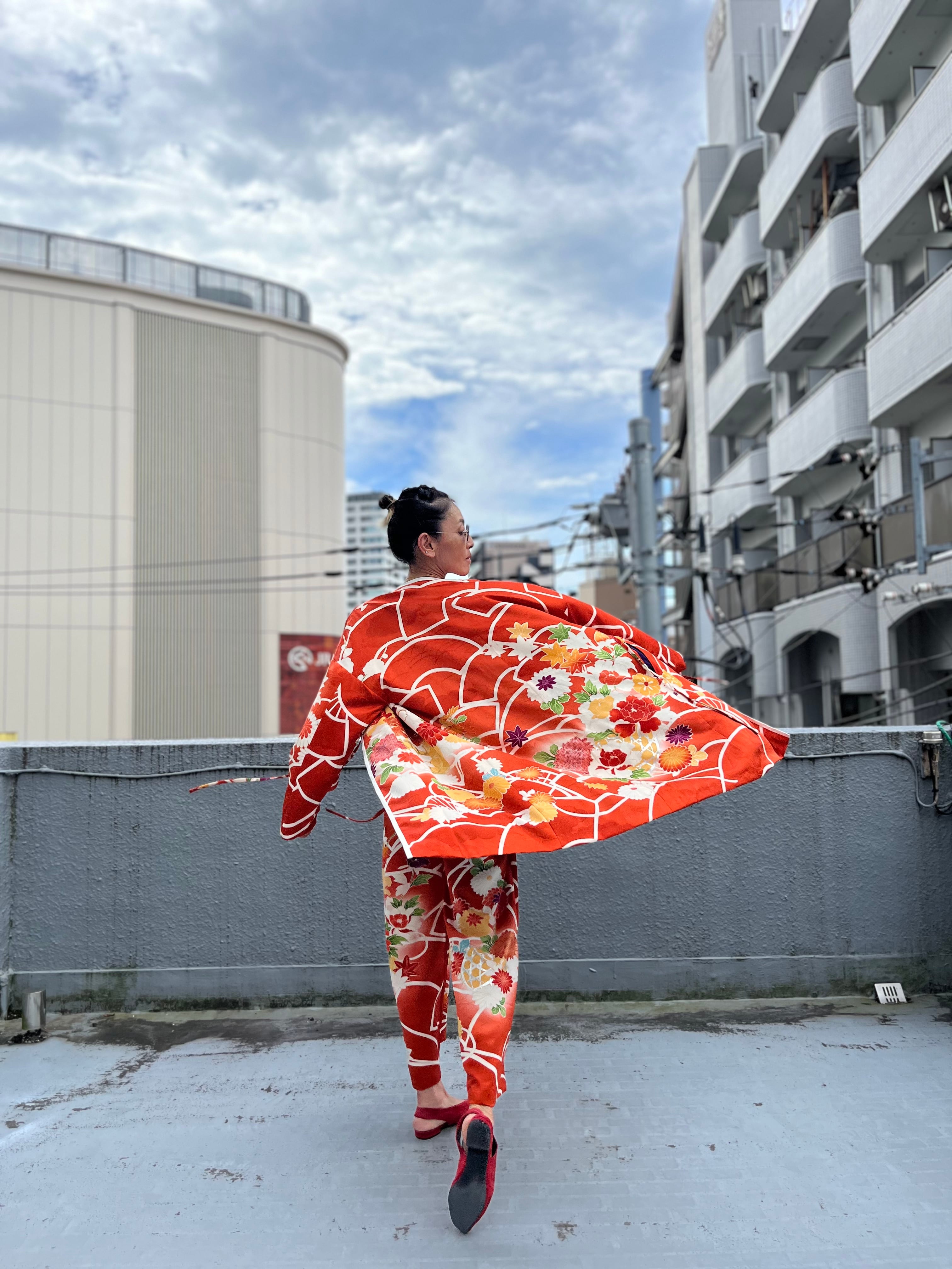 1点もの 花咲か爺さんの軌跡 セットアップ 着物リユースセットアップ ティアードスカート 着物リメイク