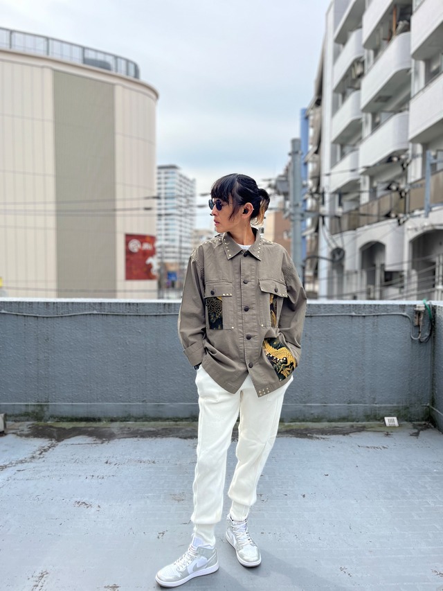 一触即発の女夫龍JK ミリタリーJKリメイク 着物リメイク 帯パッチワークJK