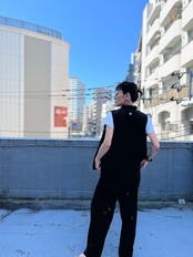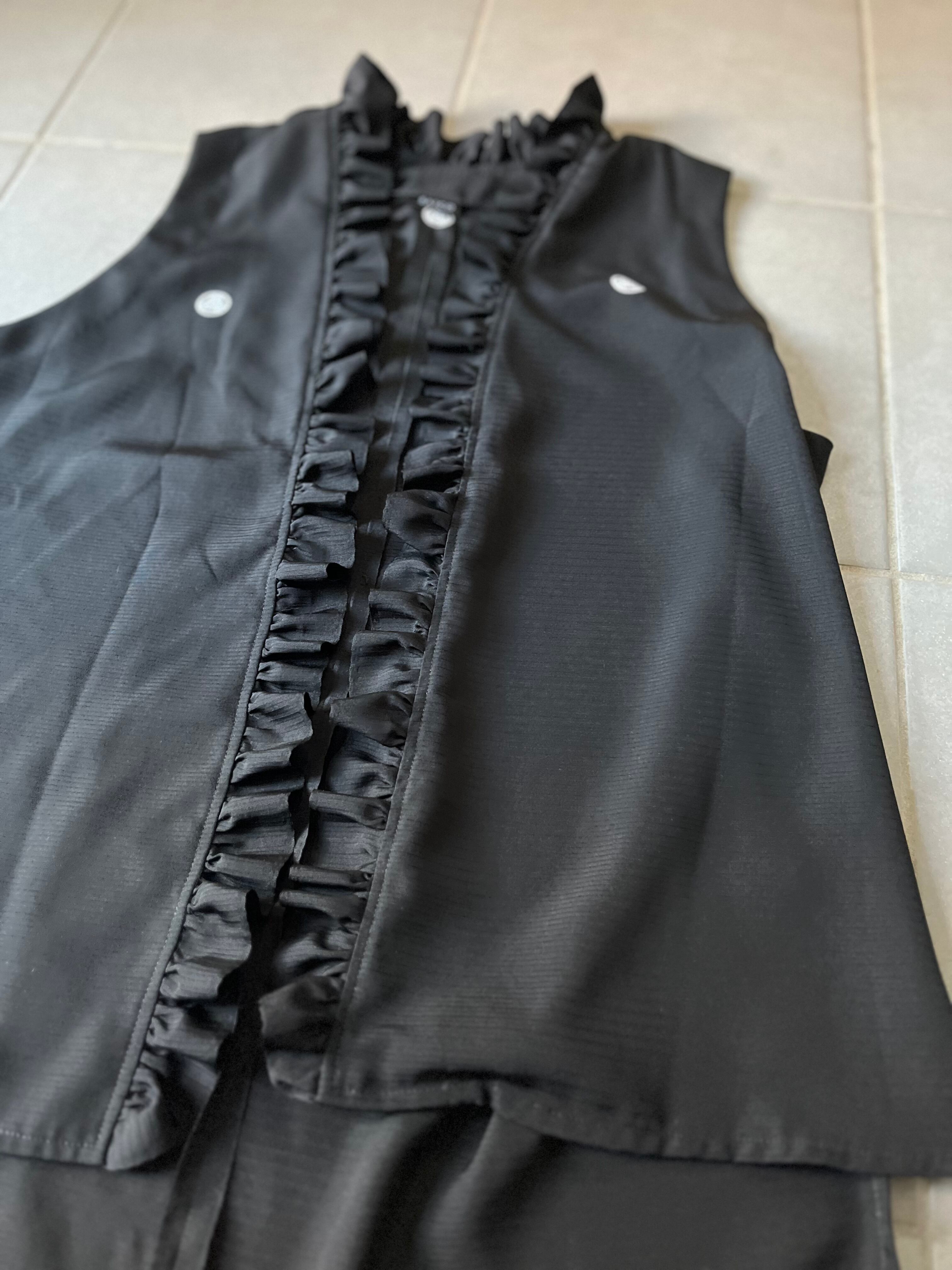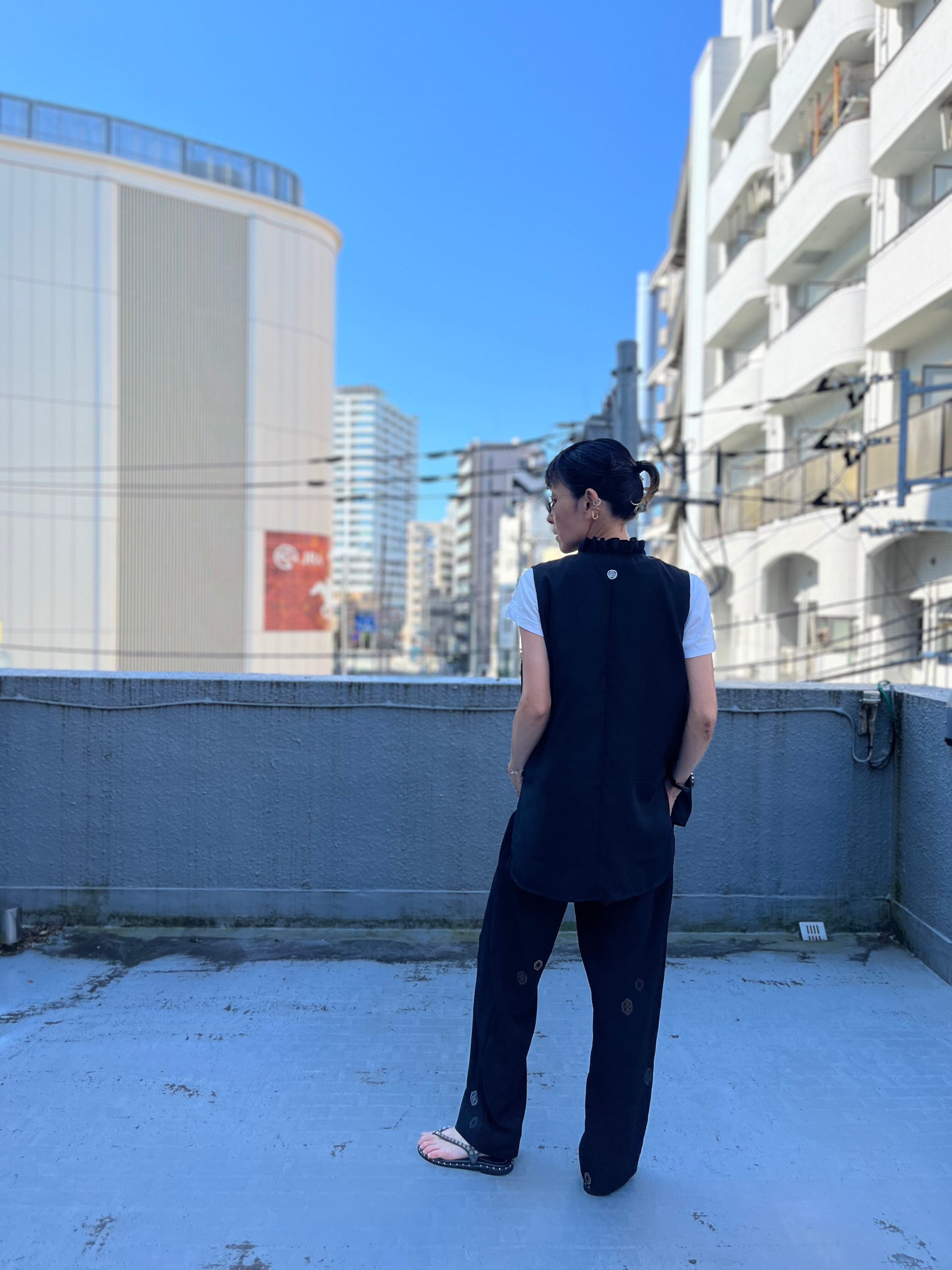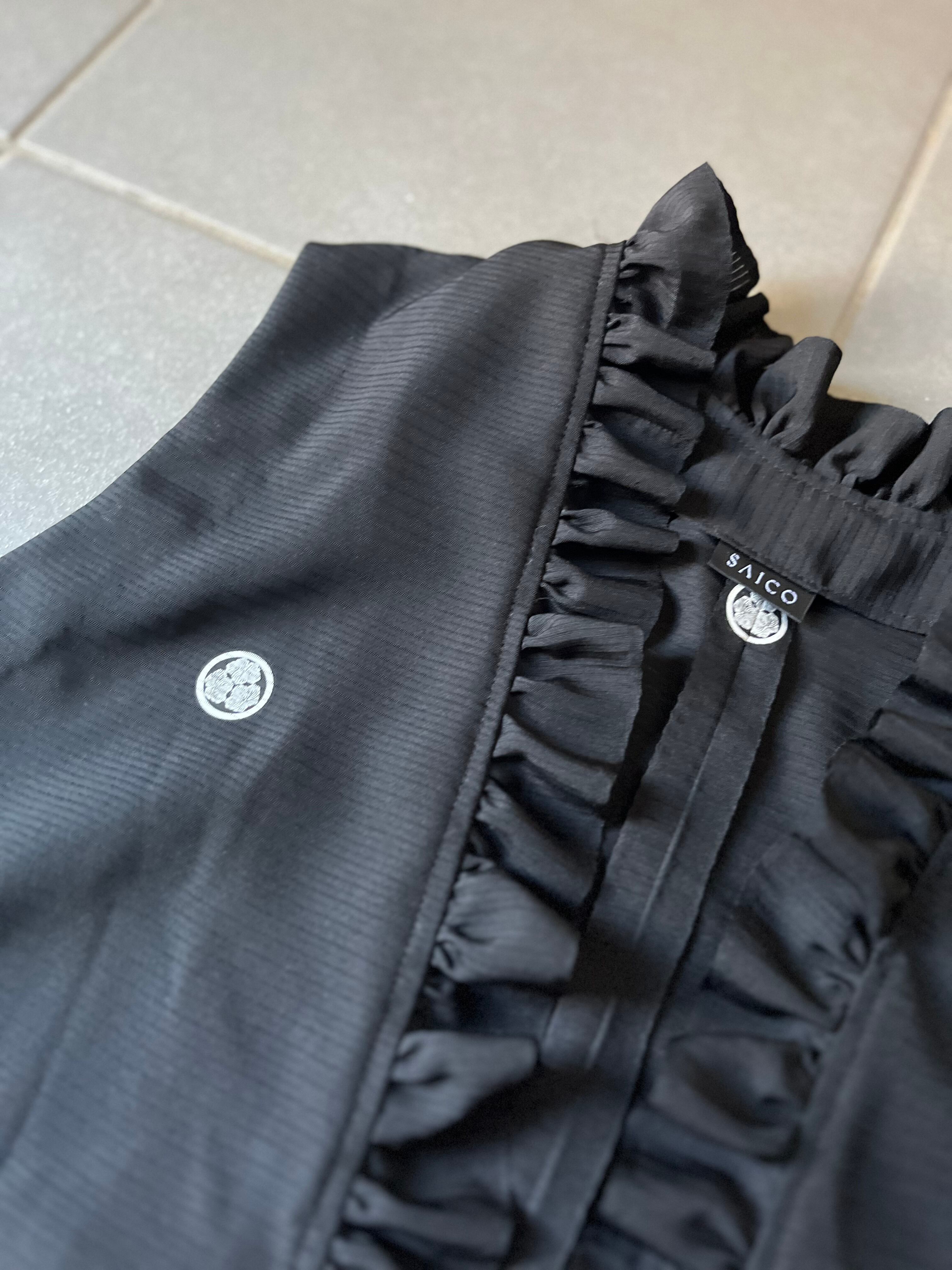 家紋スパイスジレ 紋3つ 黒喪服 家紋付絽ジレ 着物リユース 着物リメイク