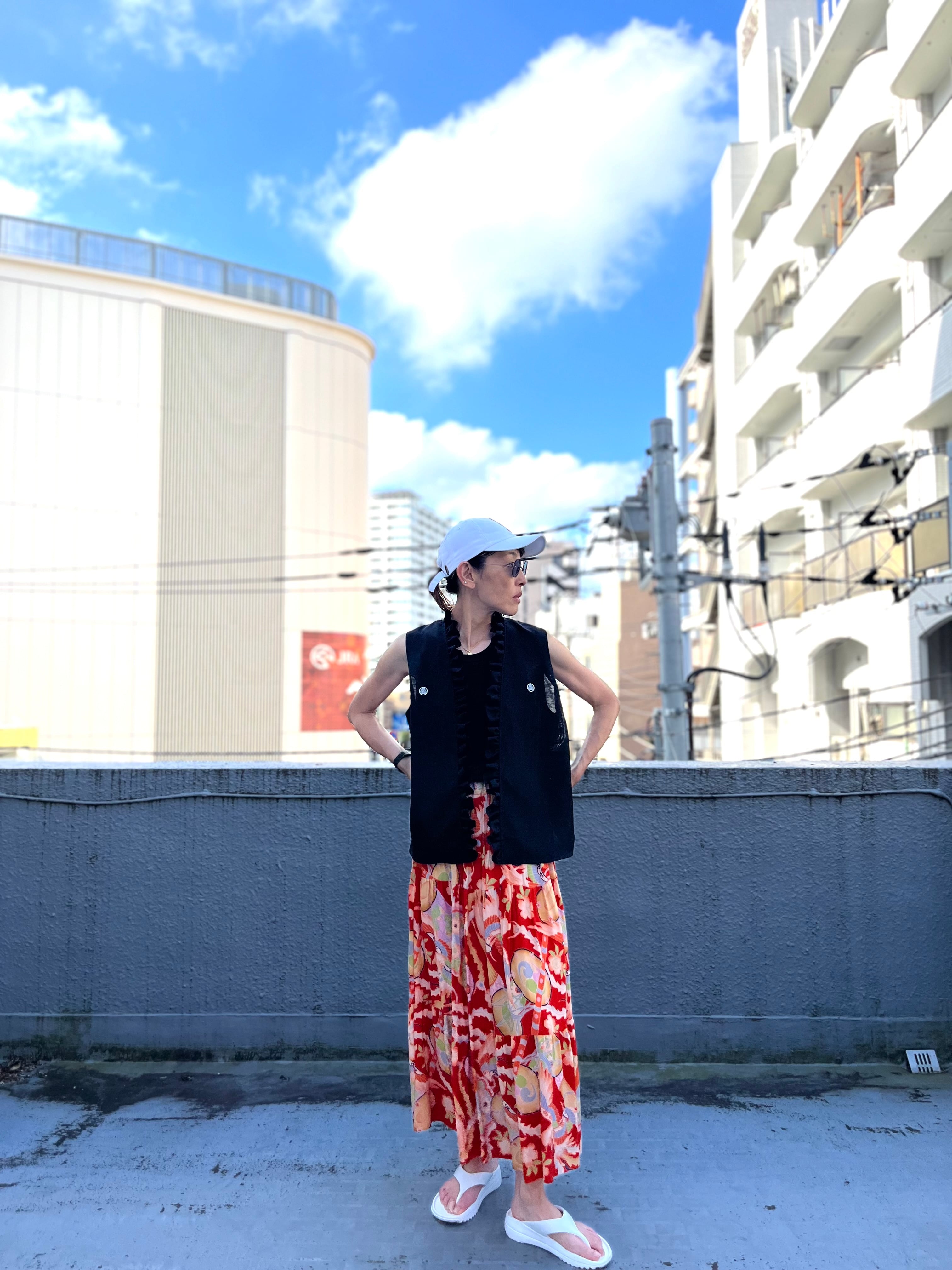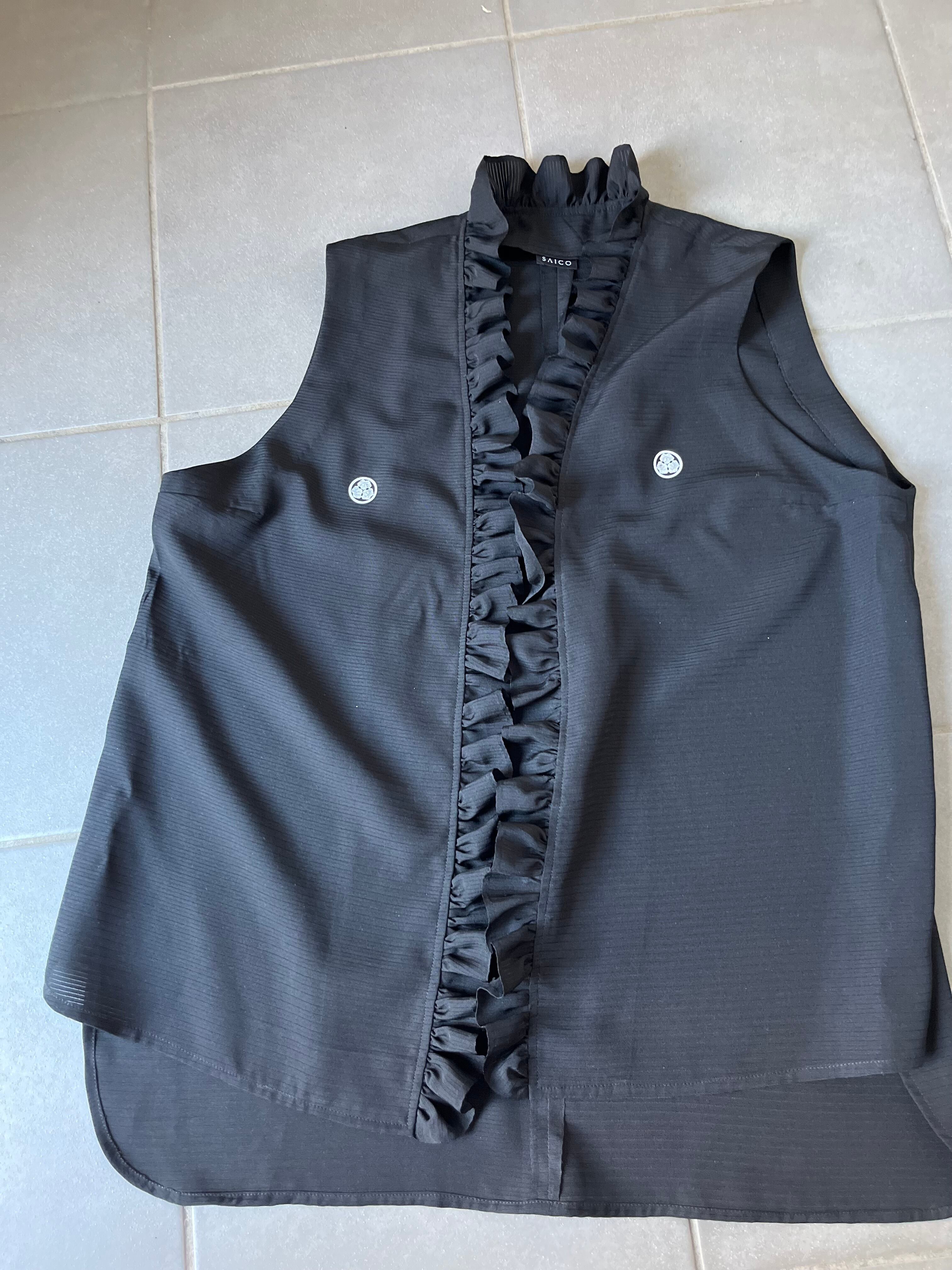 家紋スパイスジレ 紋2つ 黒喪服 家紋付絽ジレ 着物リユース 着物リメイク