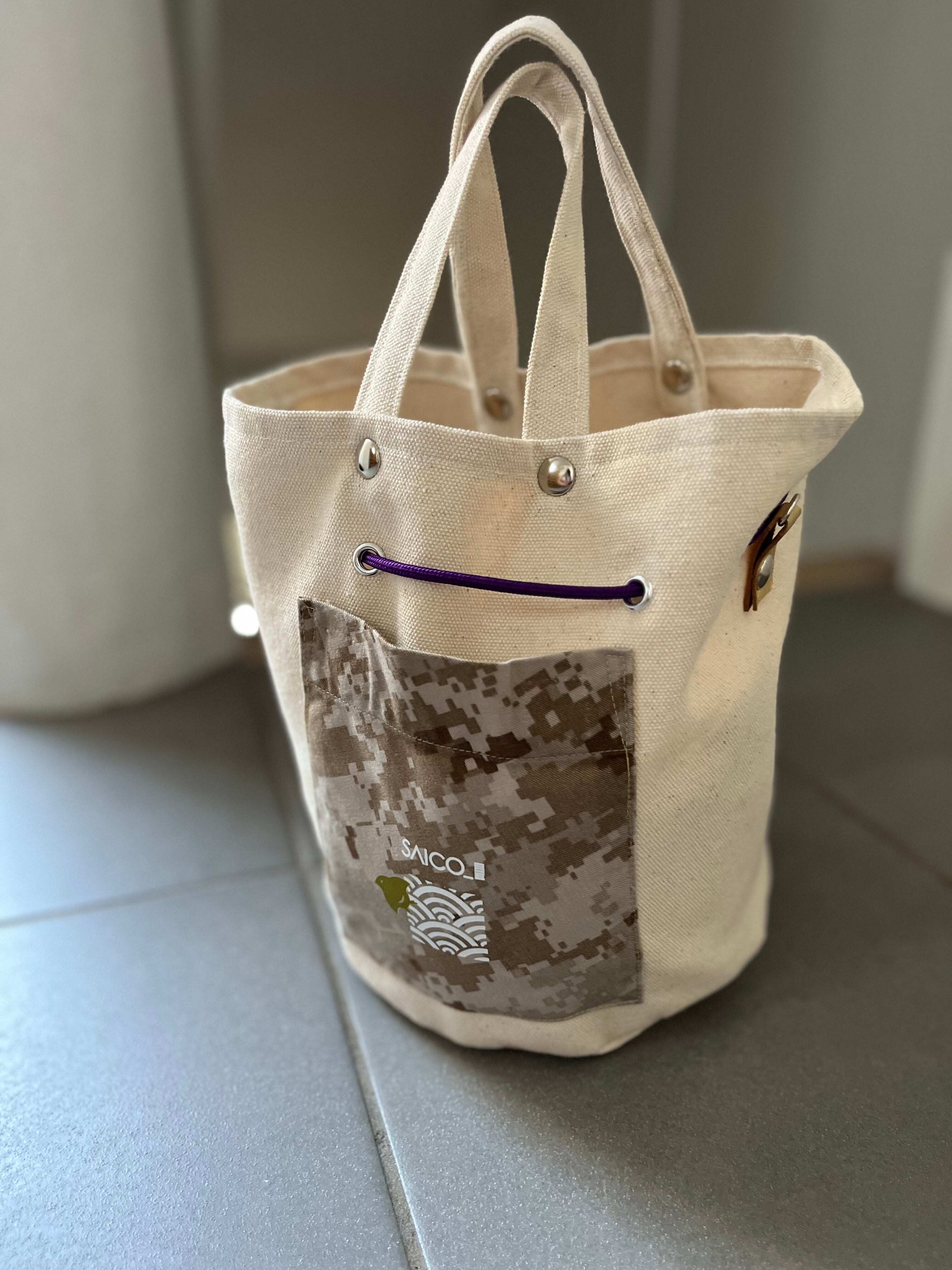 短い持ち手でトートしても巾着仕様にしても