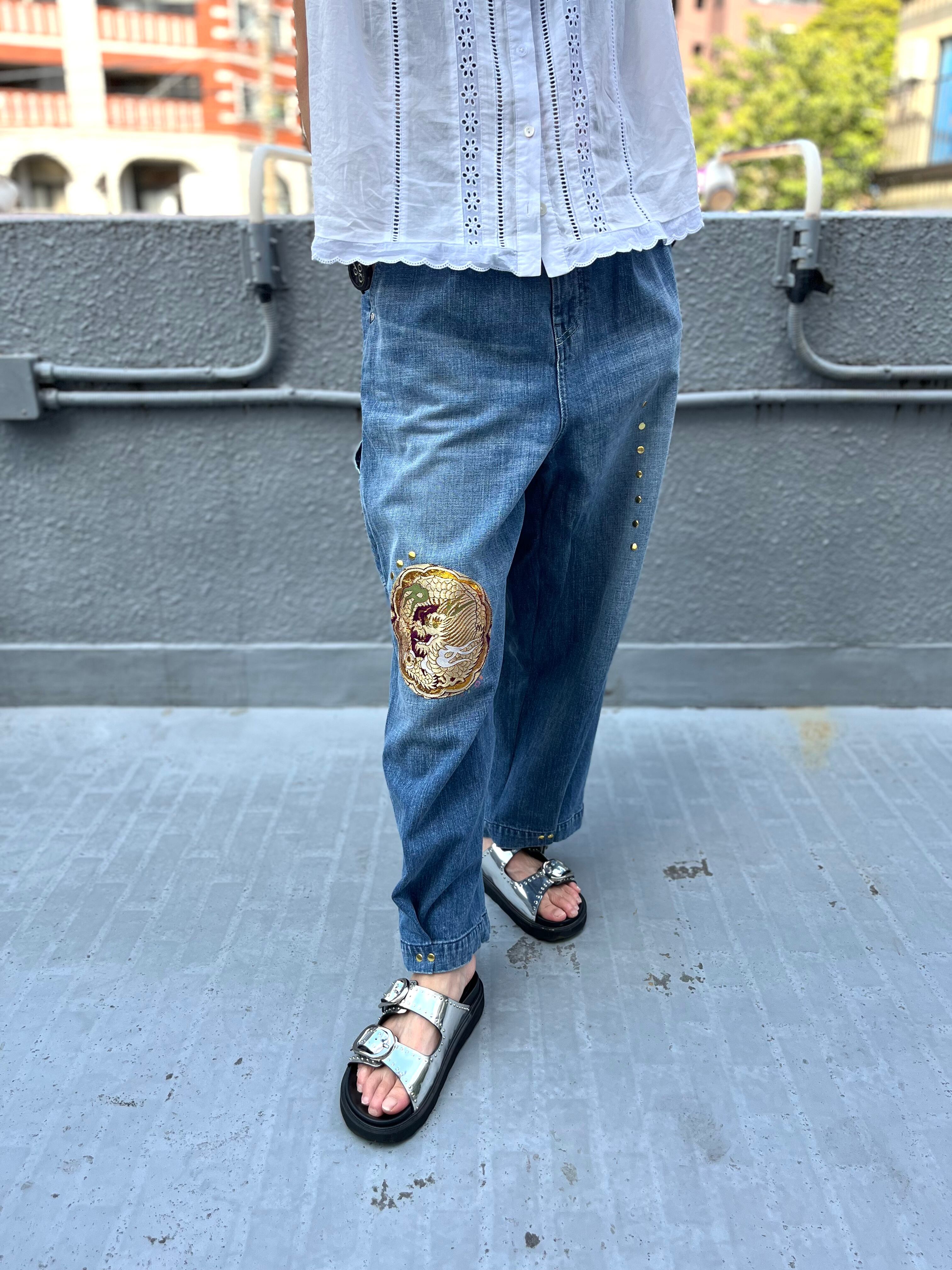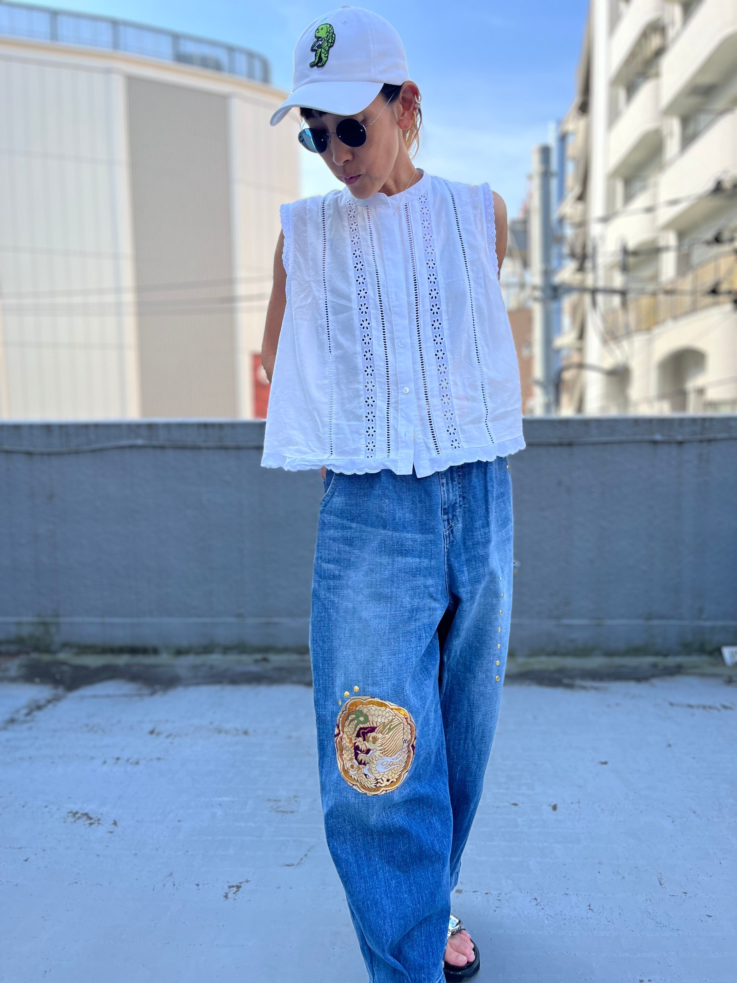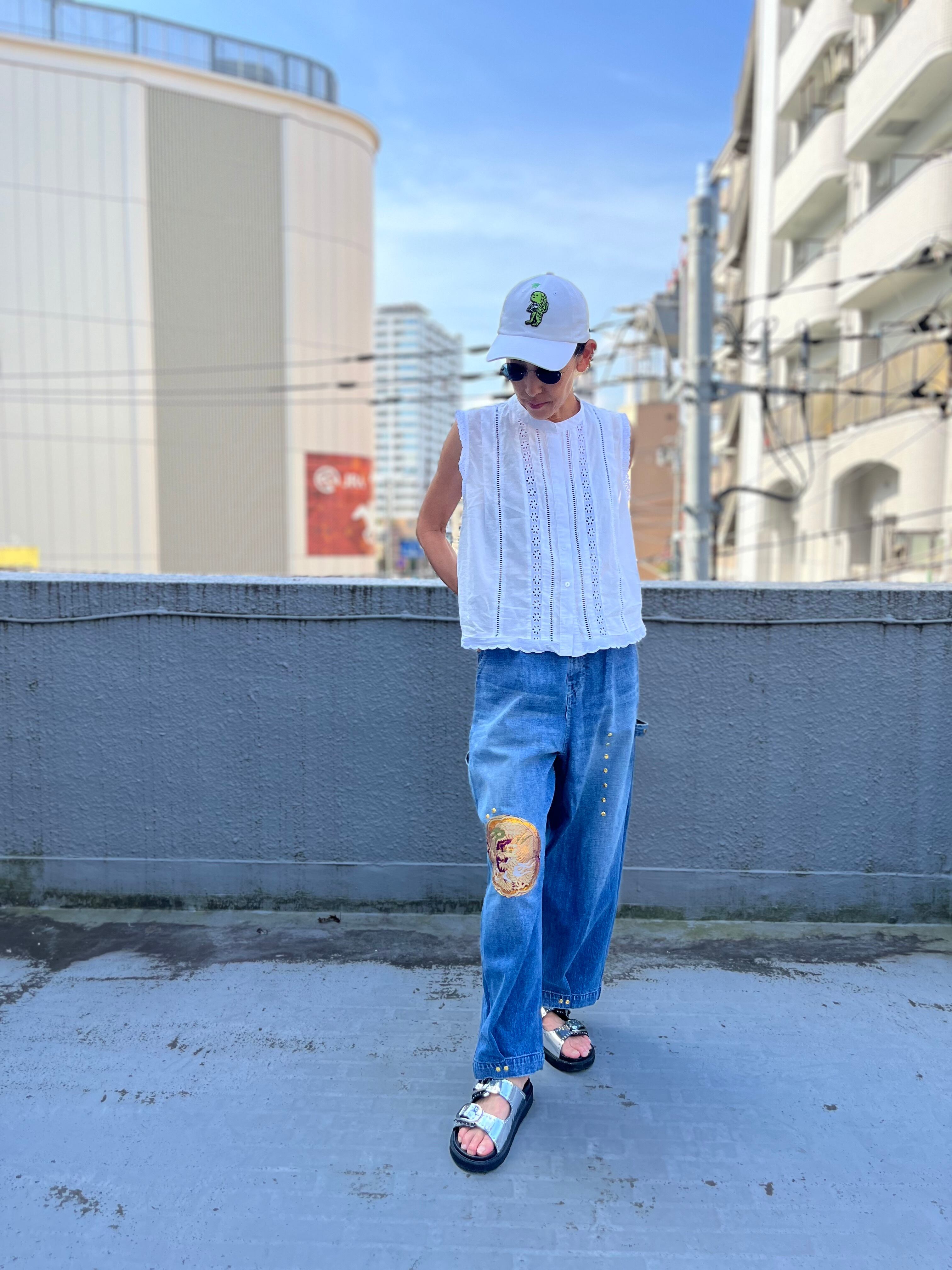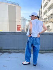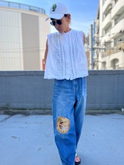 スタッヅで裾を絞ったりしてボーイズライクに変化させている