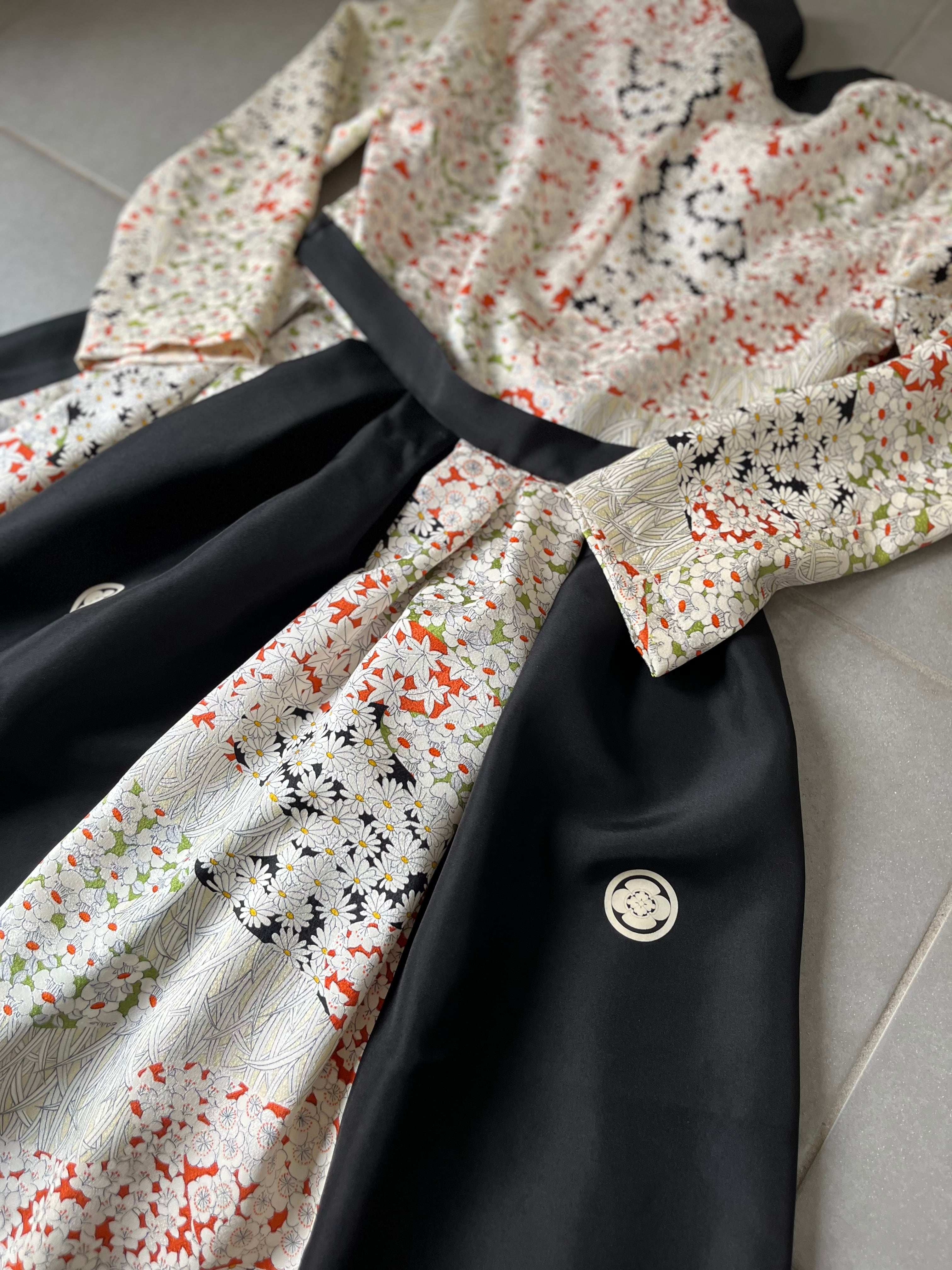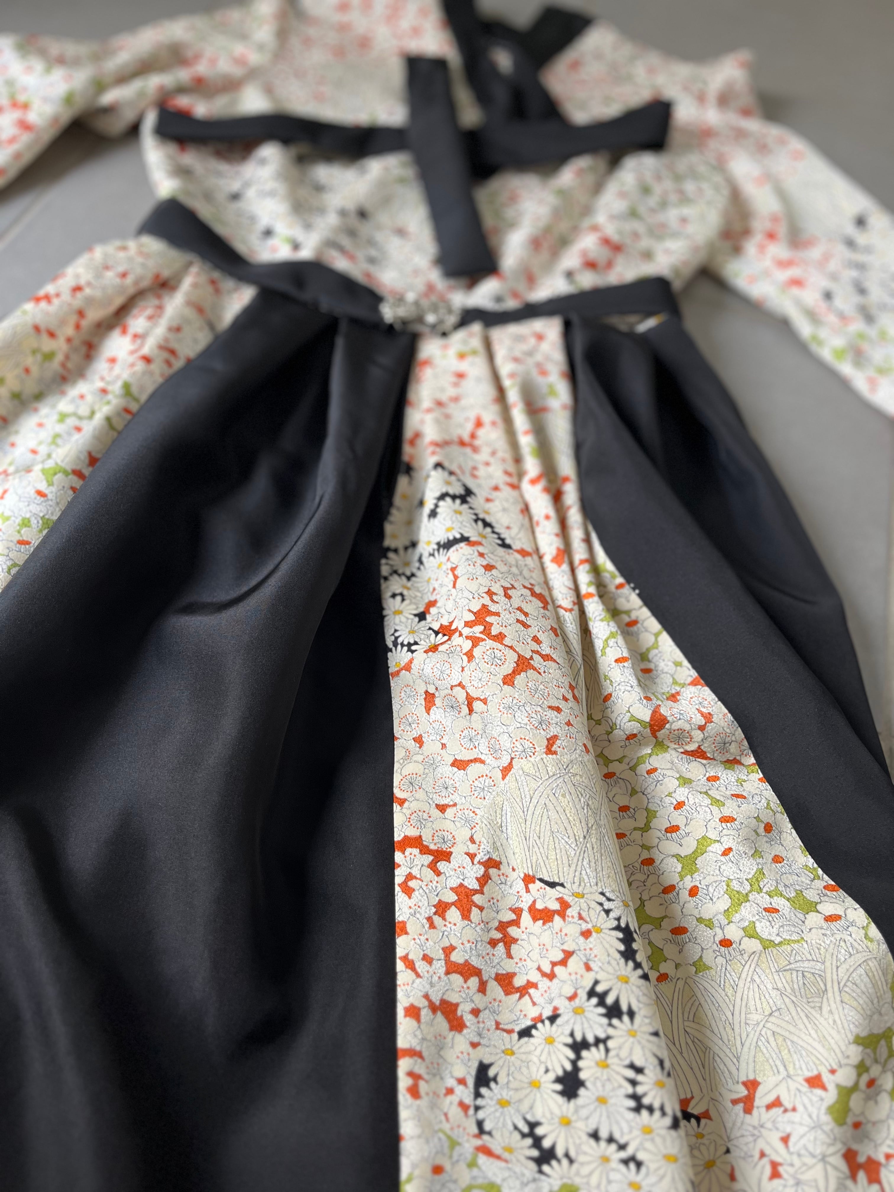 綴り合わせワンピース 着物リメイクワンピース 小紋ワンピース 着物リユース