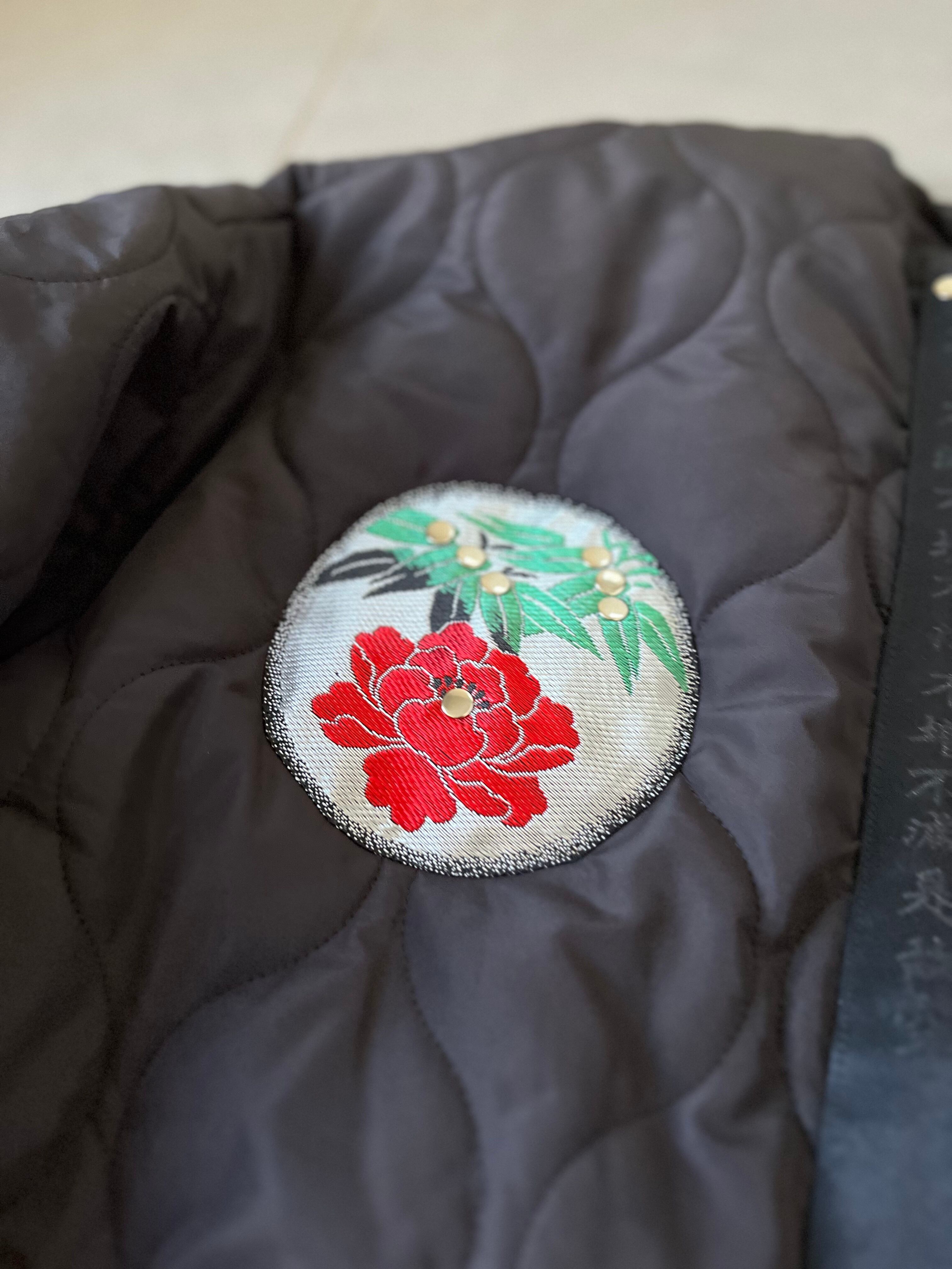 着用時にベルトやバックなどの引っ掛かりや 摩擦にご注意ください、万が一刺繍がほつれた時は引っ張らずに、そのままご使用になるか、気になる方はハサミなどでカットしてください