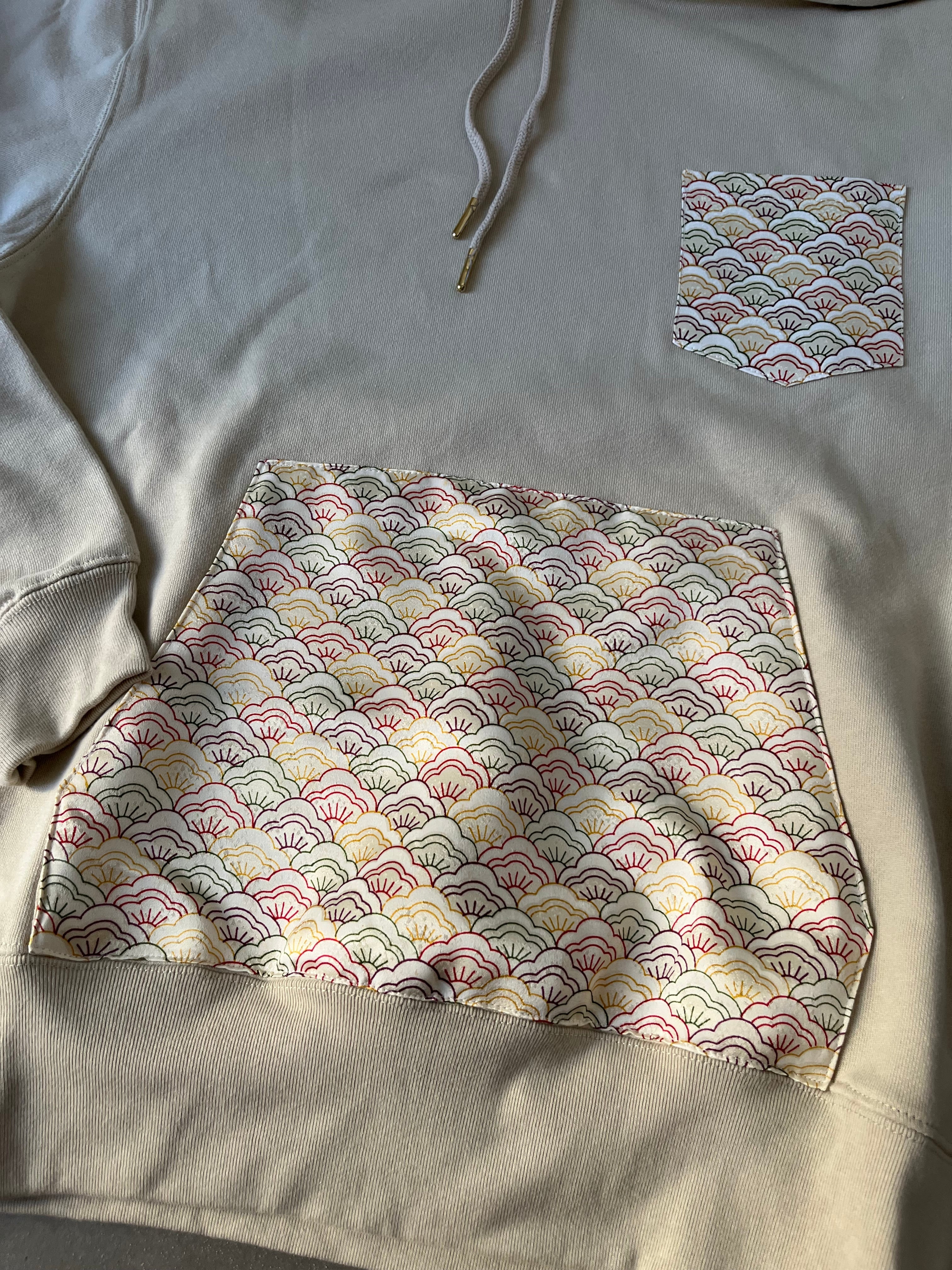 着物ハギレフーディ 着物リユースフーディ 着物リメイク 着物パッチワークフーディ パーカー