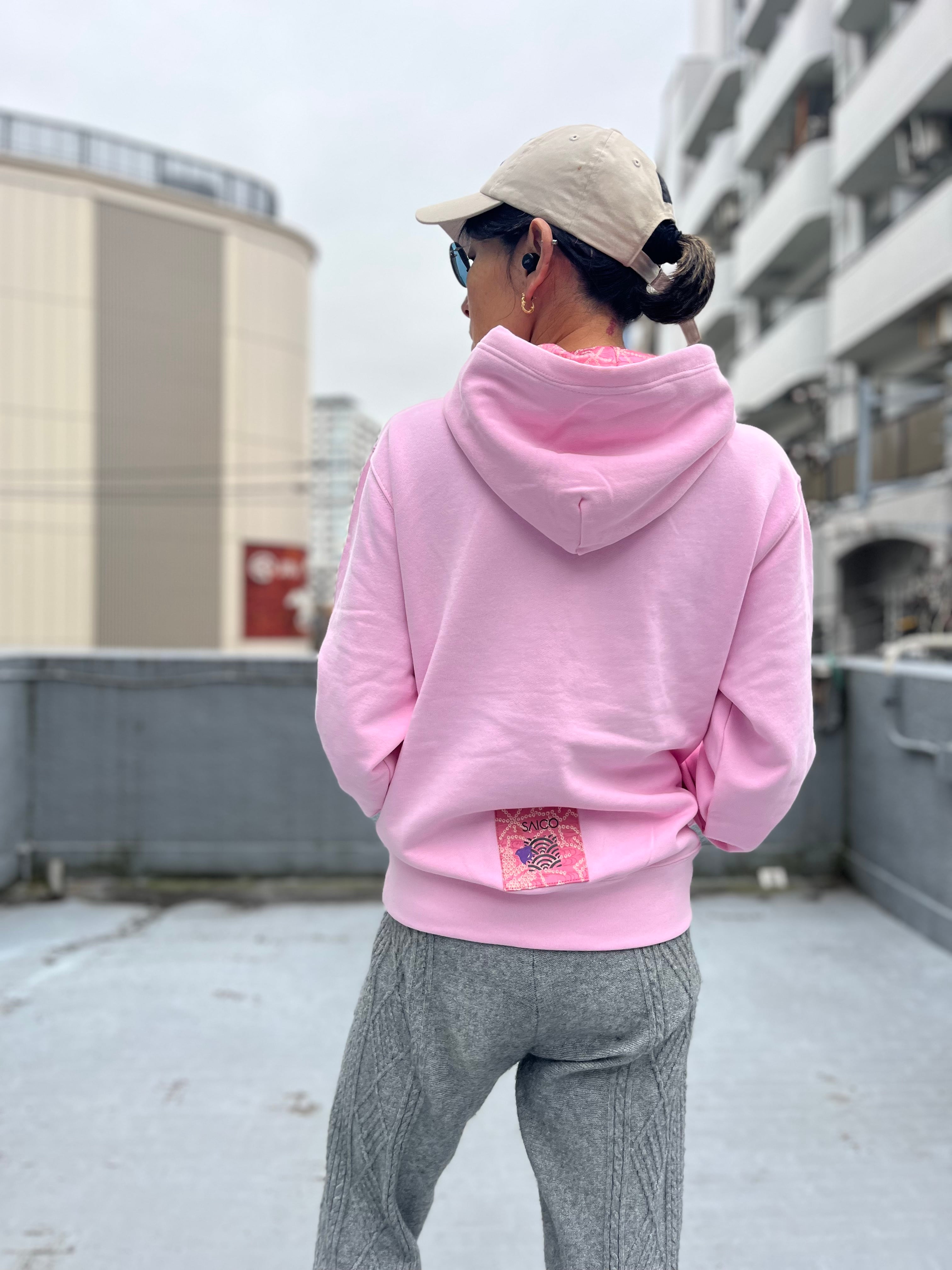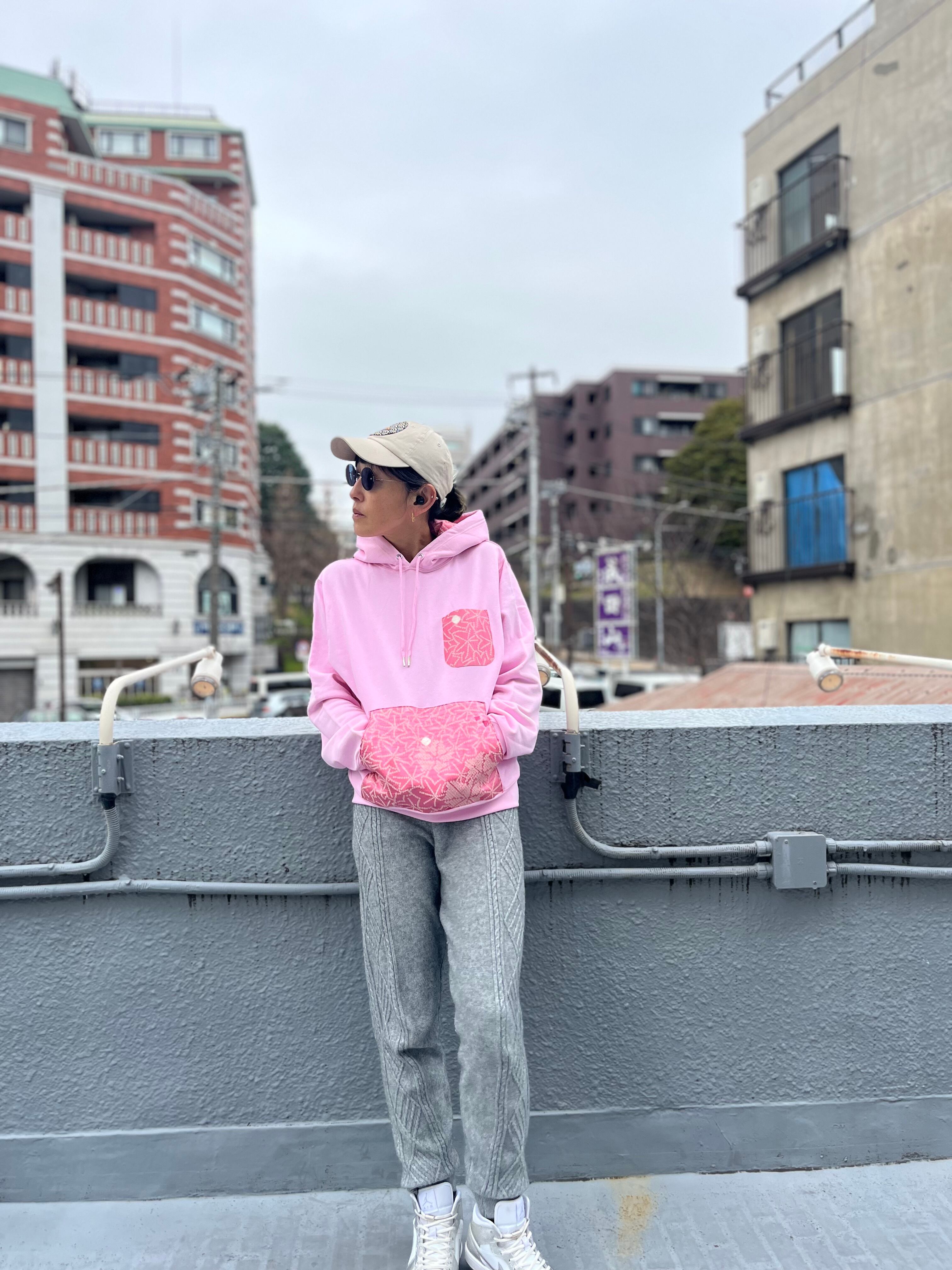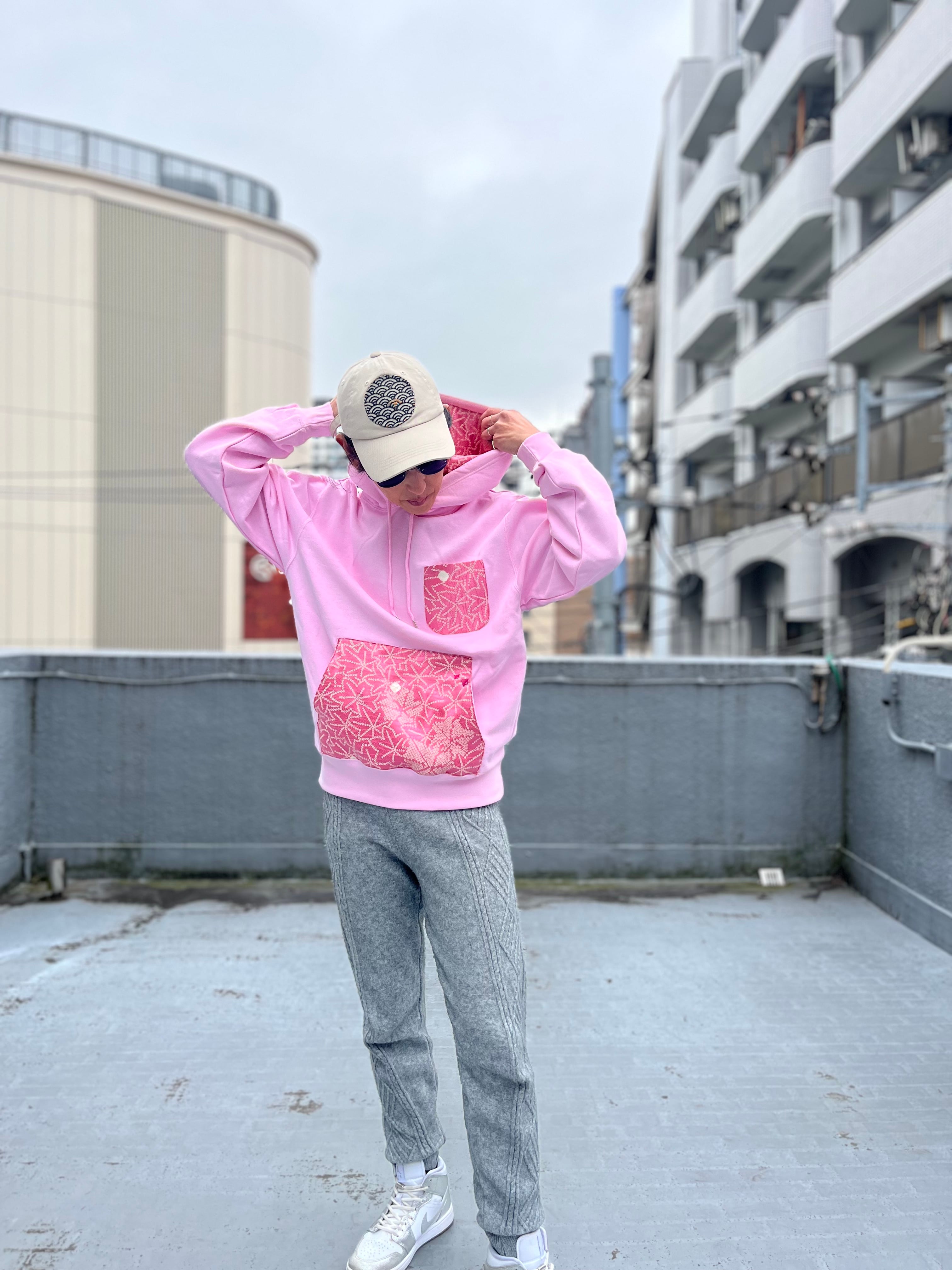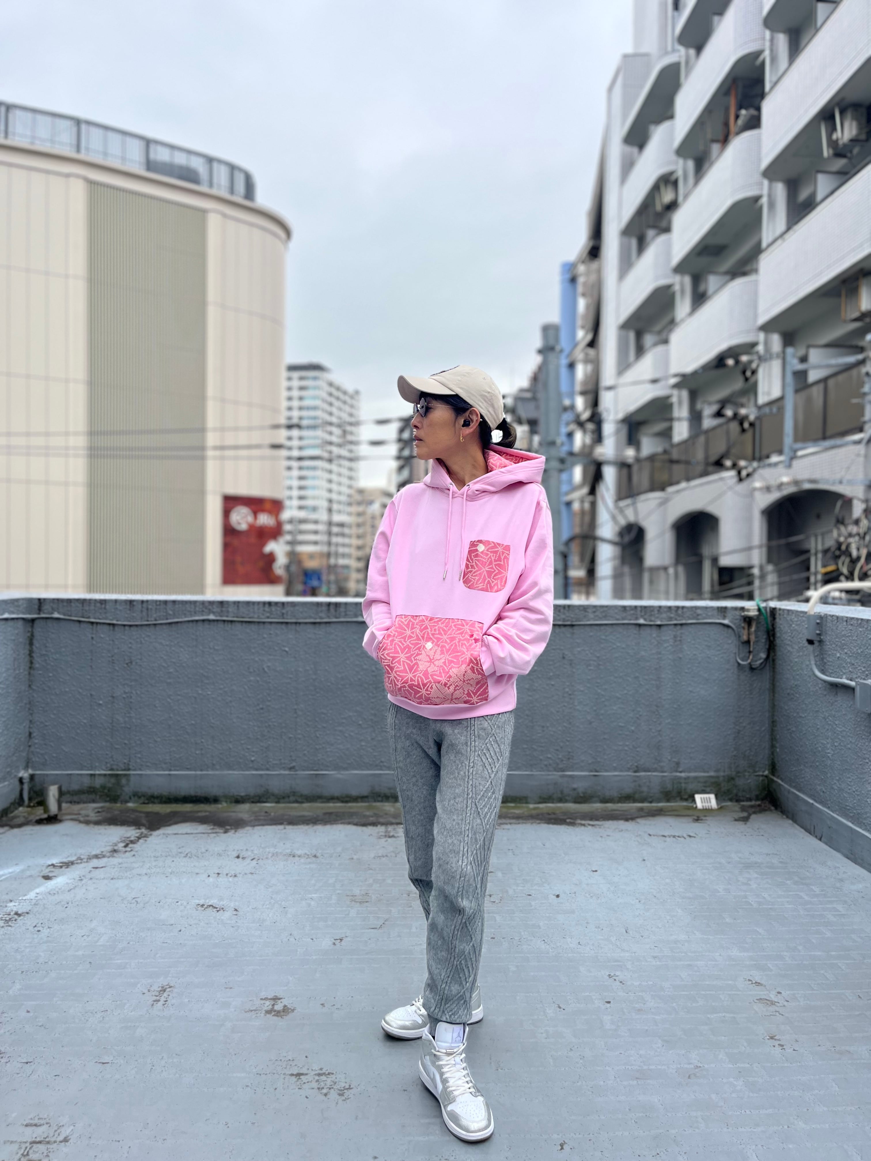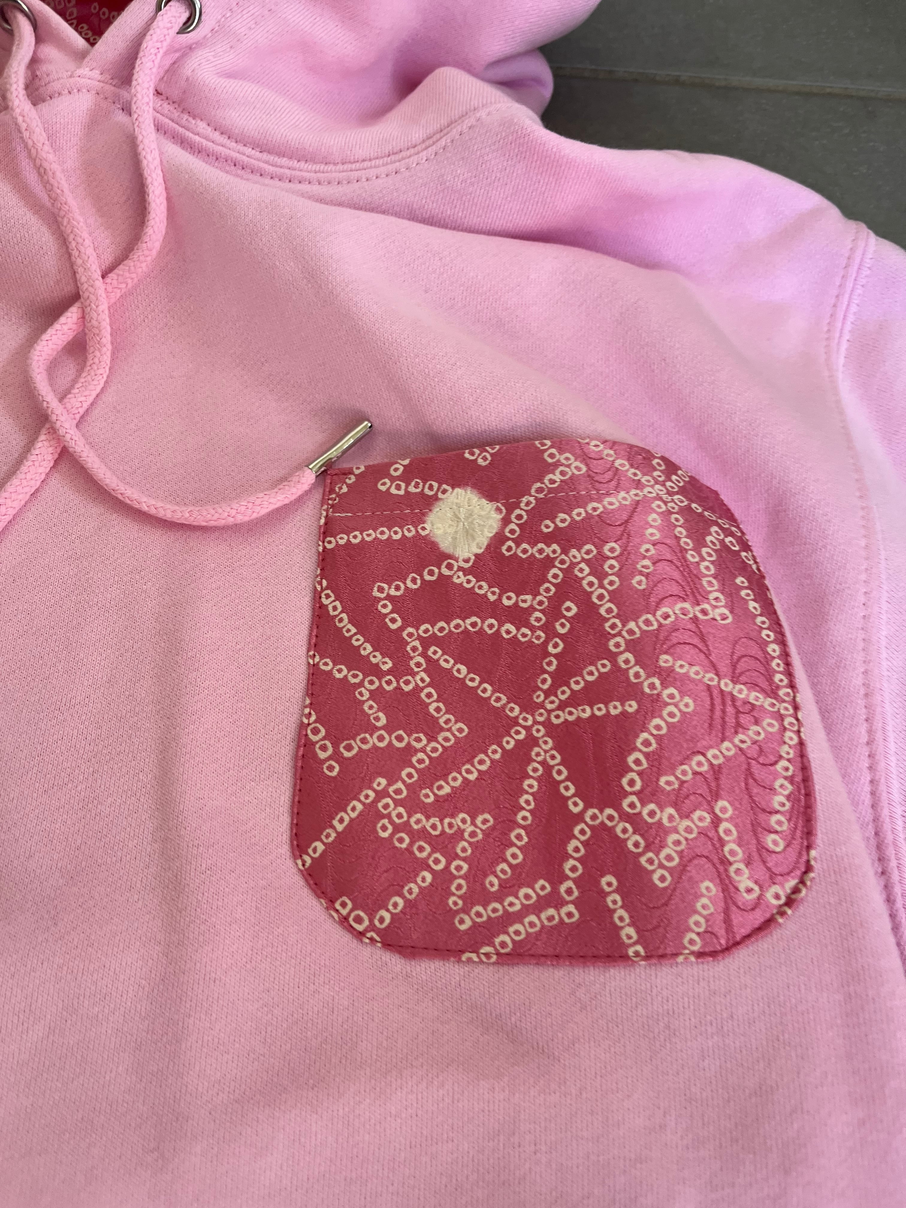 着物ハギレフーディ 着物リユースフーディ 着物リメイク 着物パッチワークフーディ パーカー
