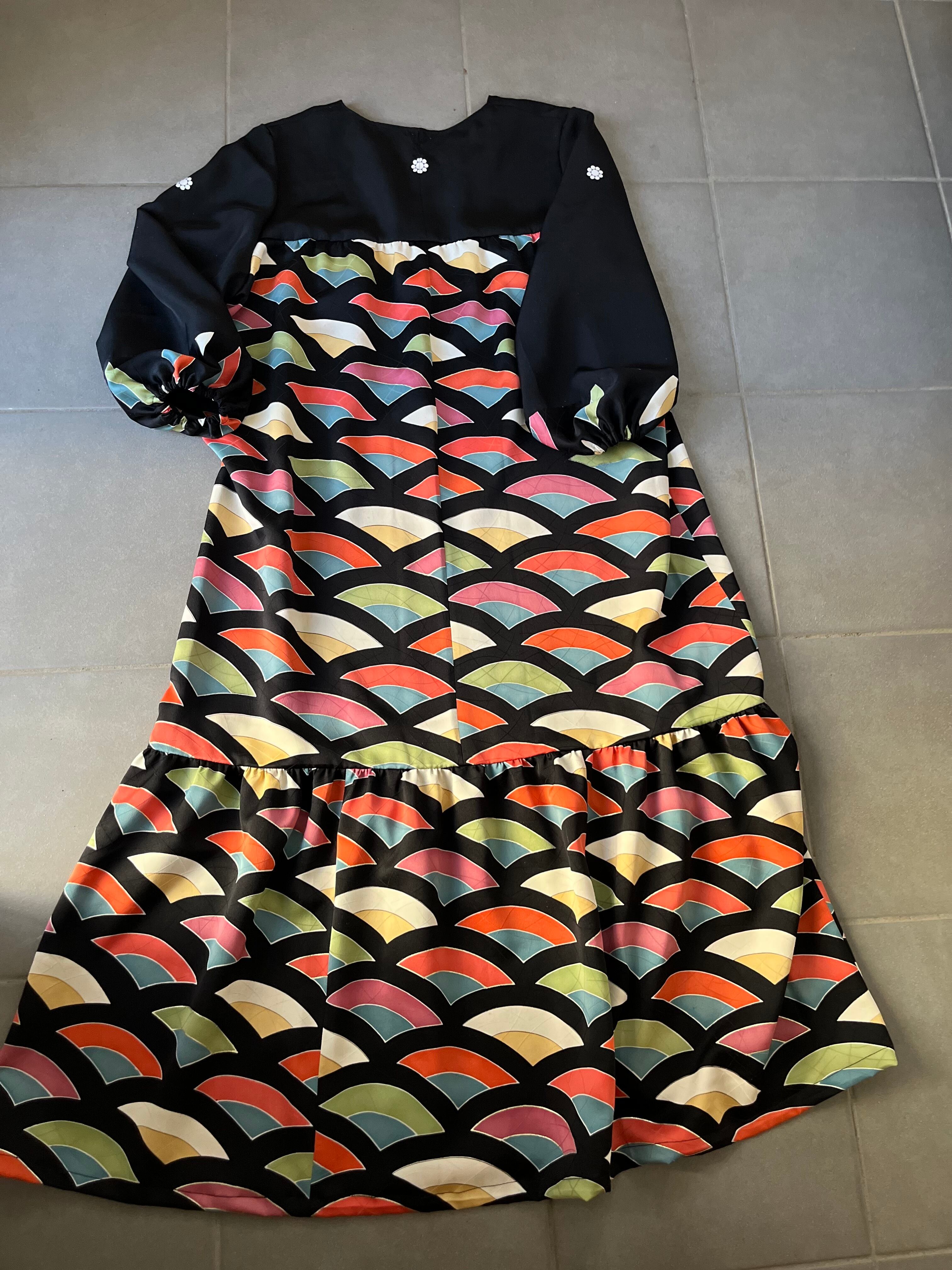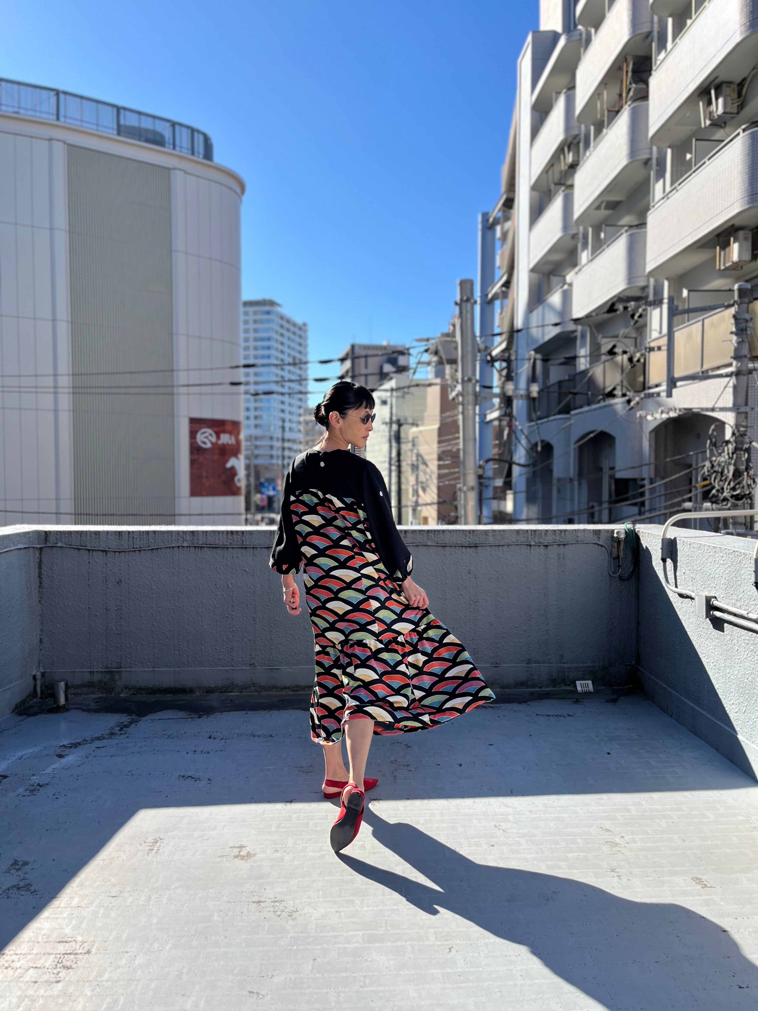 ポニョワンピ2026 ティアードワンピ 着物リメイクワンピース 小紋ワンピース 着物リユース