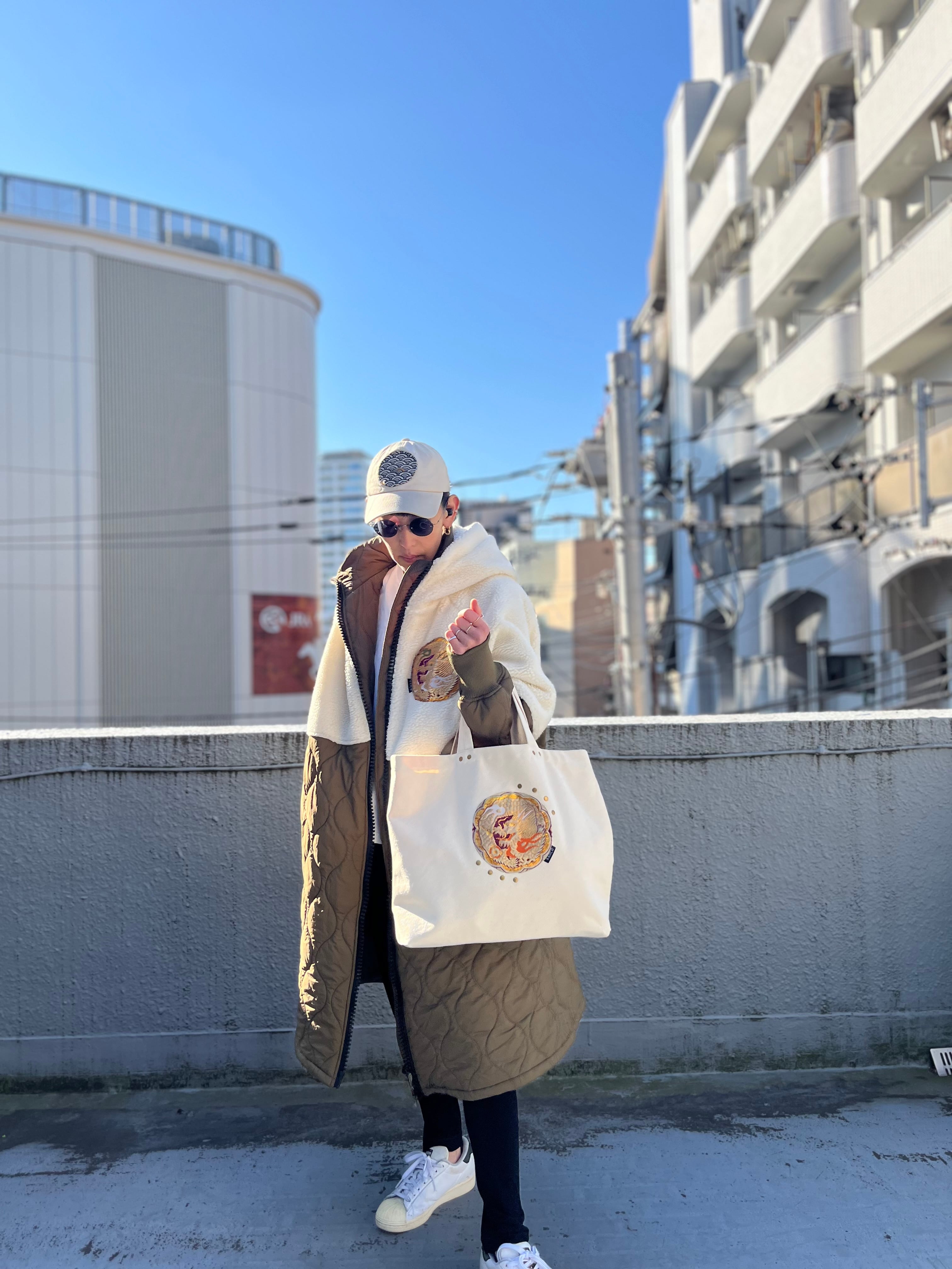 着用時にベルトやバックなどの引っ掛かりや 摩擦にご注意ください、万が一刺繍がほつれた時は引っ張らずに、そのままご使用になるか、気になる方はハサミなどでカットしてください