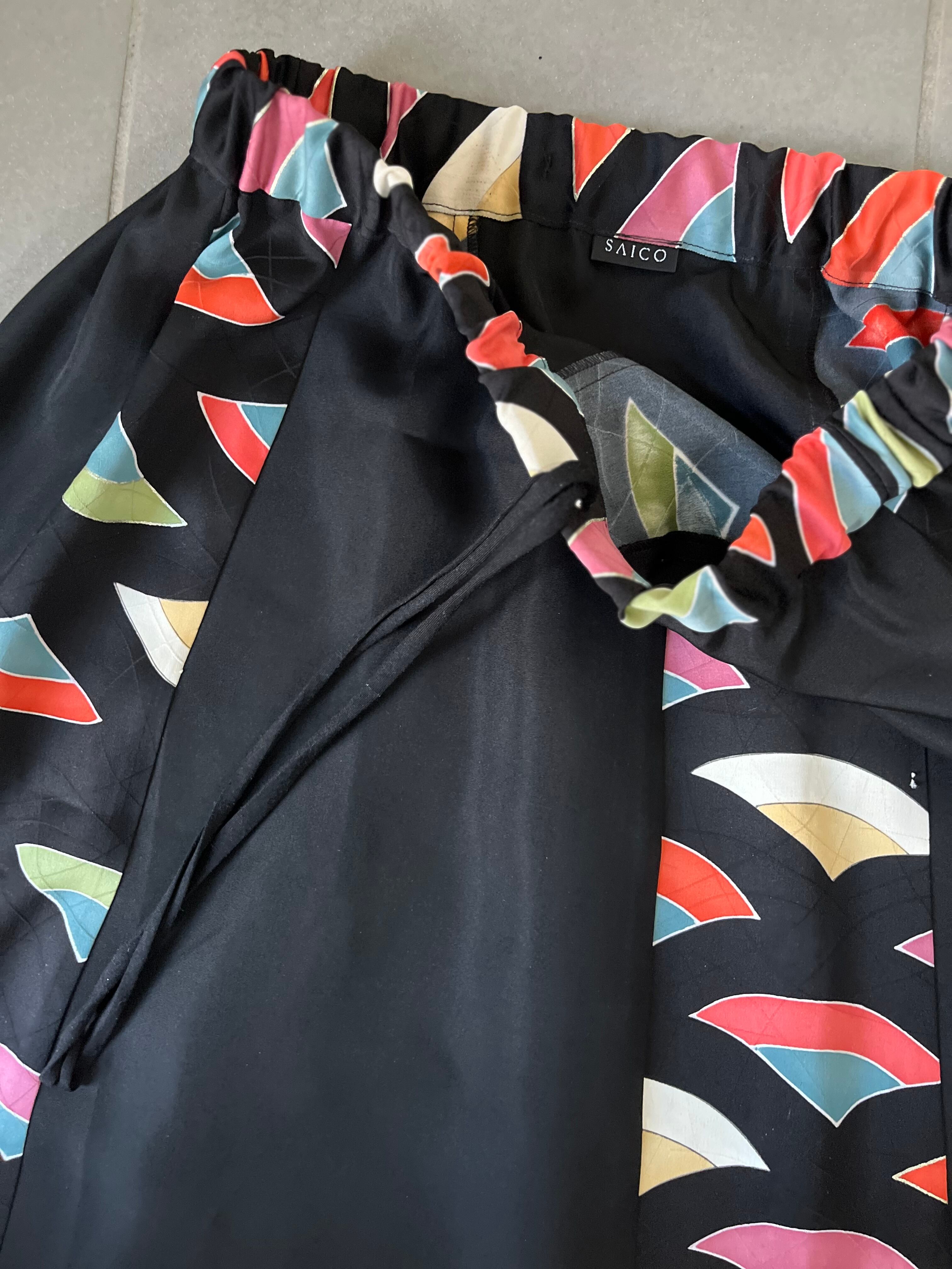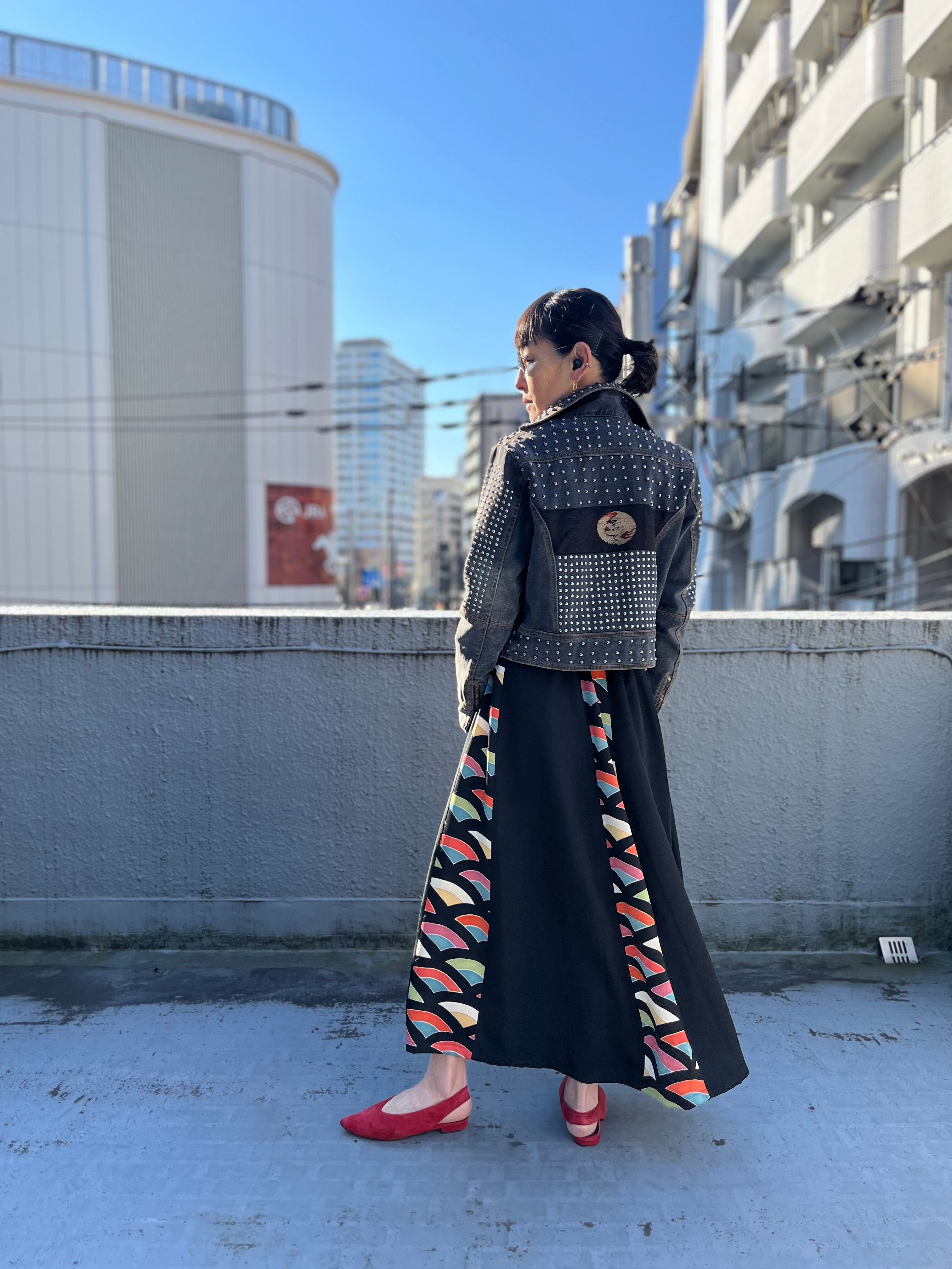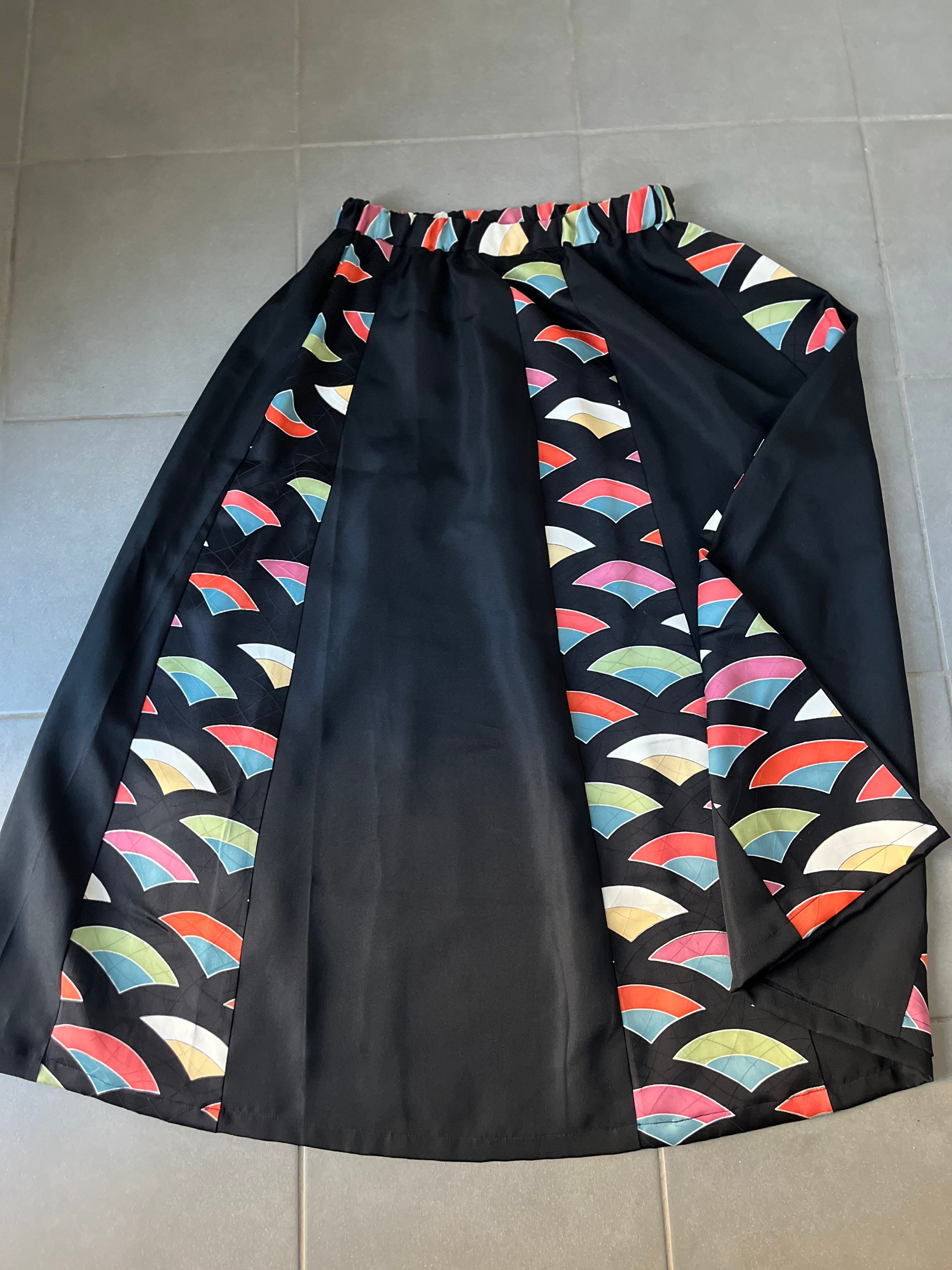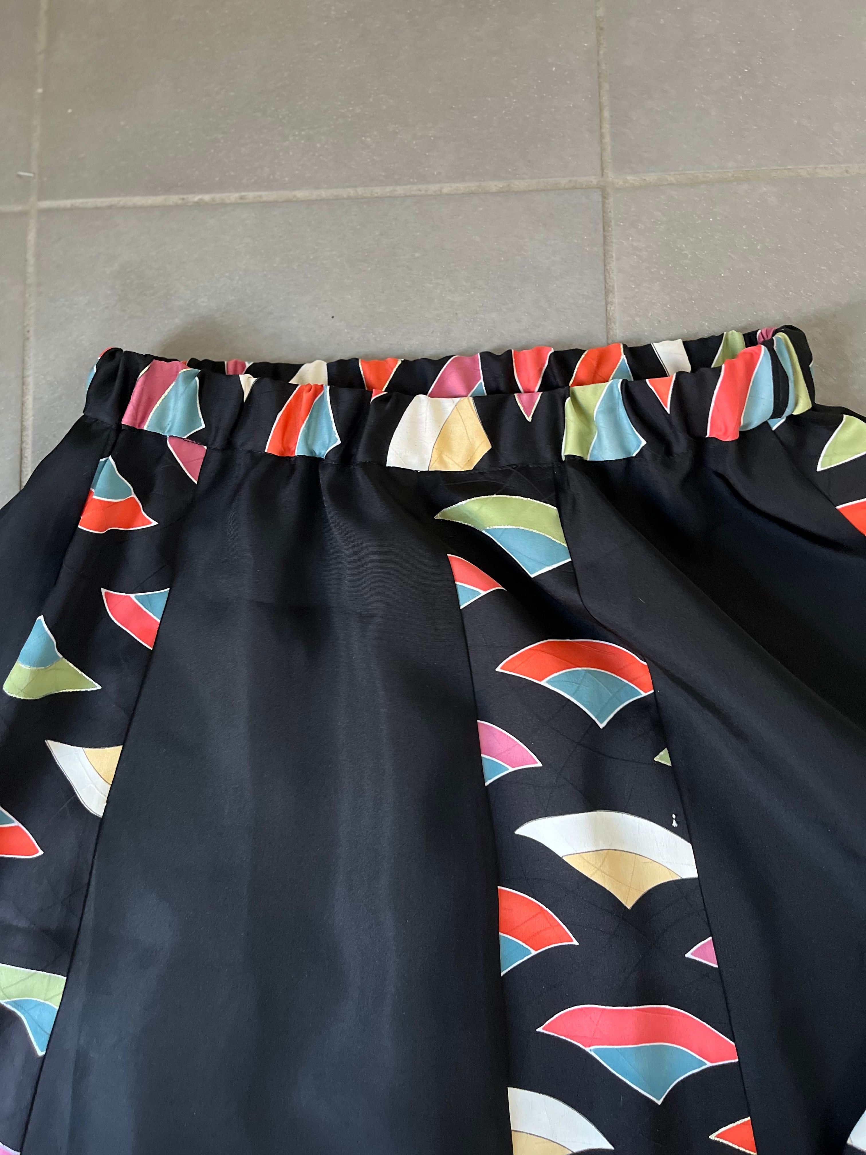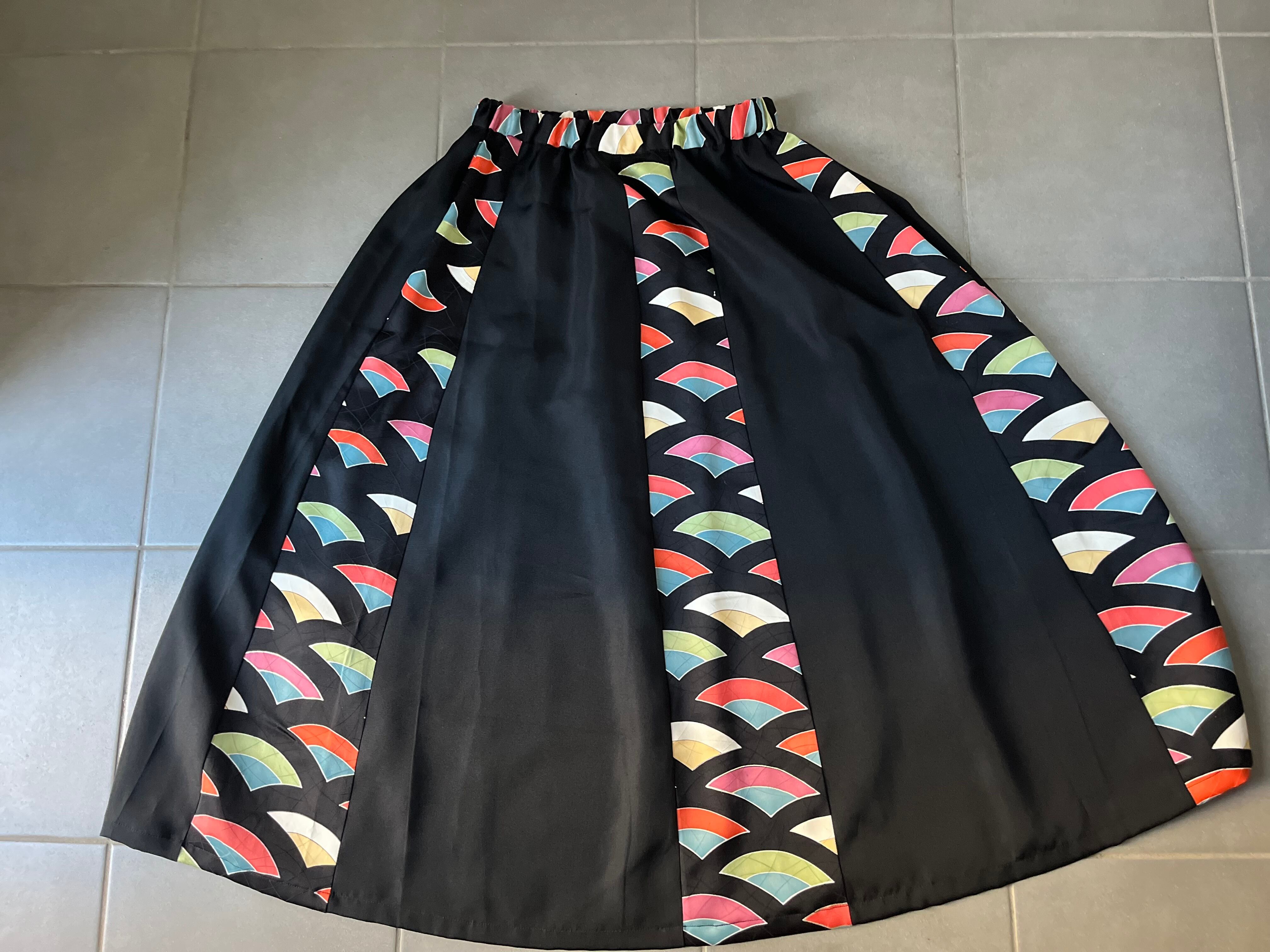 縞寄細工スカート 着物リメイク 着物再々生 着物ハギレサーキュラースカート