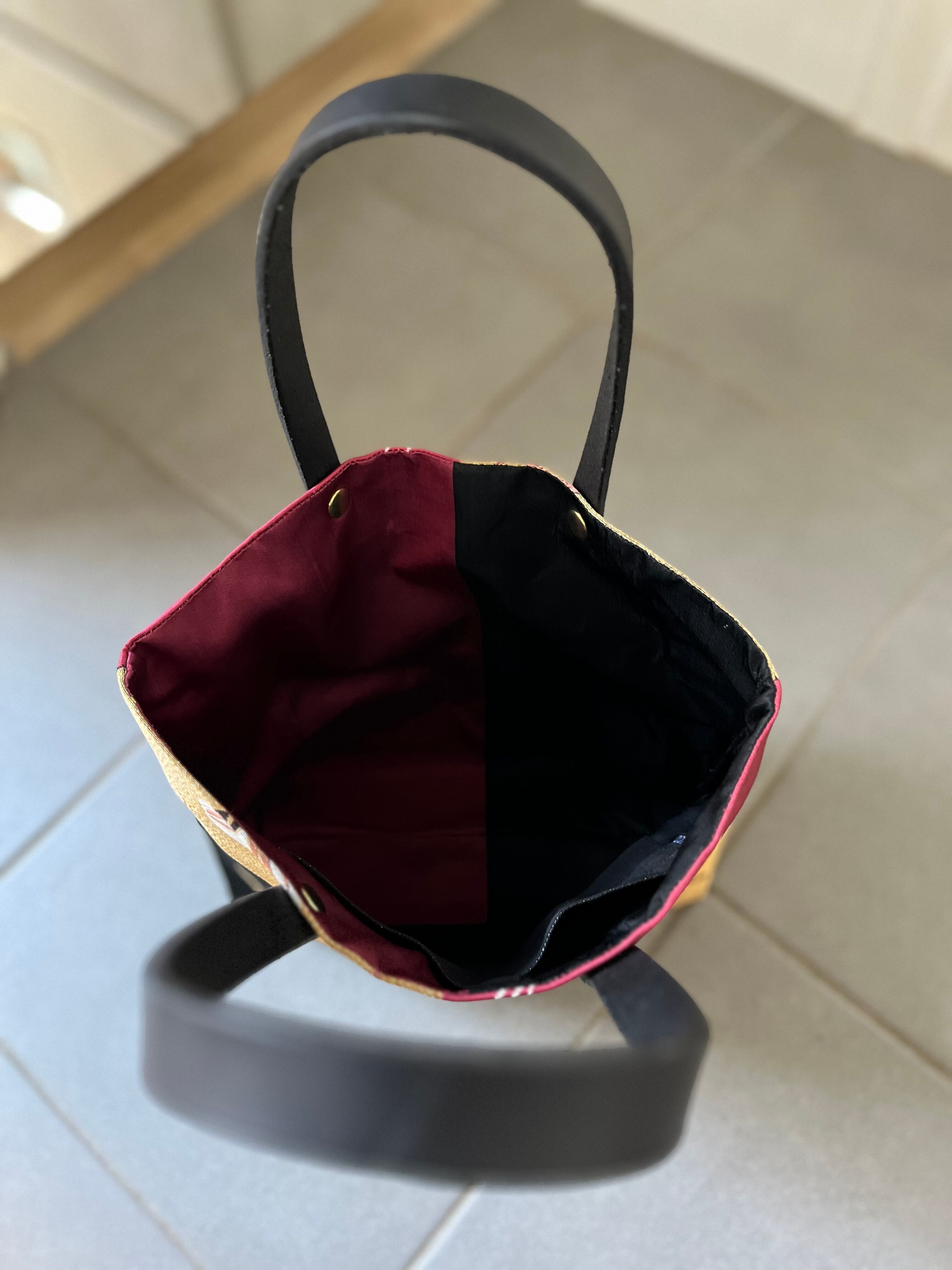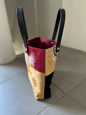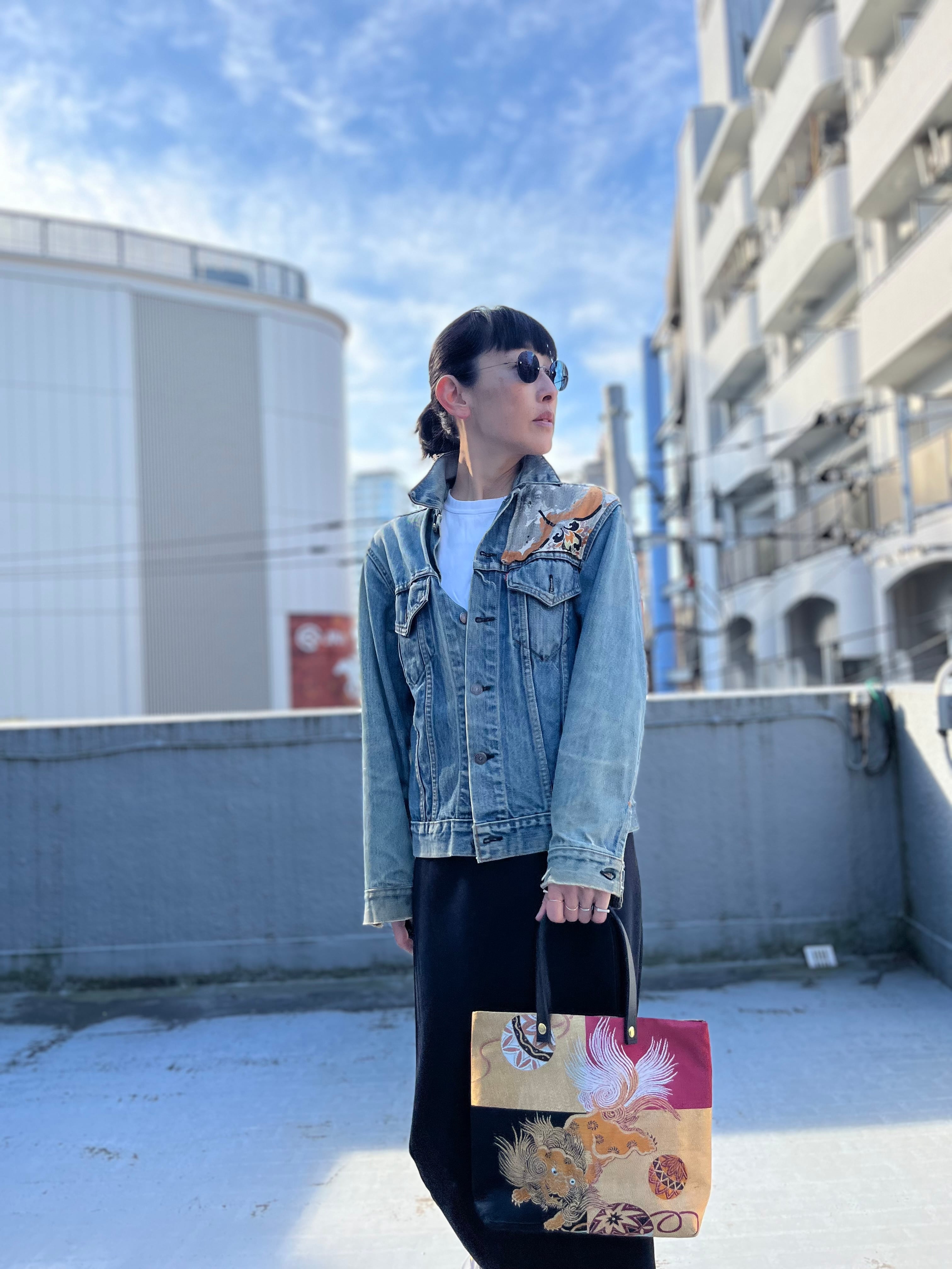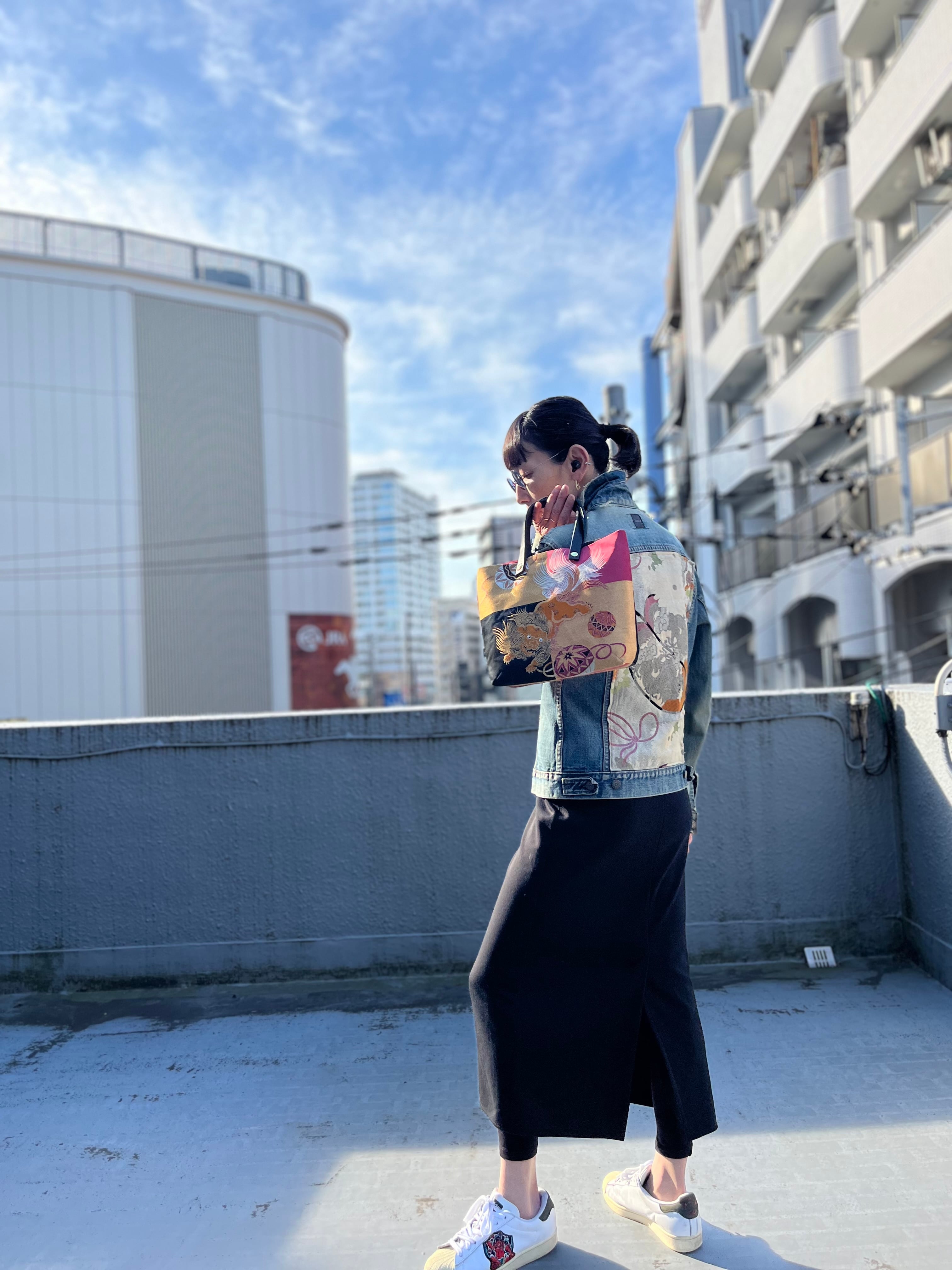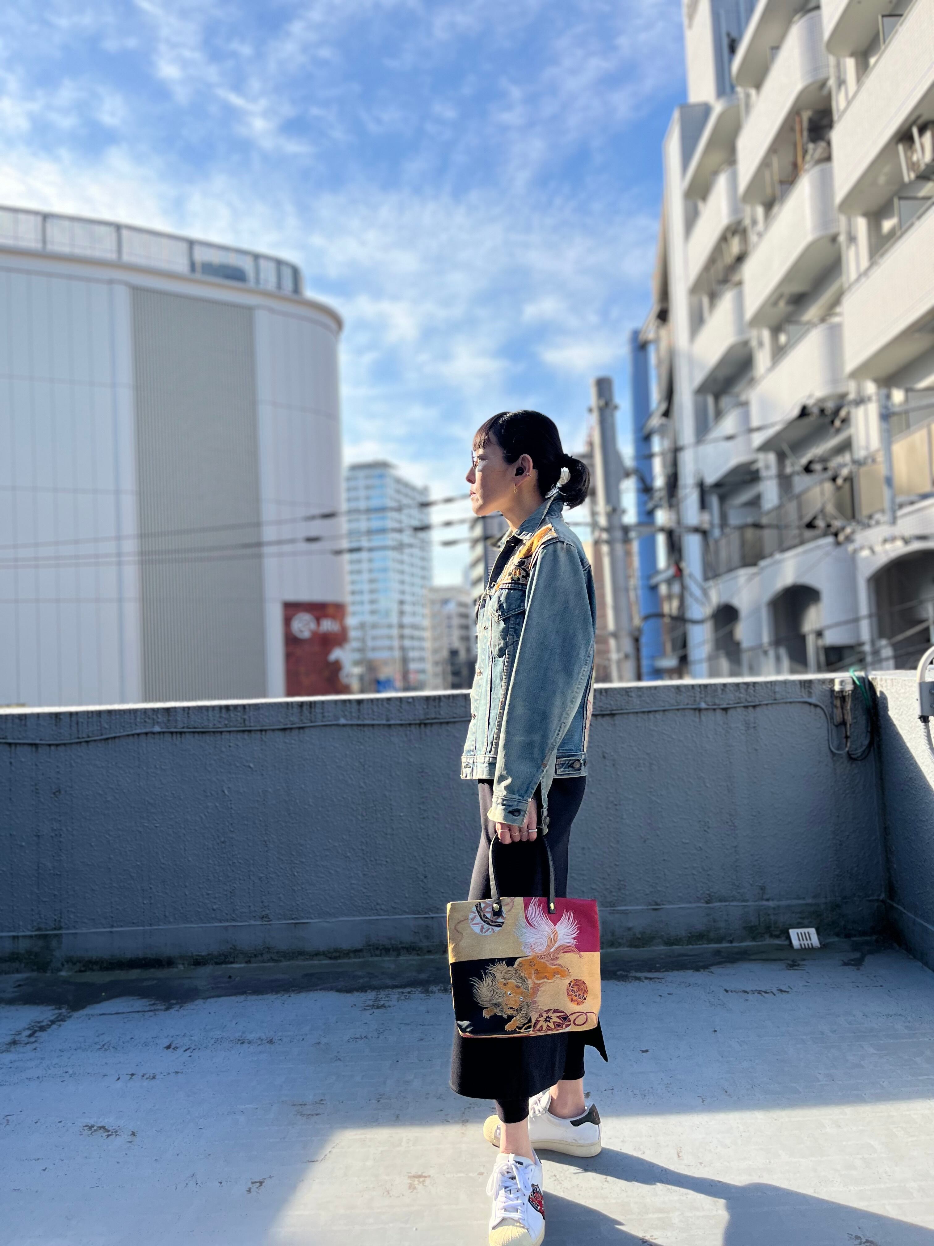 蹴鞠と獅子トート 帯レザーハンドルバック 着物リメイク