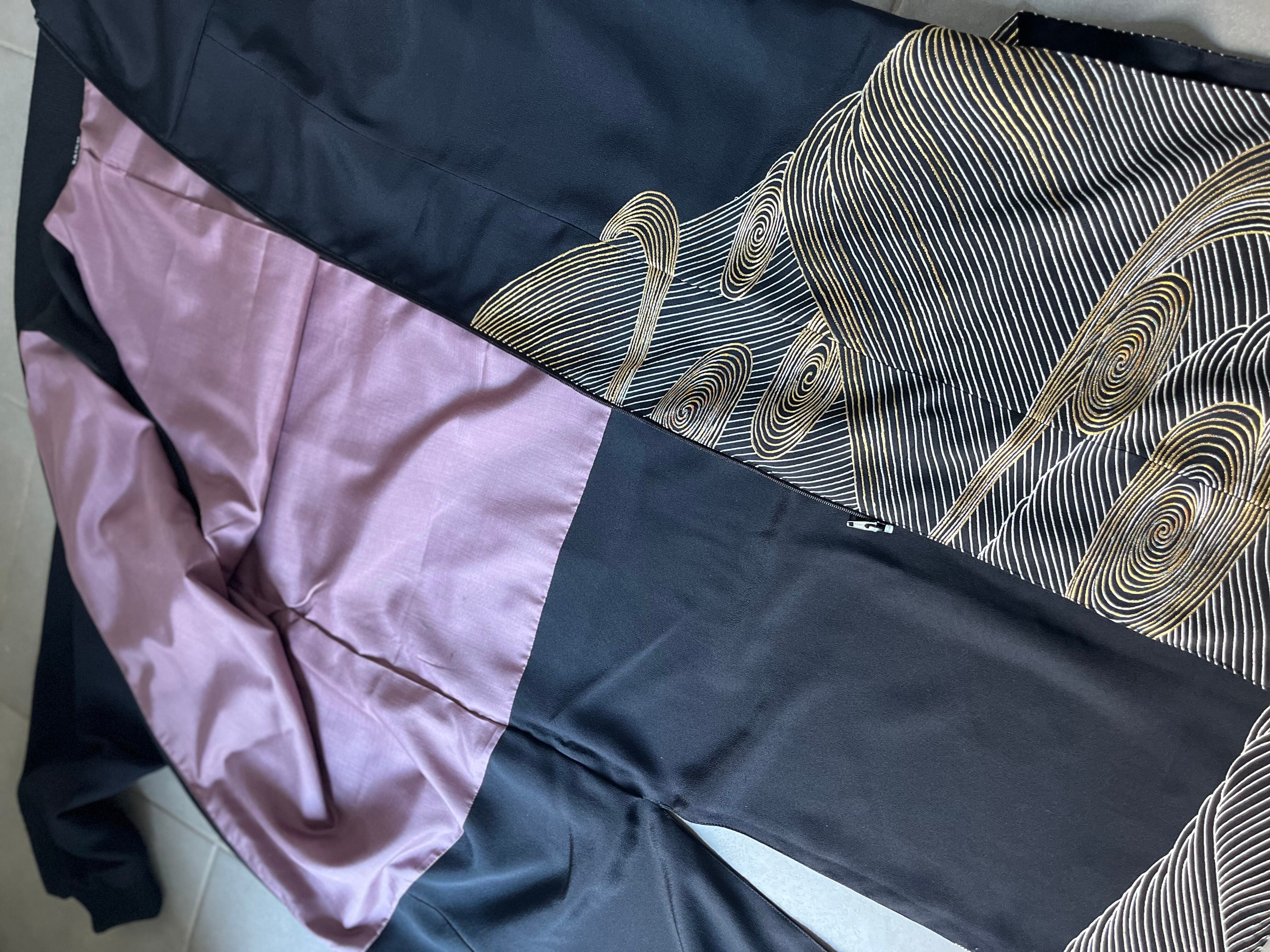 雨や汗など水に濡れることにより輪ジミ色落ち、色移りすることがあります ・絹は非常にデリケートな素材ですので極度な負荷が加わることで縫い目が開いたり 目寄れ ( 縦糸が滑り目が開く ) 性質を持って いますことご了承ください
