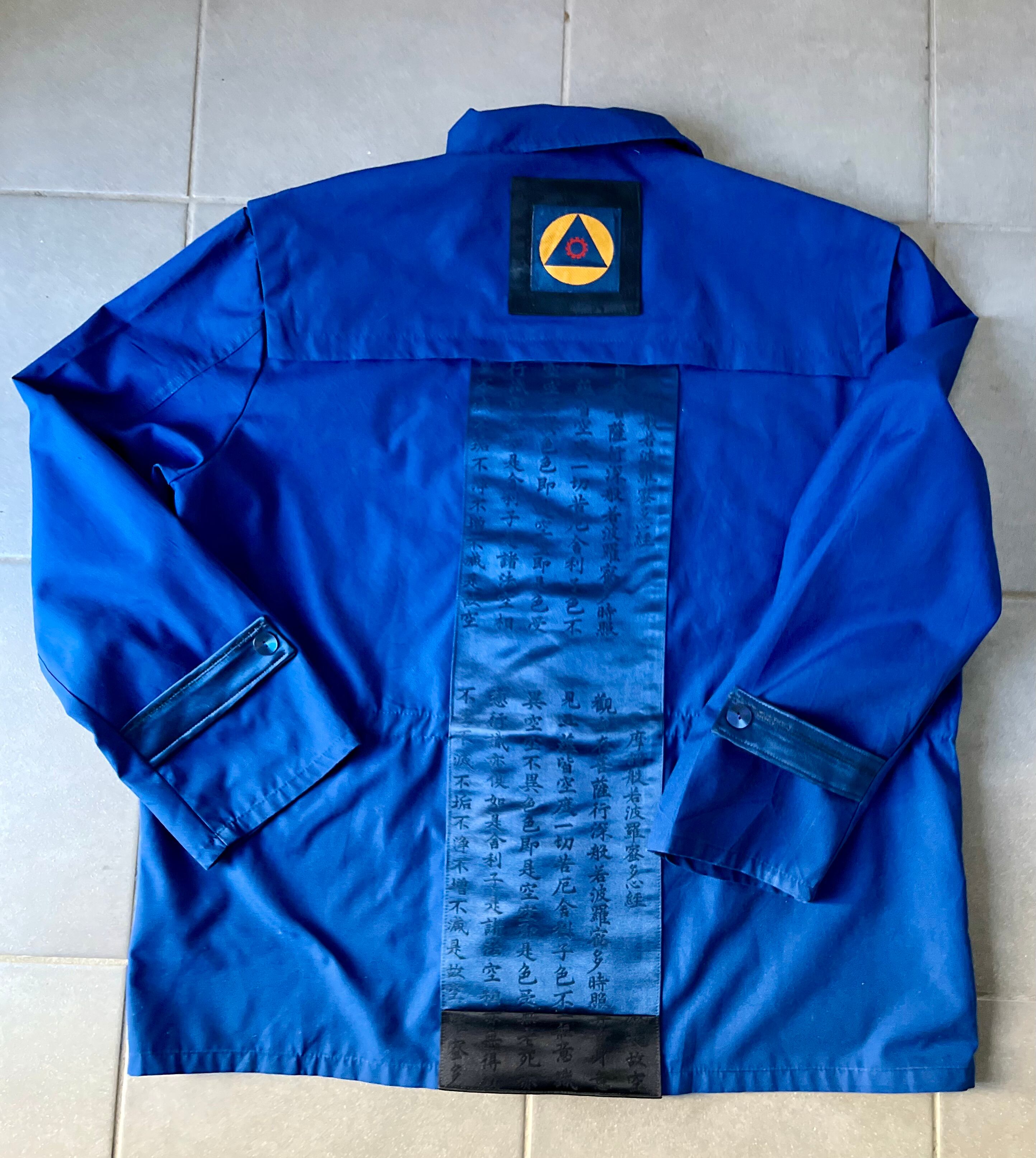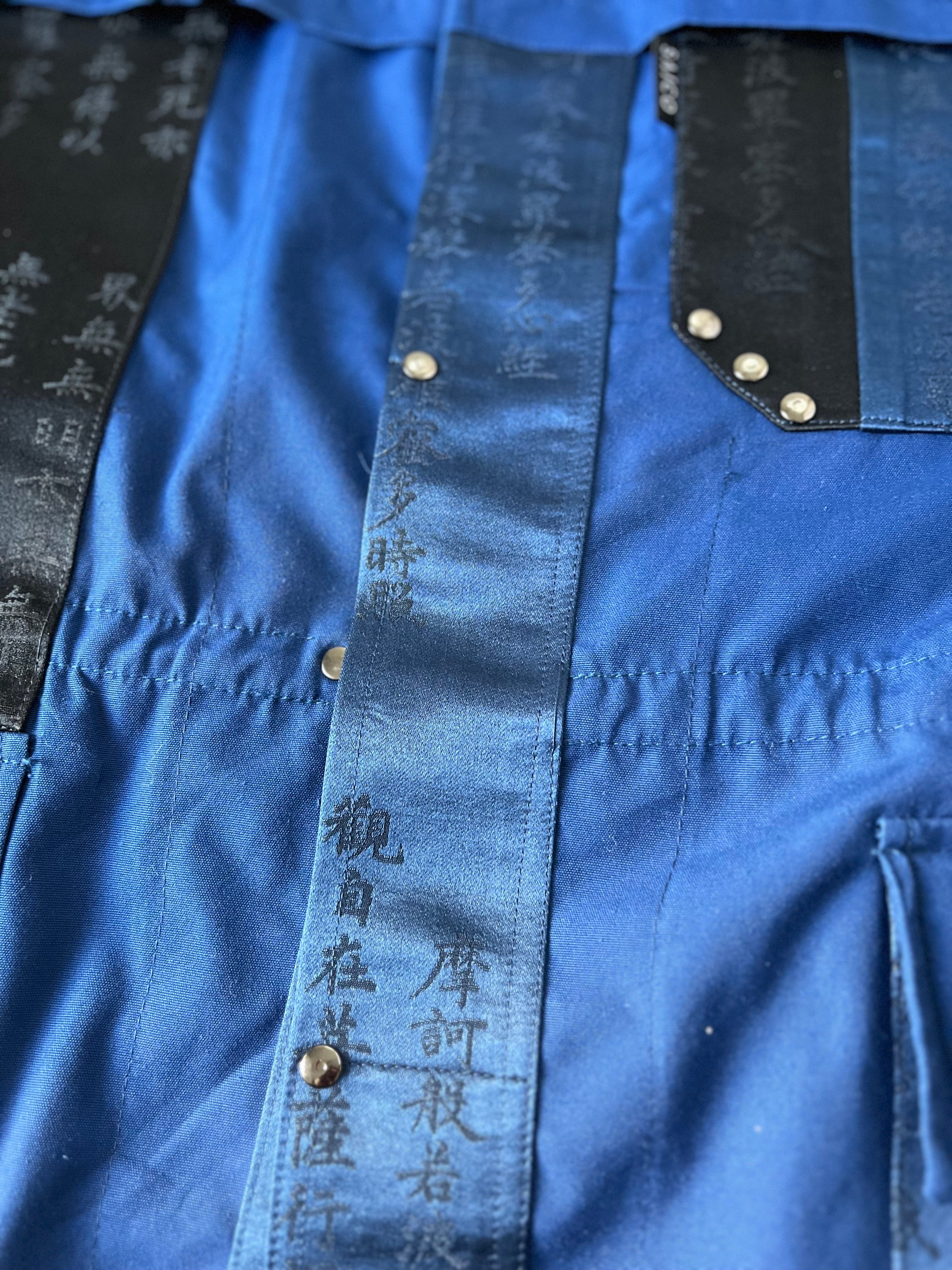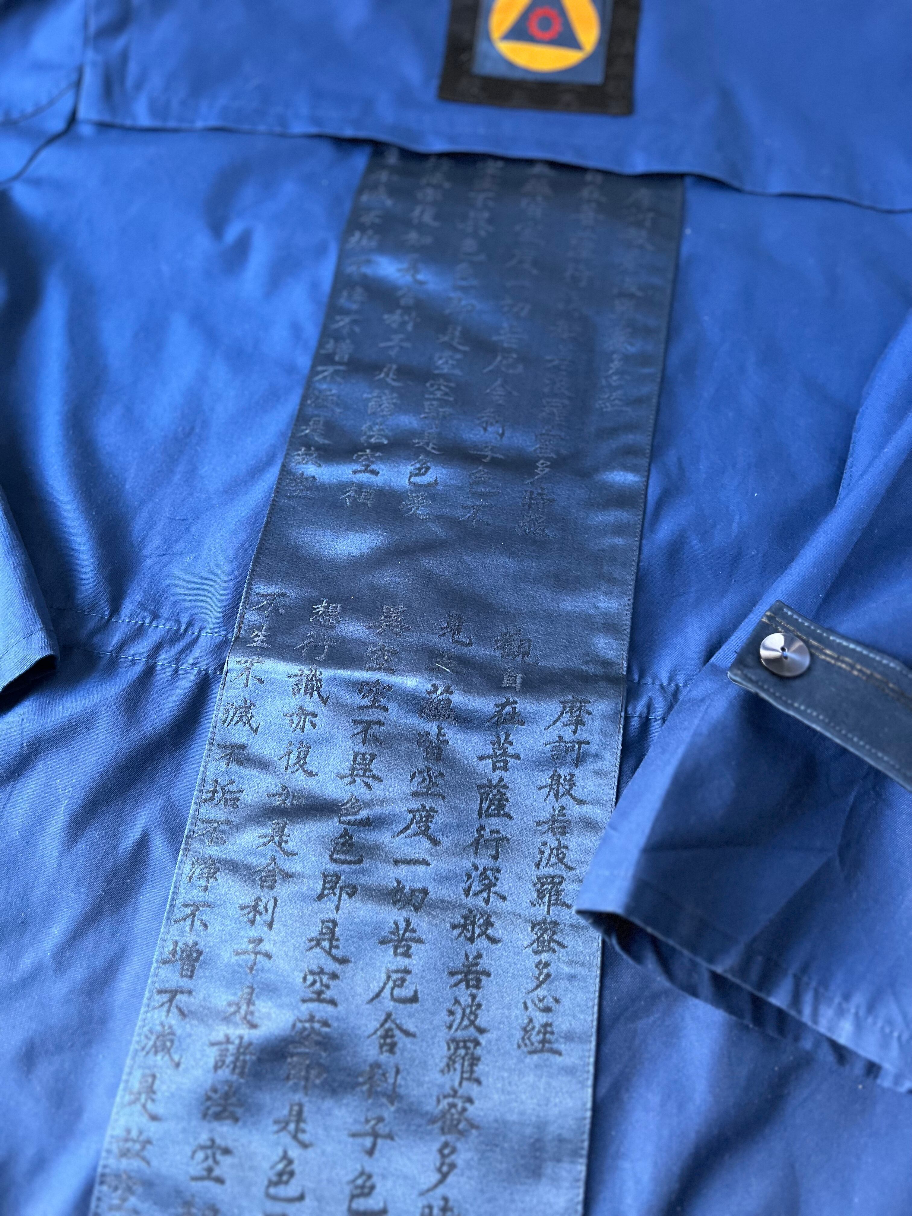 般若心経をひたすらに写経した帯をパッチワーク