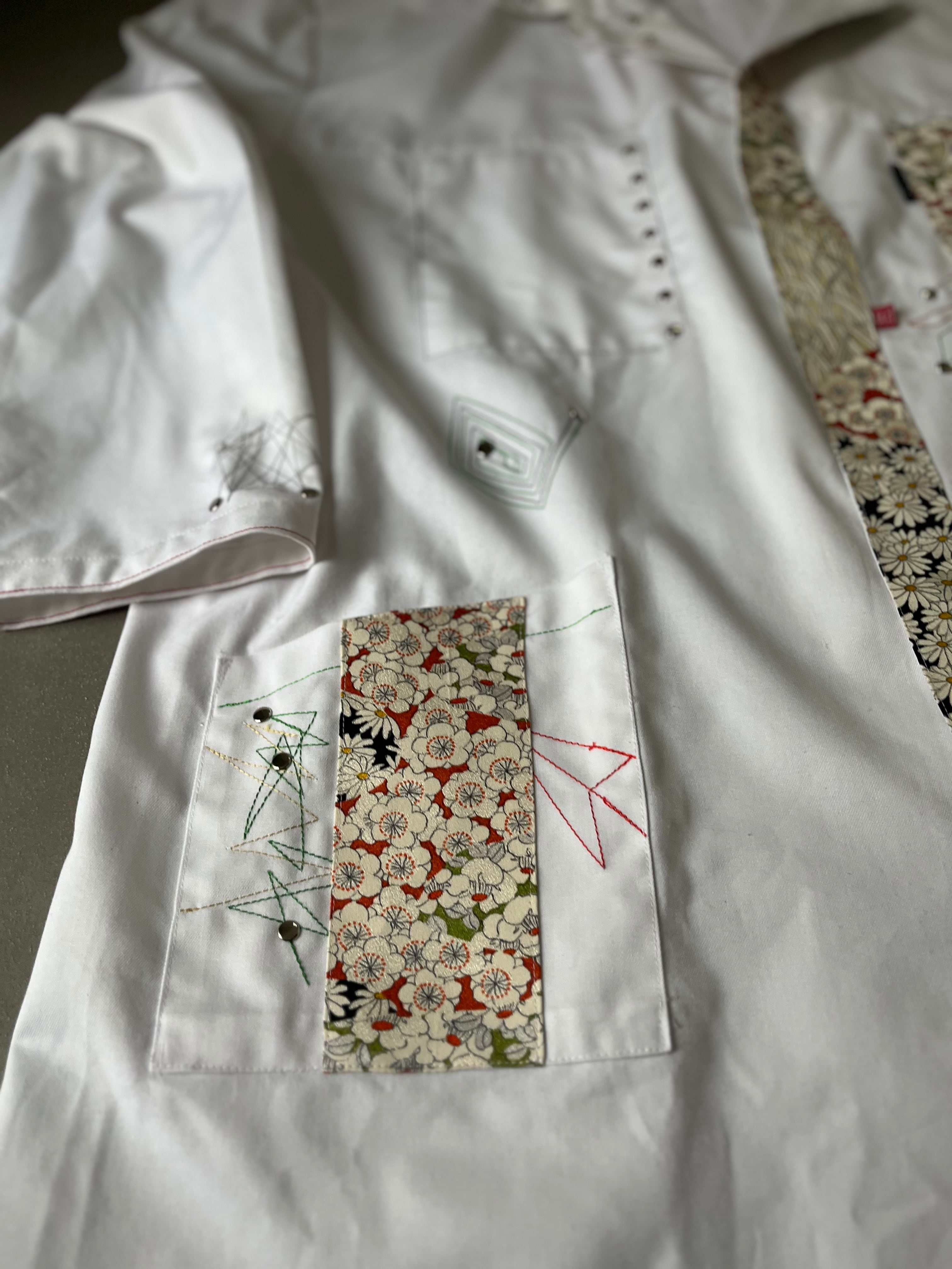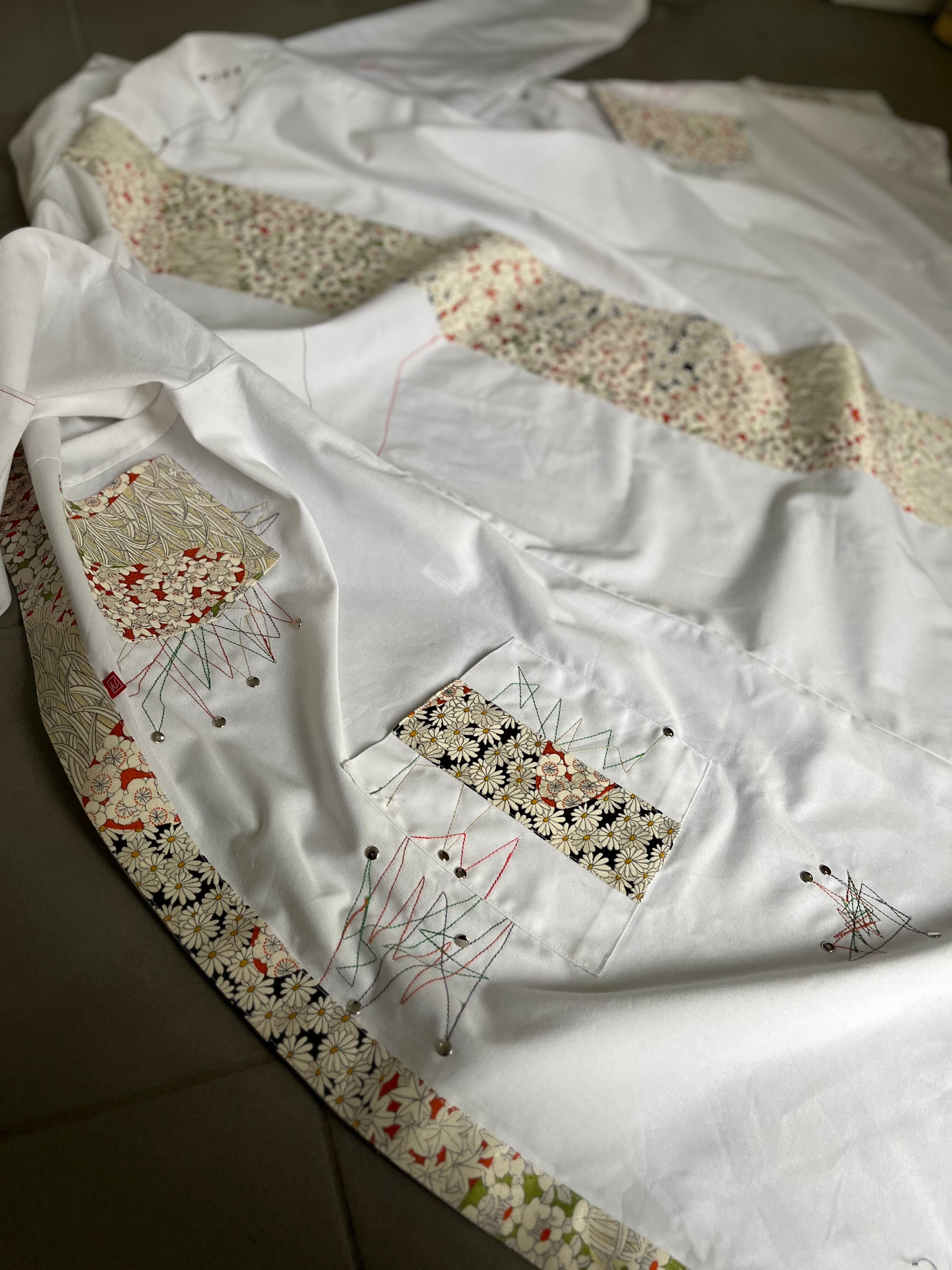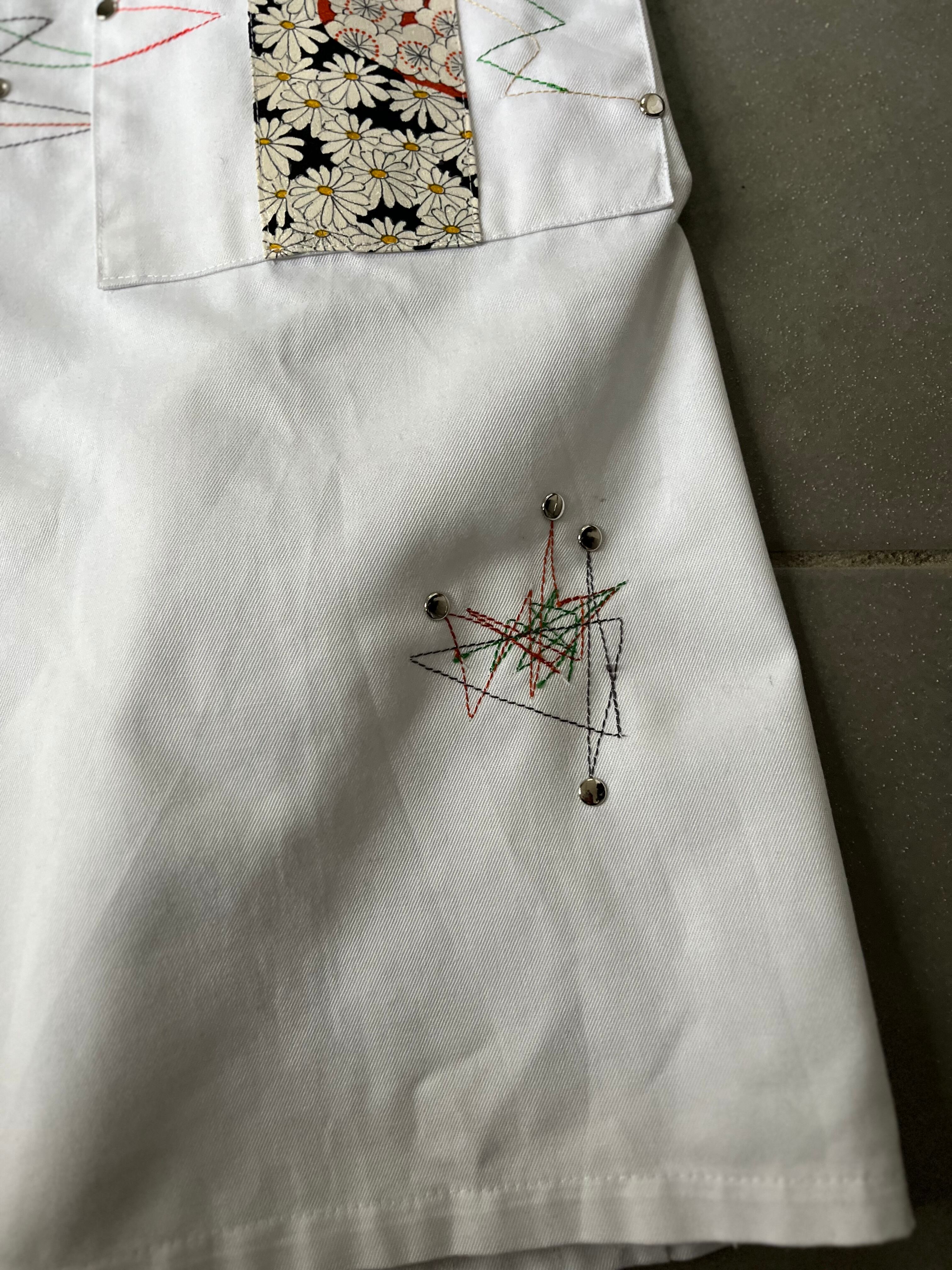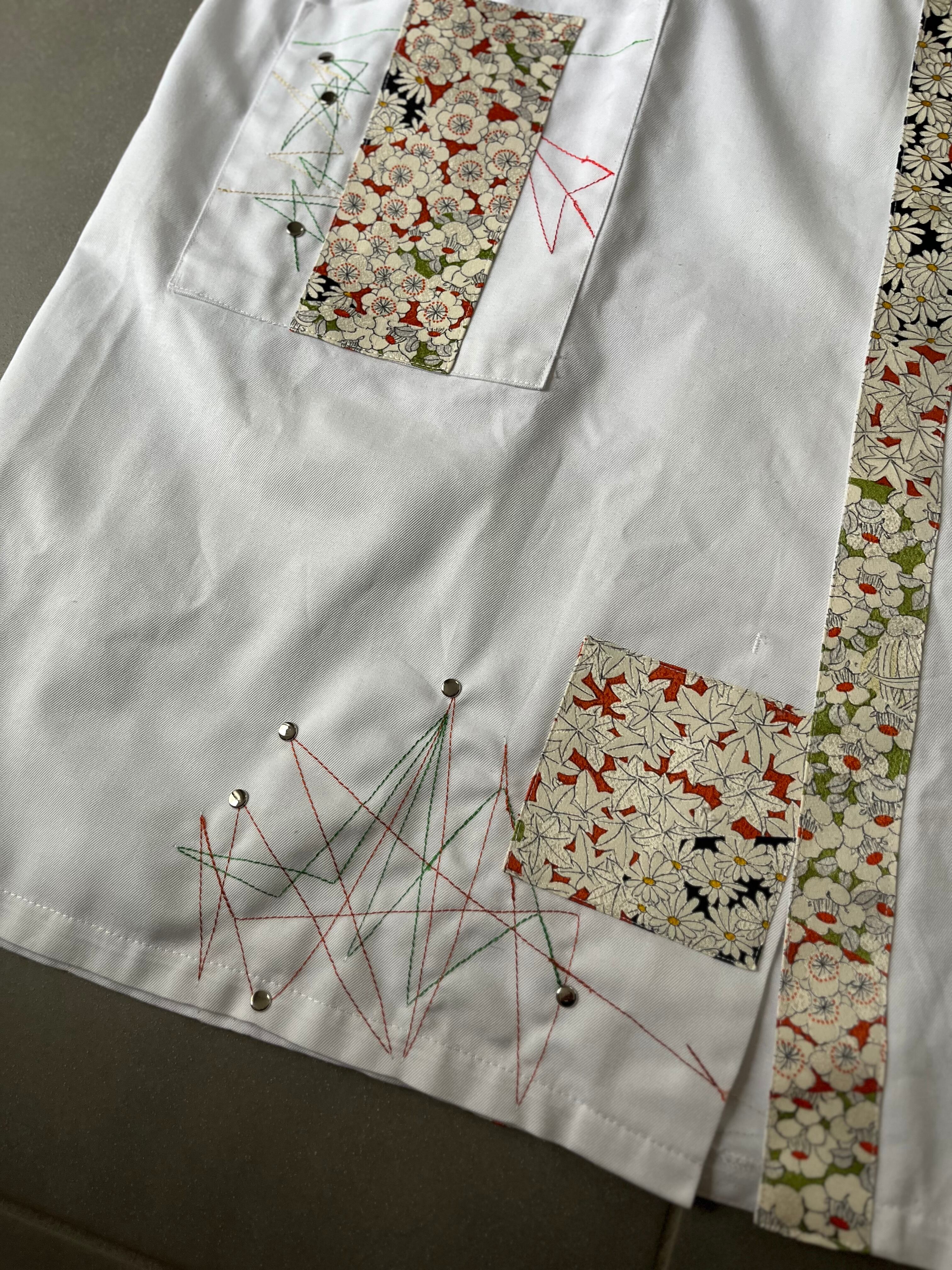 着用時にベルトやバックなどの引っ掛かりや 摩擦にご注意ください、万が一刺繍がほつれた時は引っ張らずに、そのままご使用になるか、気になる方はハサミなどでカットしてください