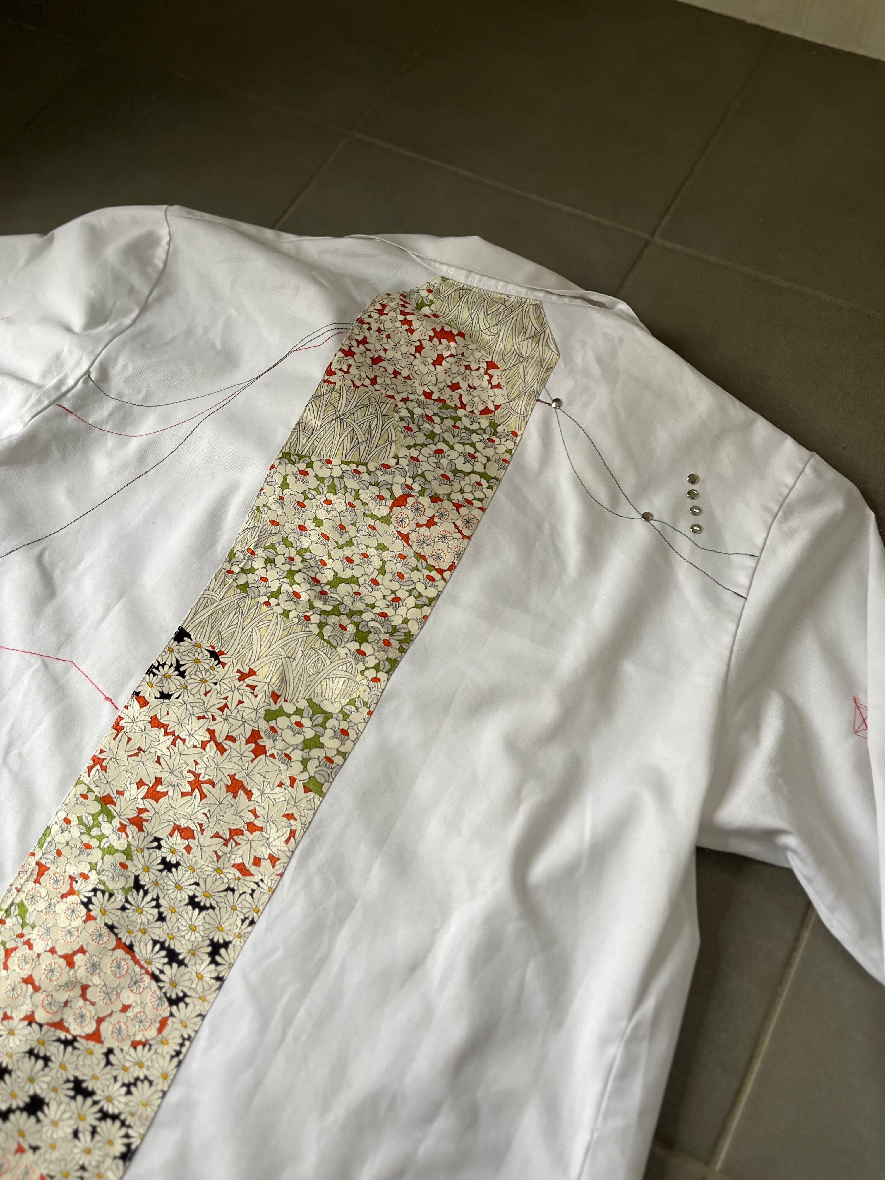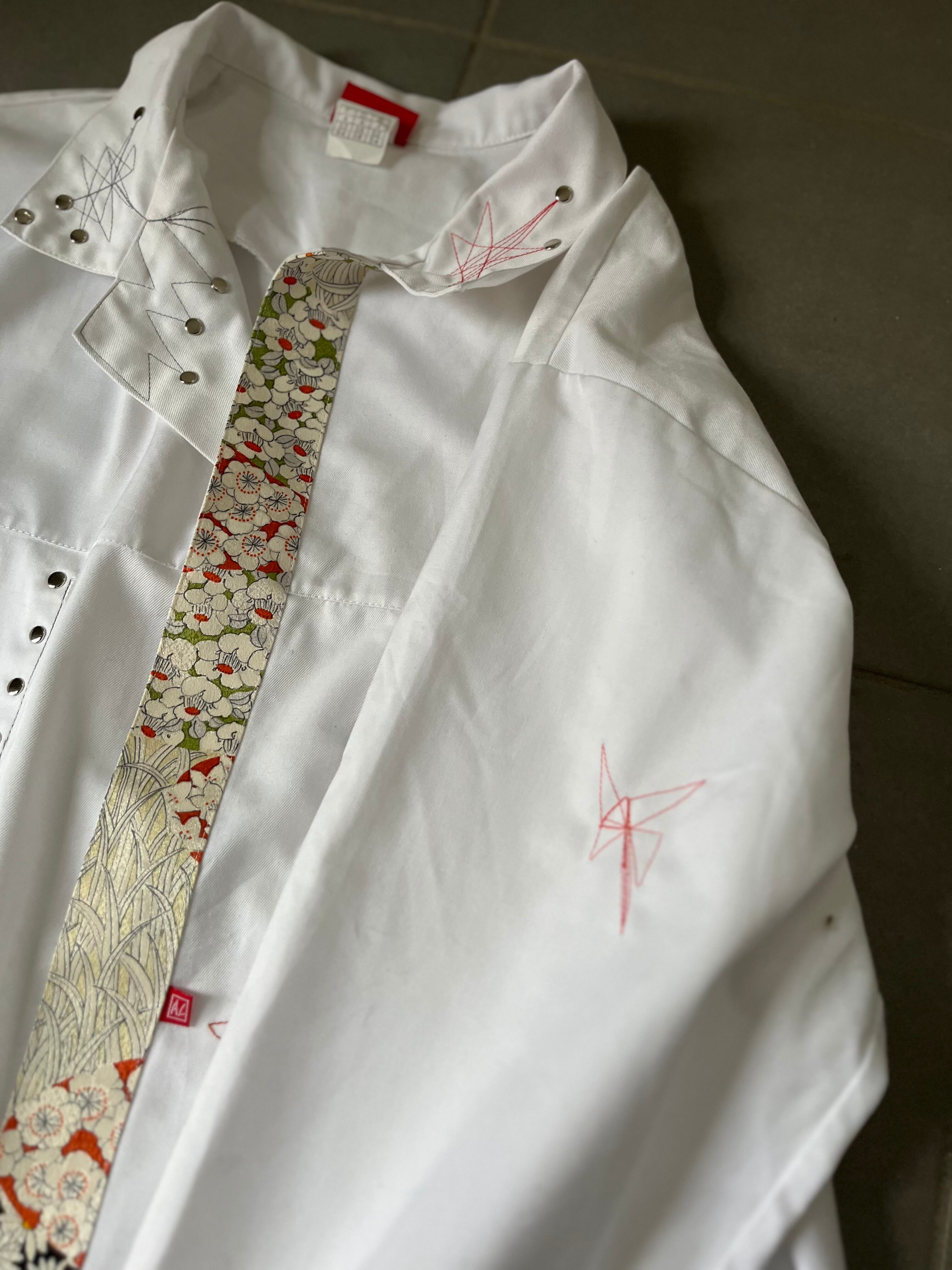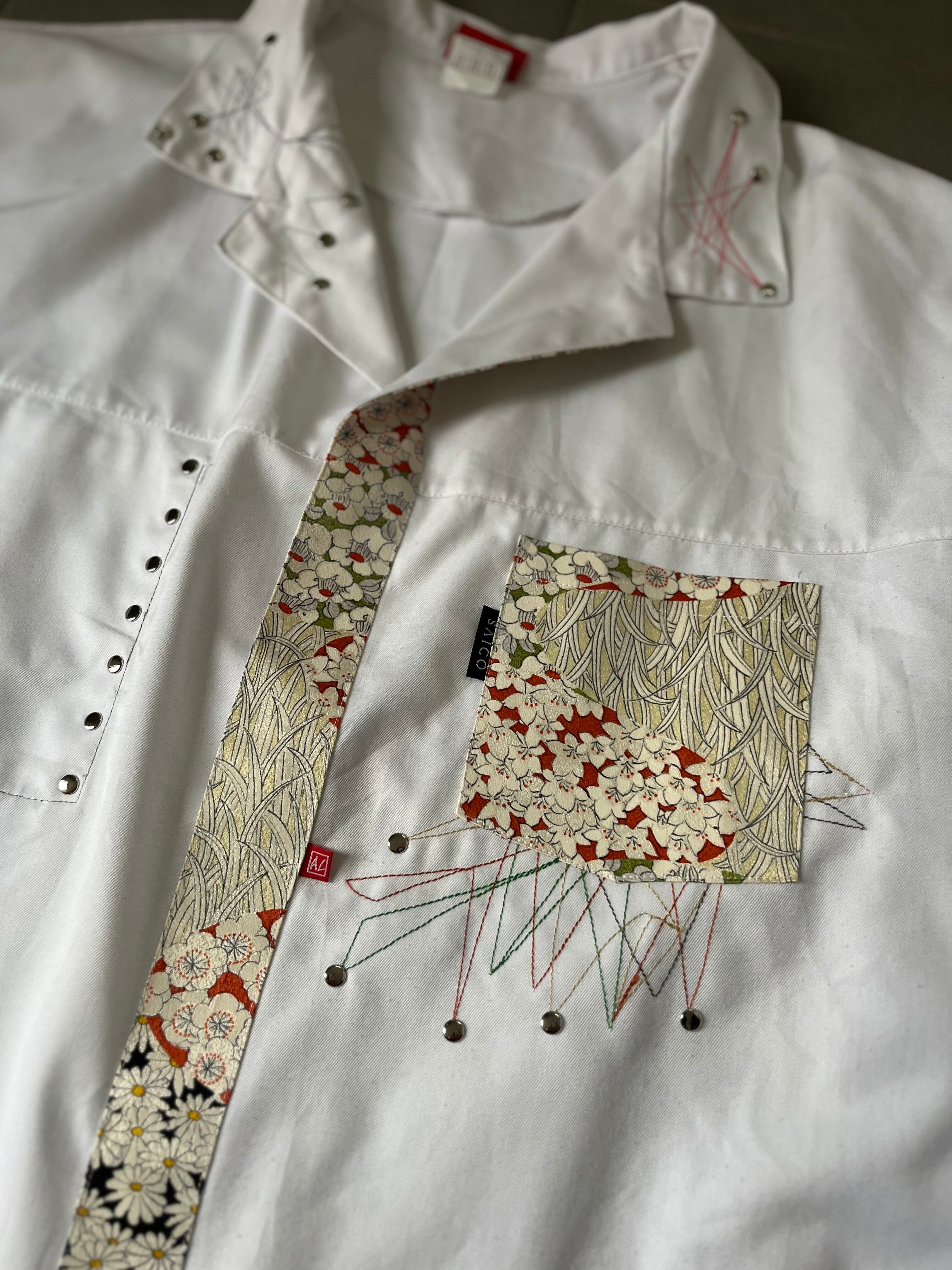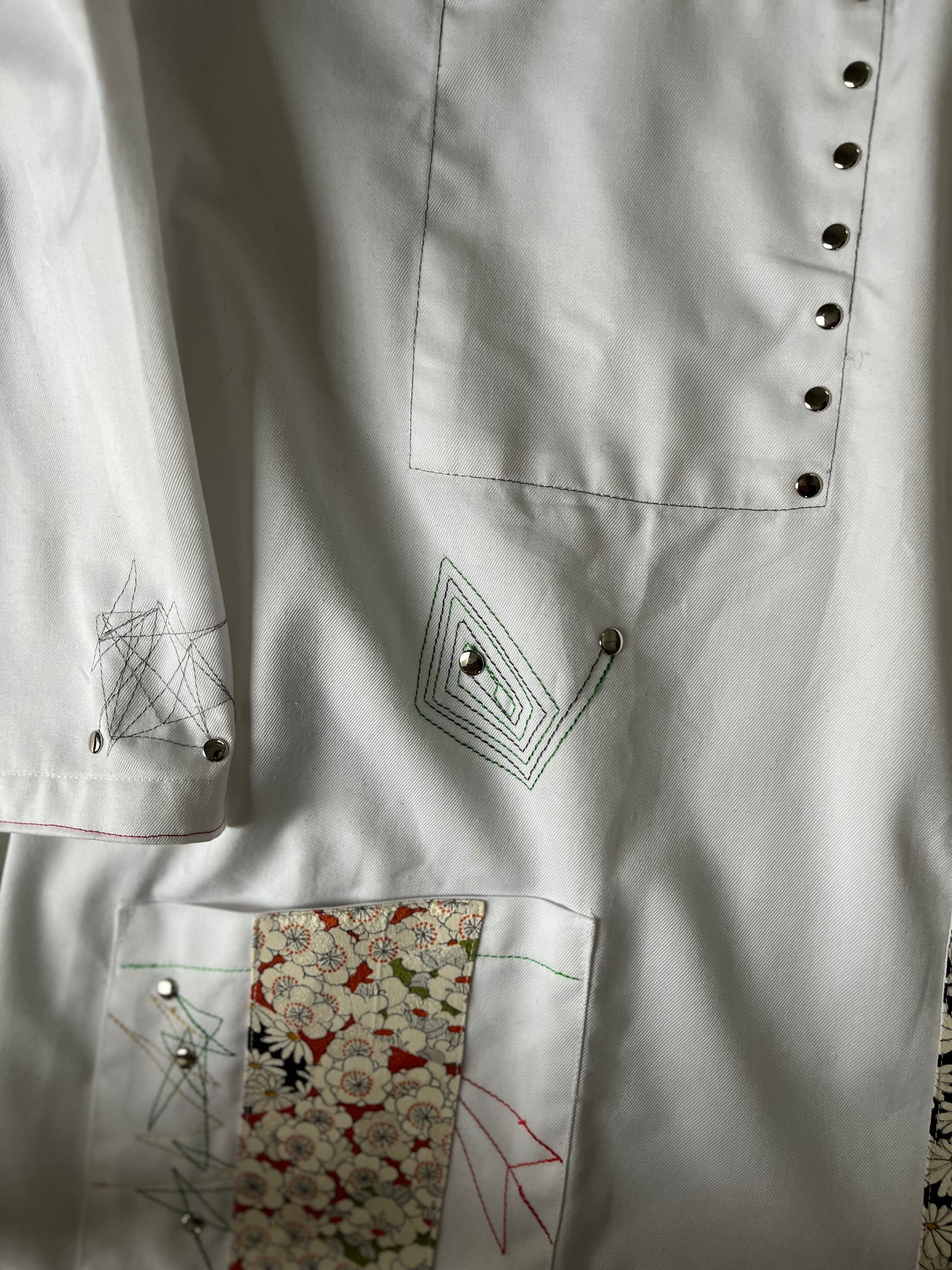 着用時にベルトやバックなどの引っ掛かりや 摩擦にご注意ください、万が一刺繍がほつれた時は引っ張らずに、そのままご使用になるか、気になる方はハサミなどでカットしてください