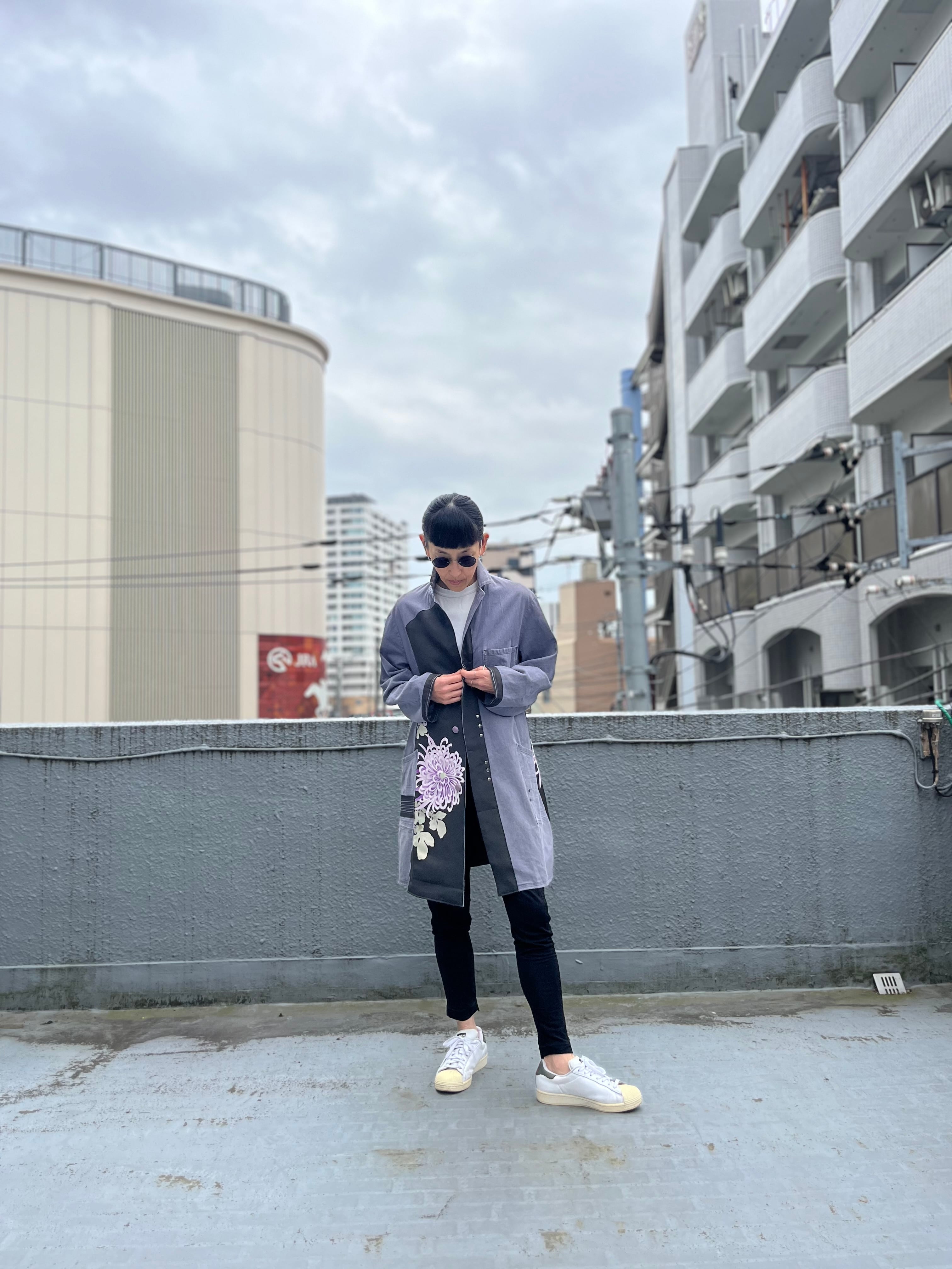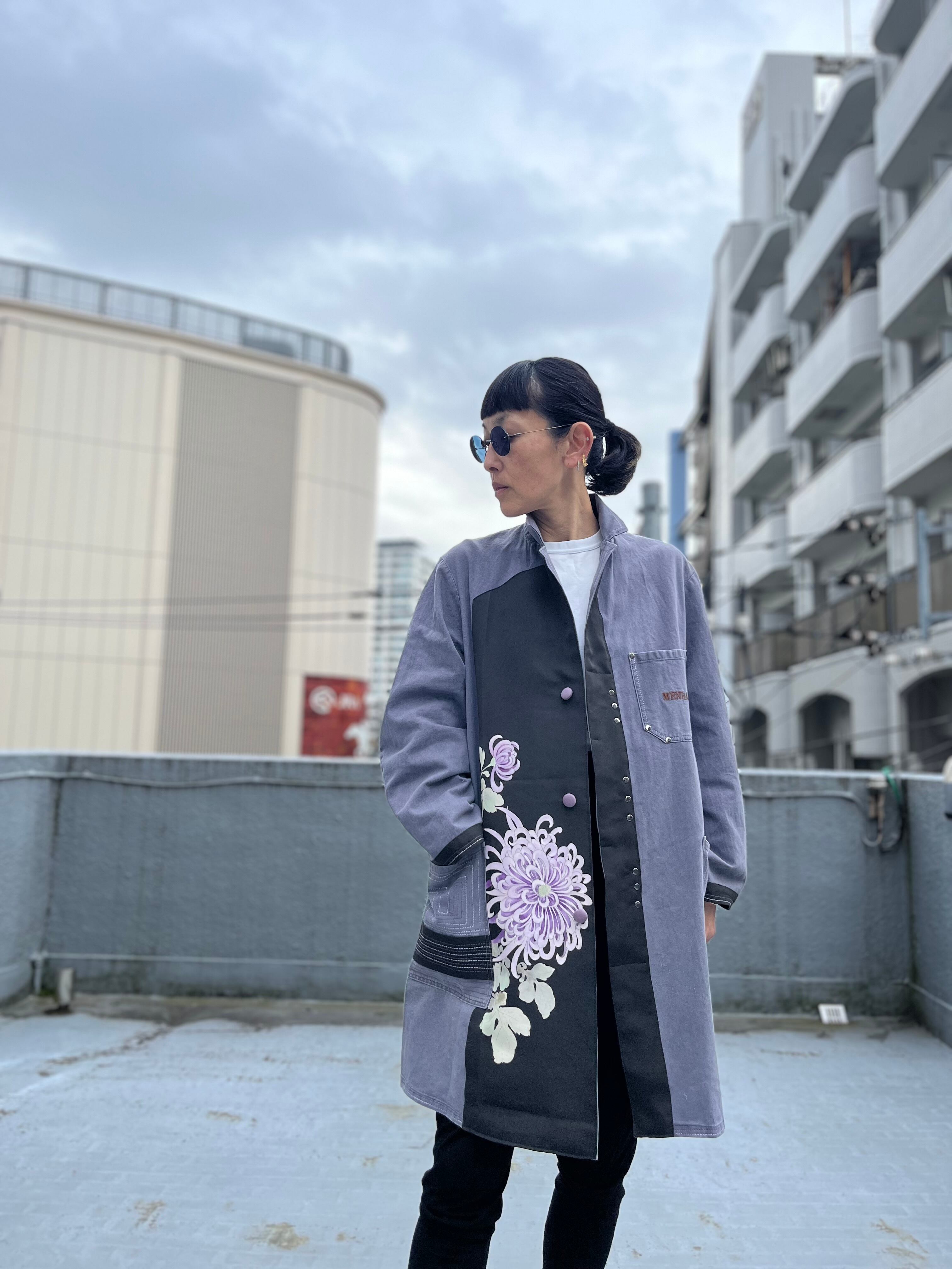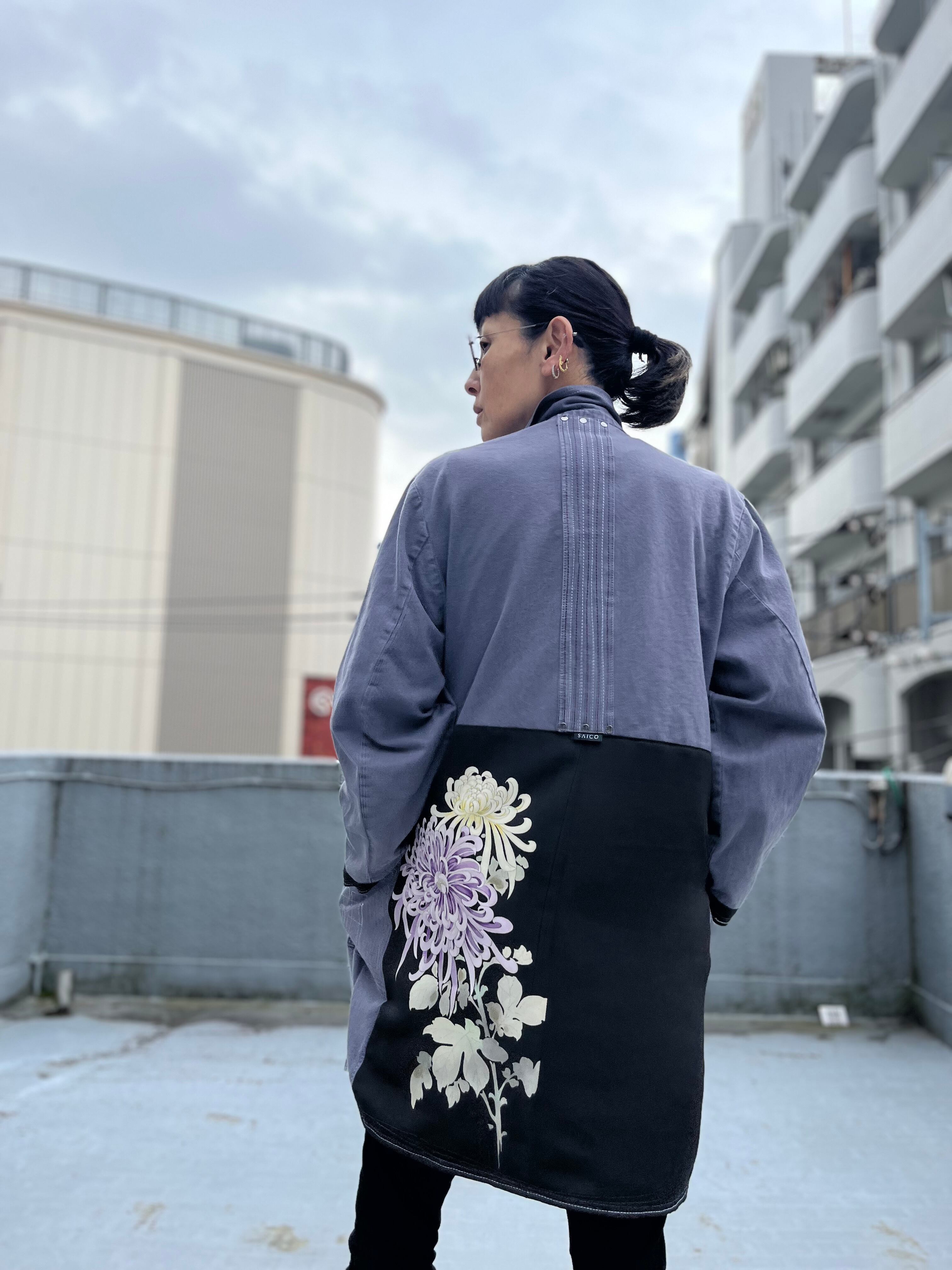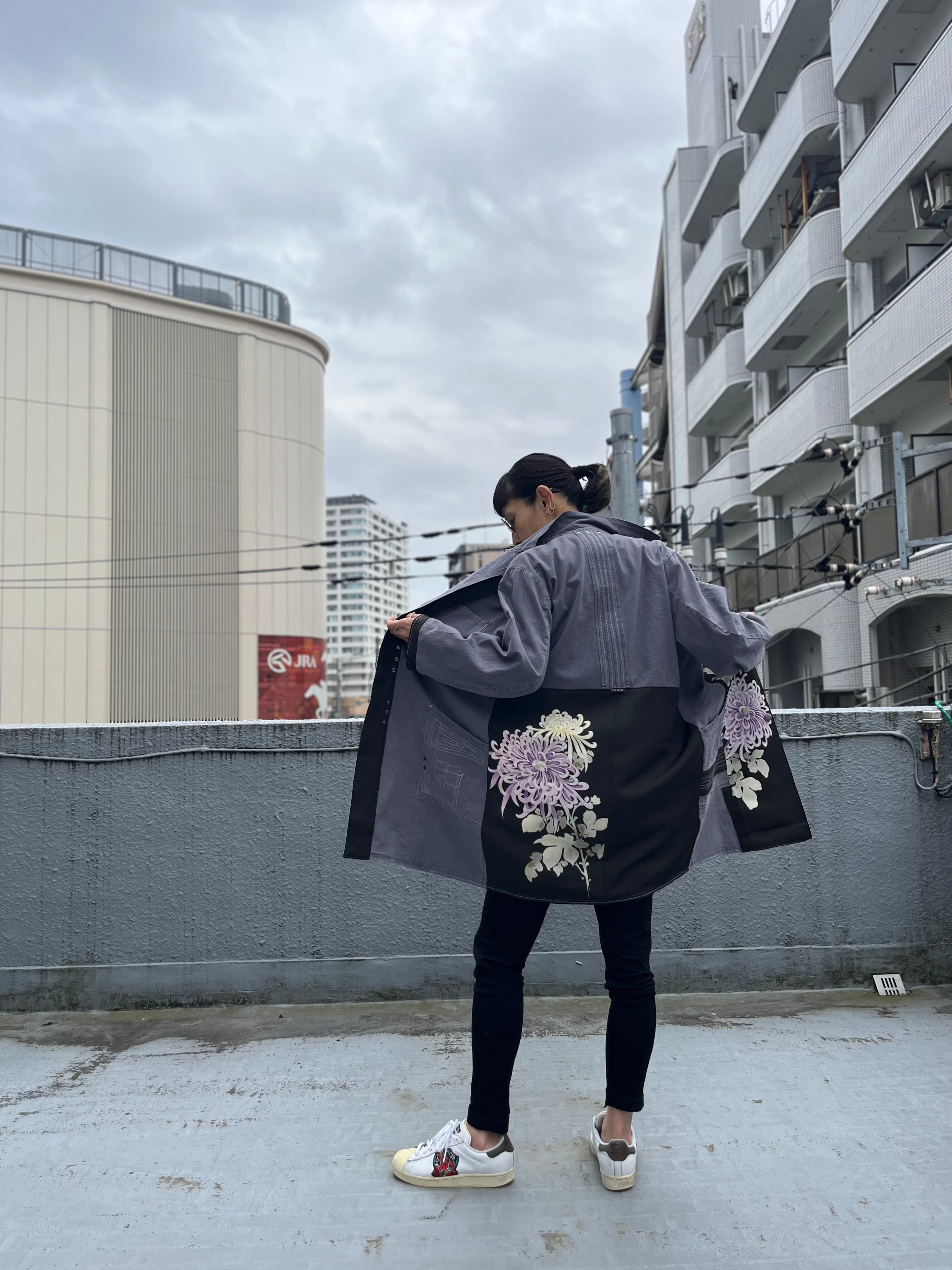 大輪を抱くコート 帯パッチワークコート ユーロワークコート 着物パッチワークJK 着物リメイクJK