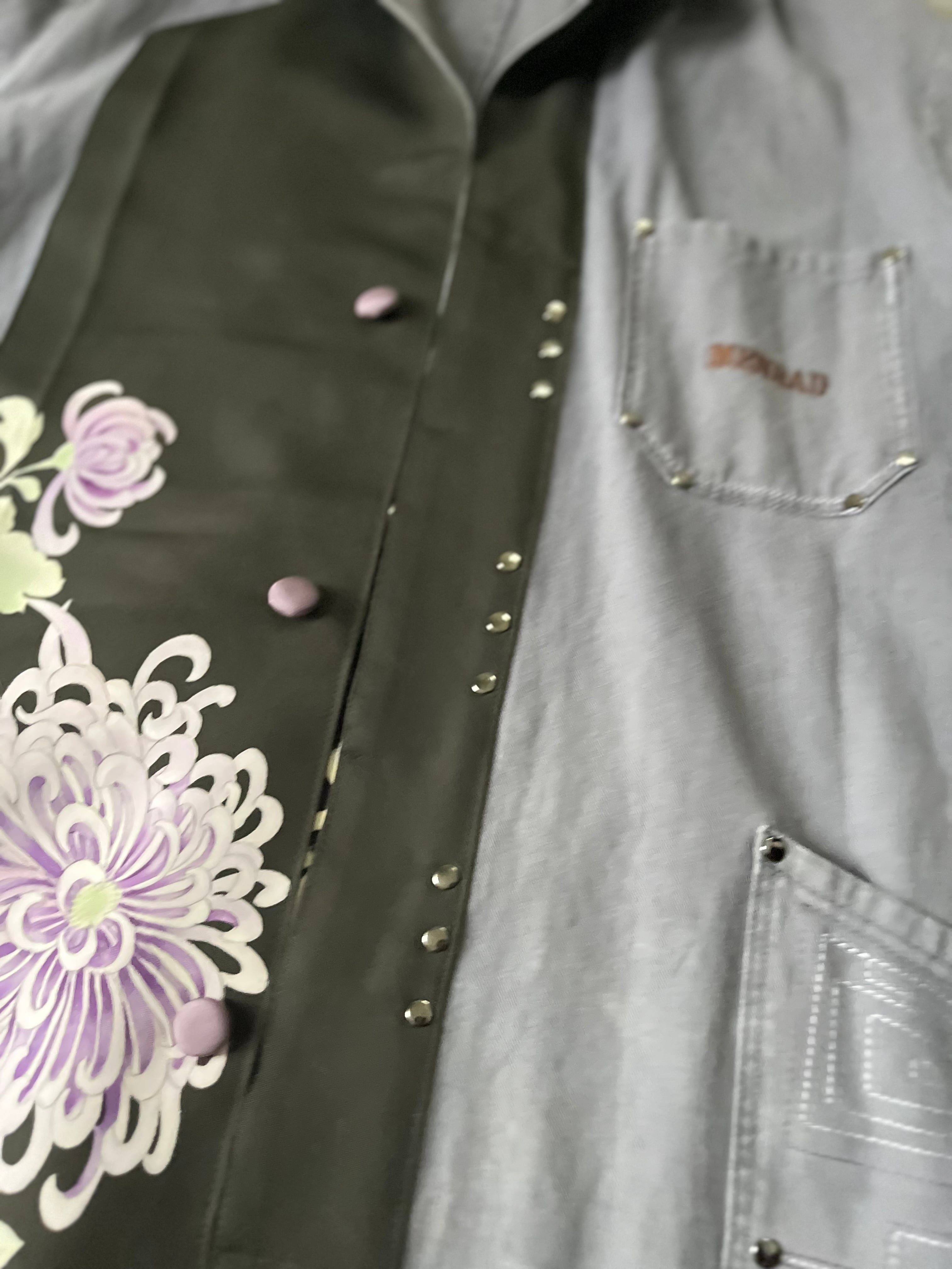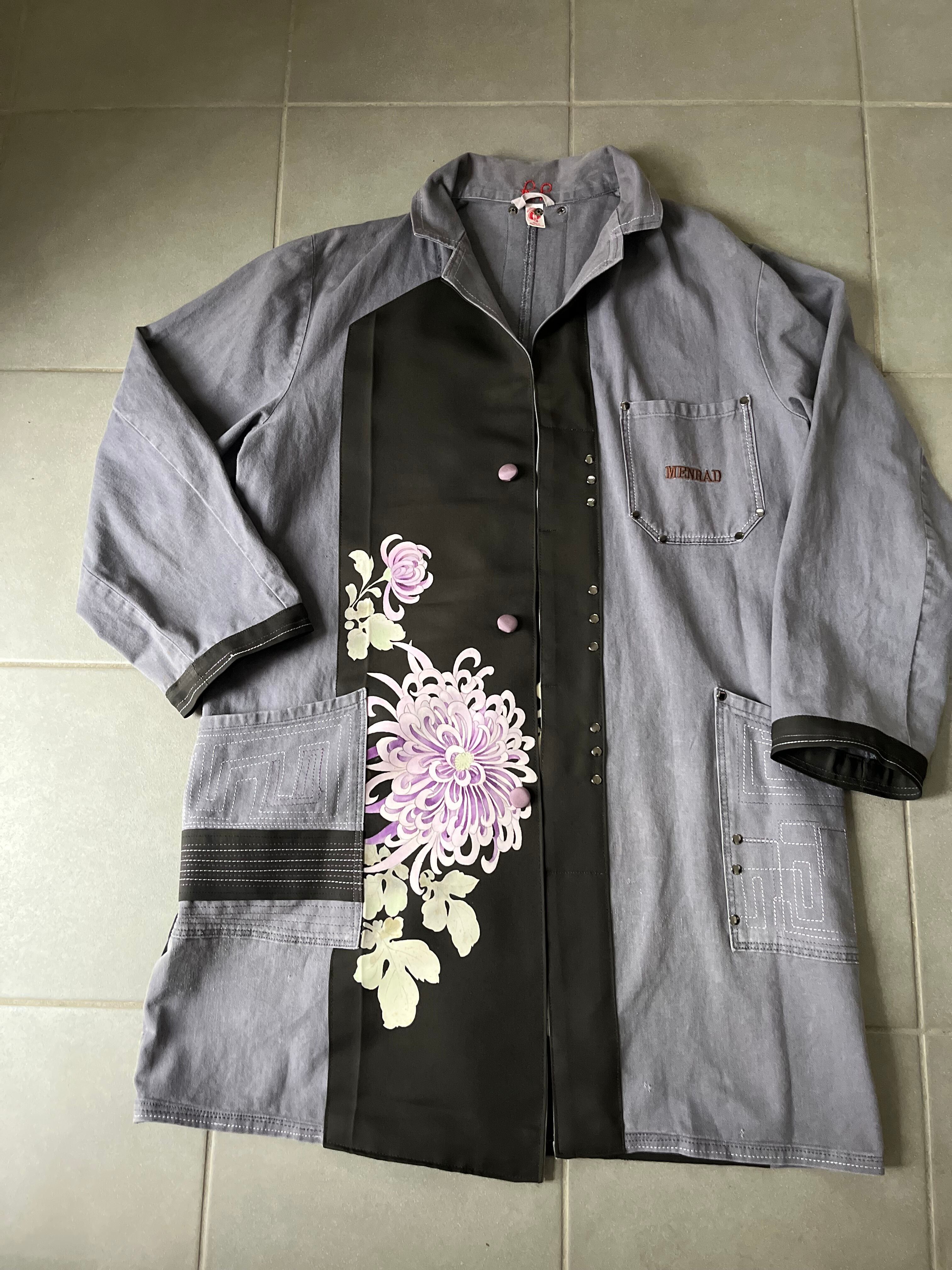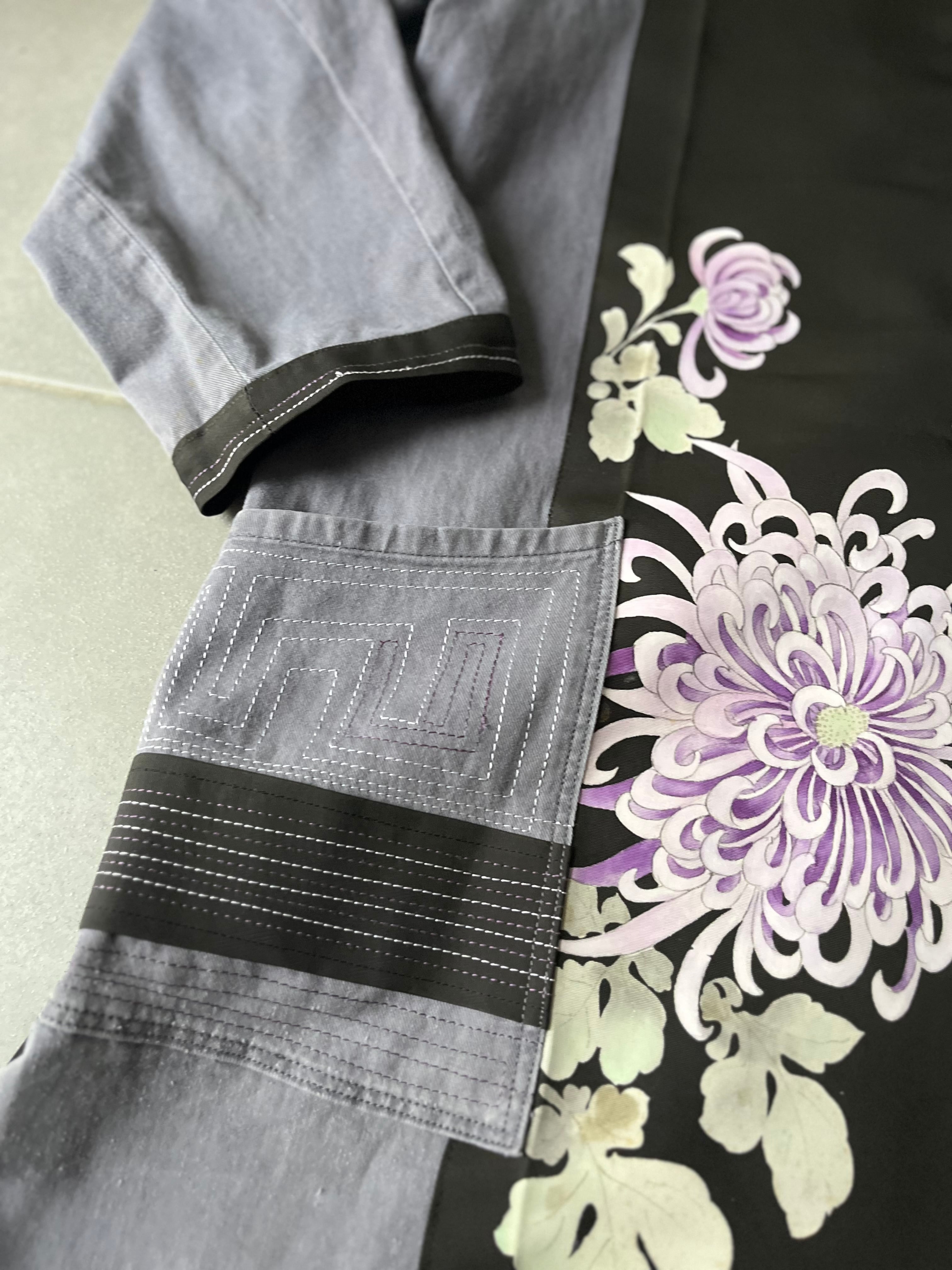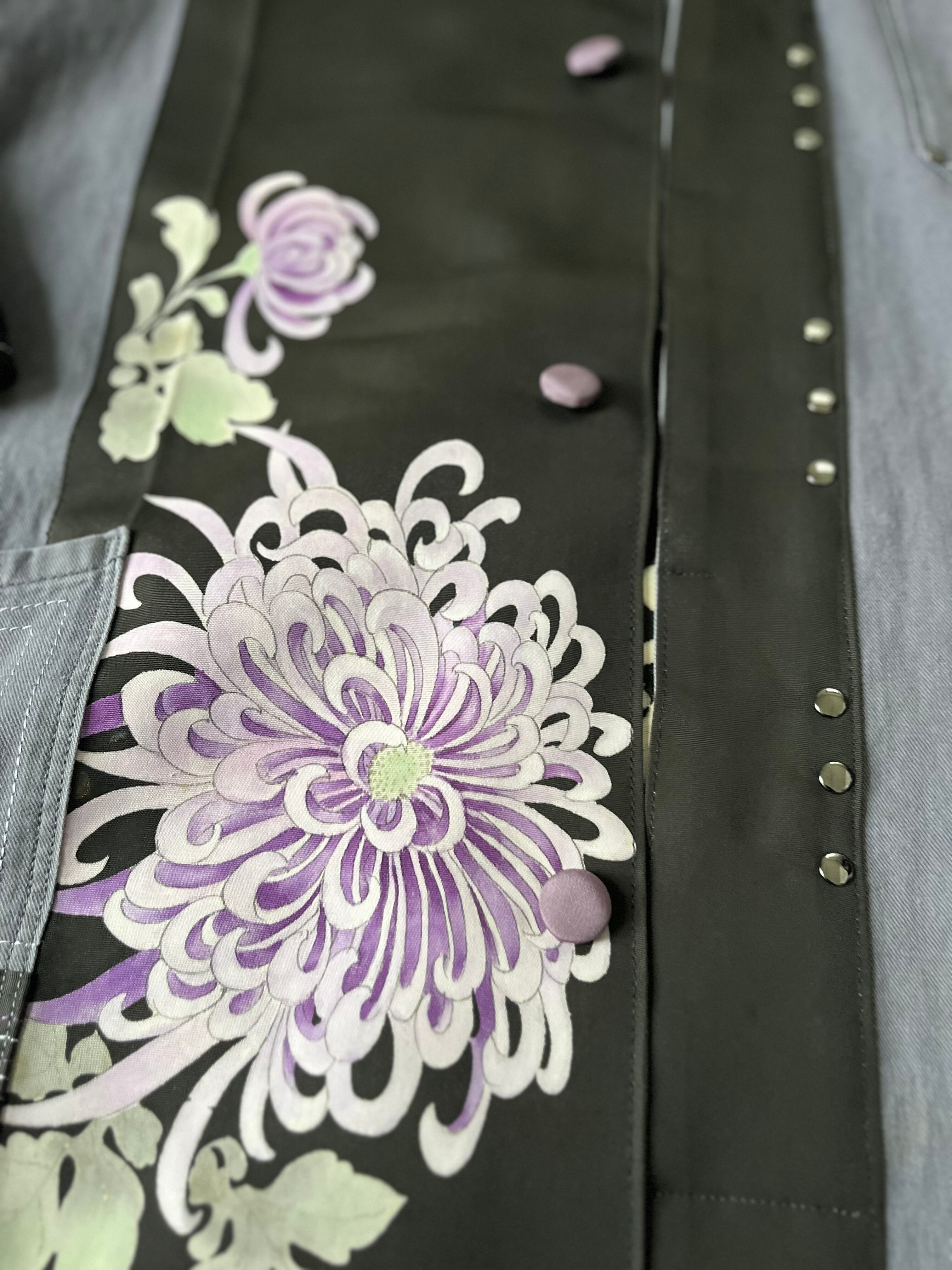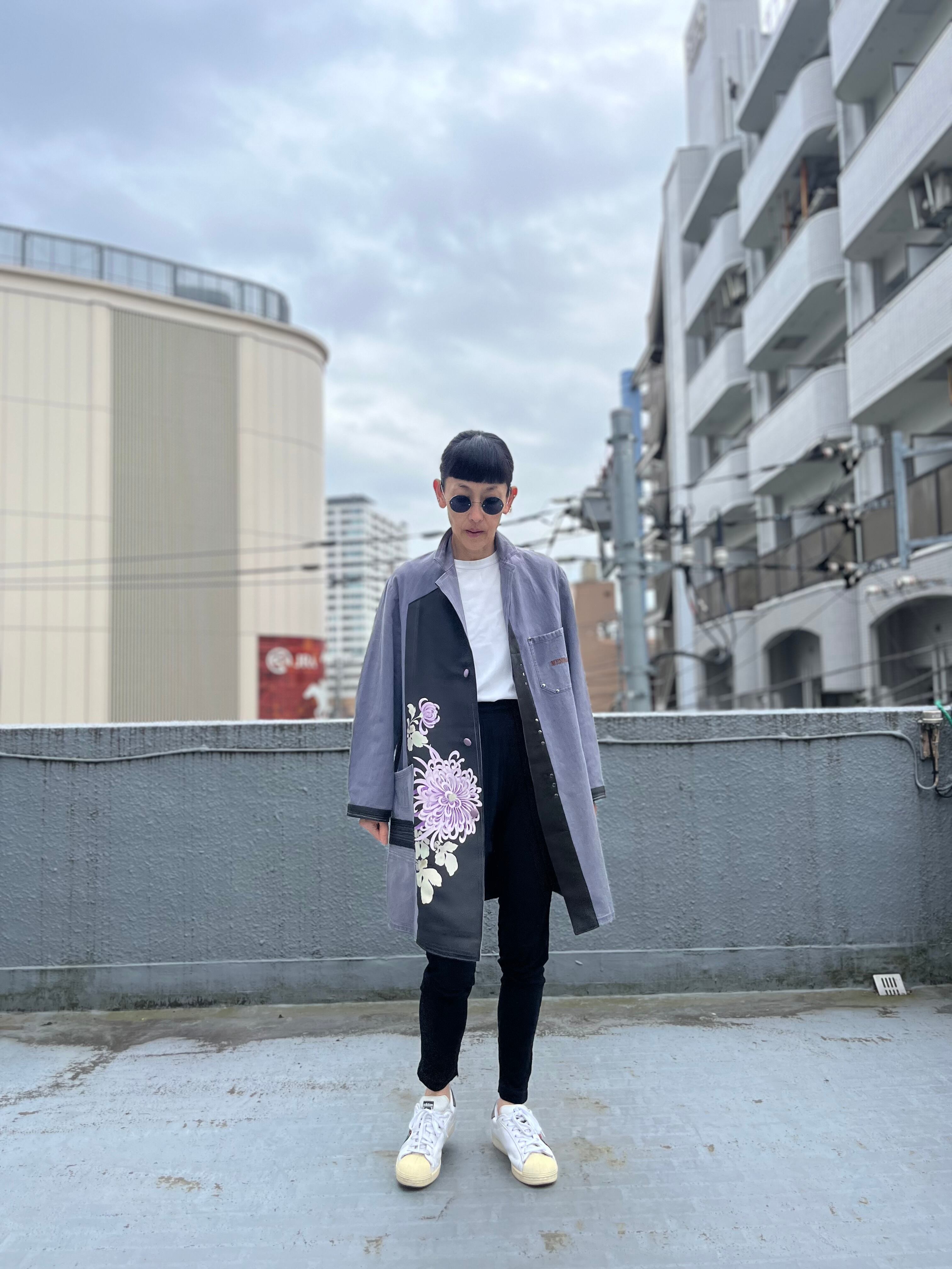 大輪を抱くコート 帯パッチワークコート ユーロワークコート 着物パッチワークJK 着物リメイクJK