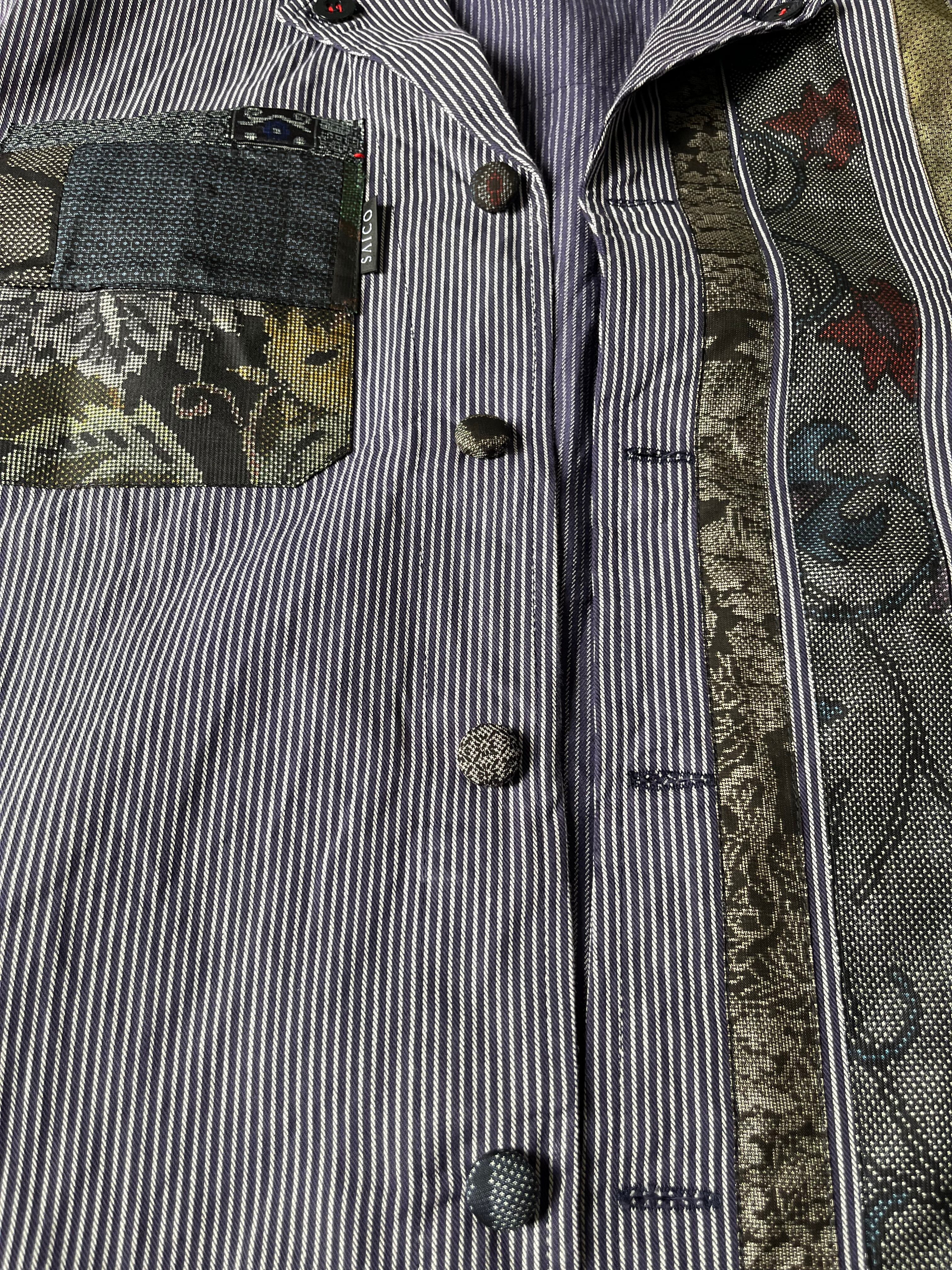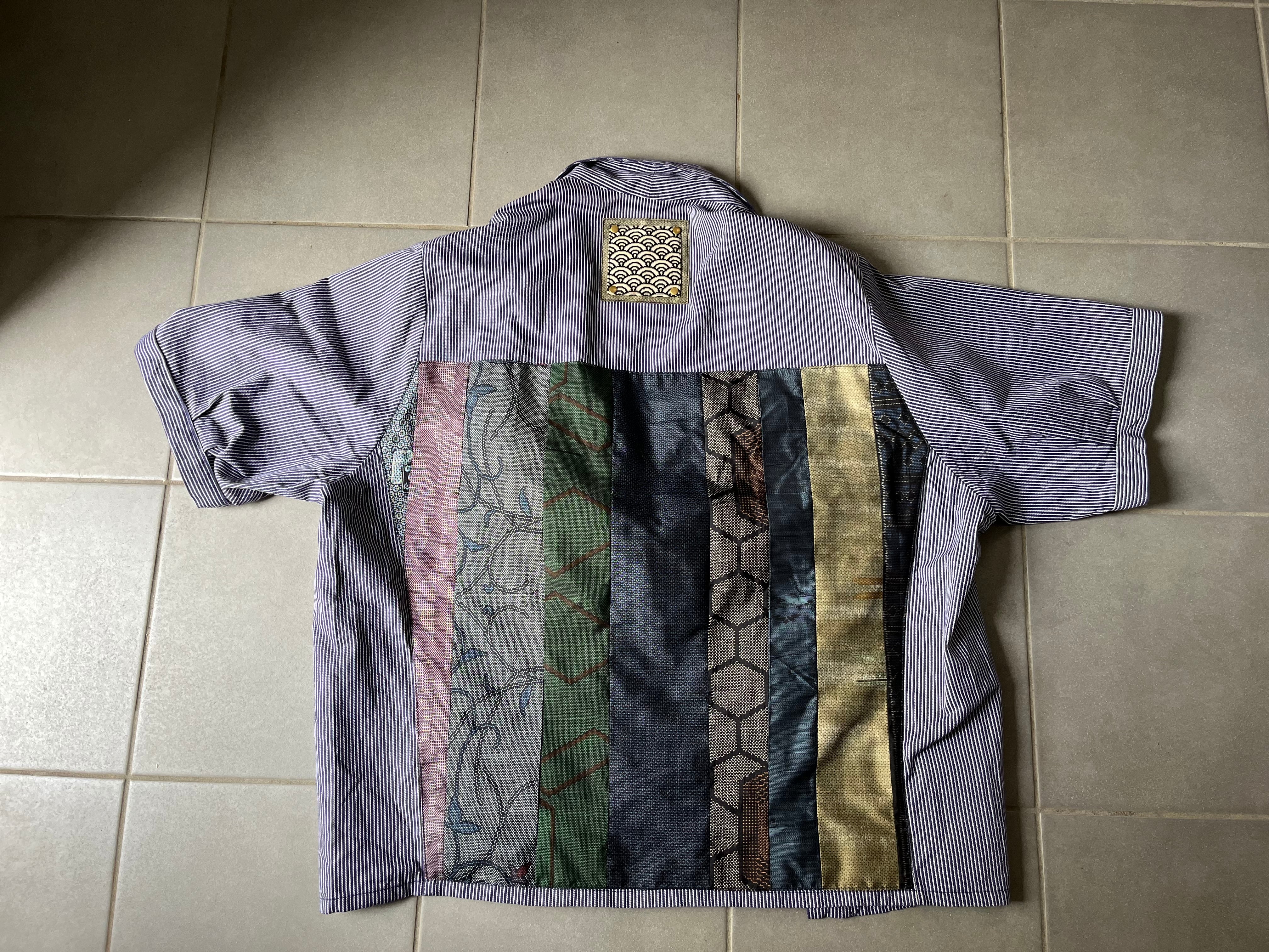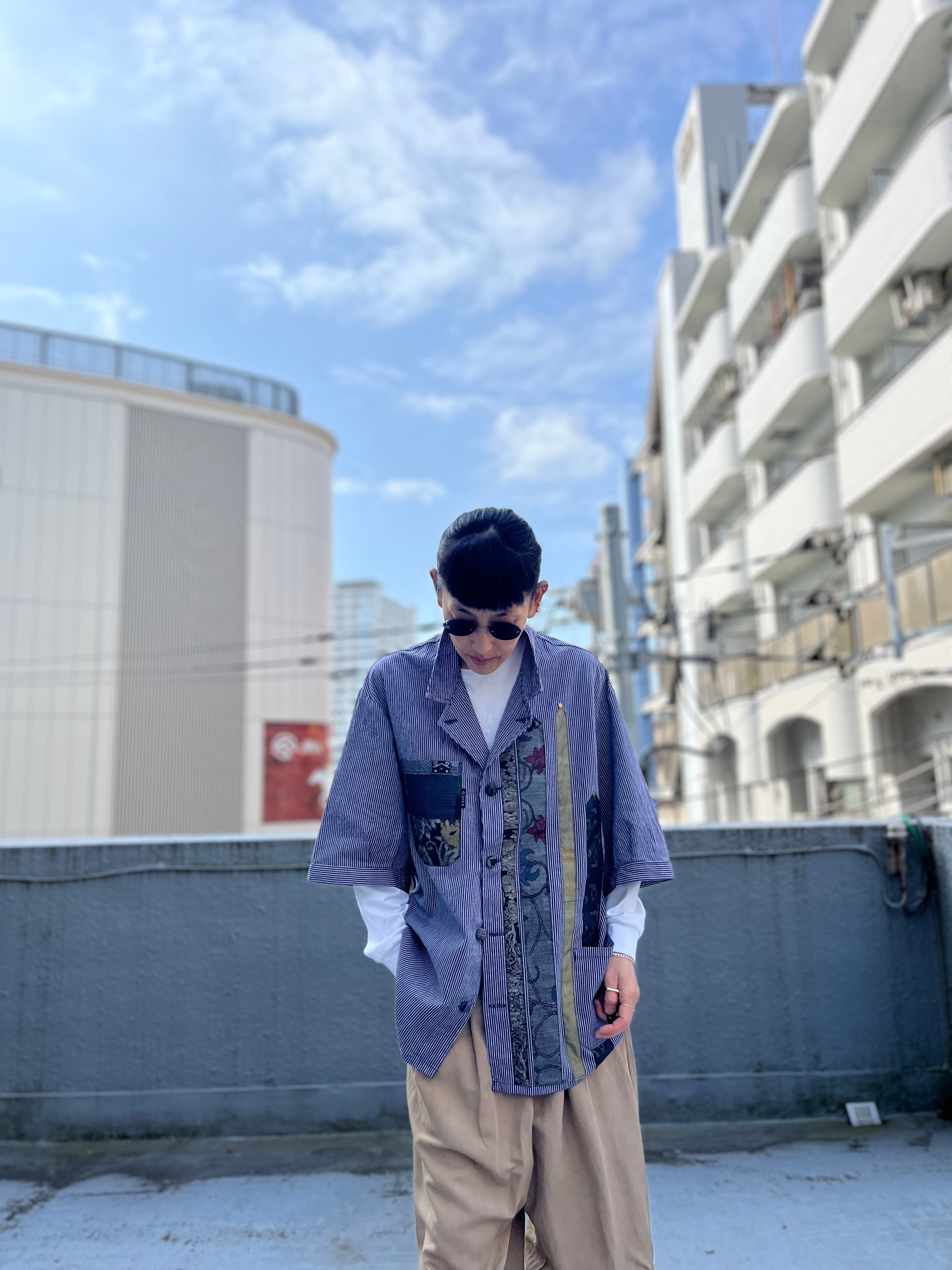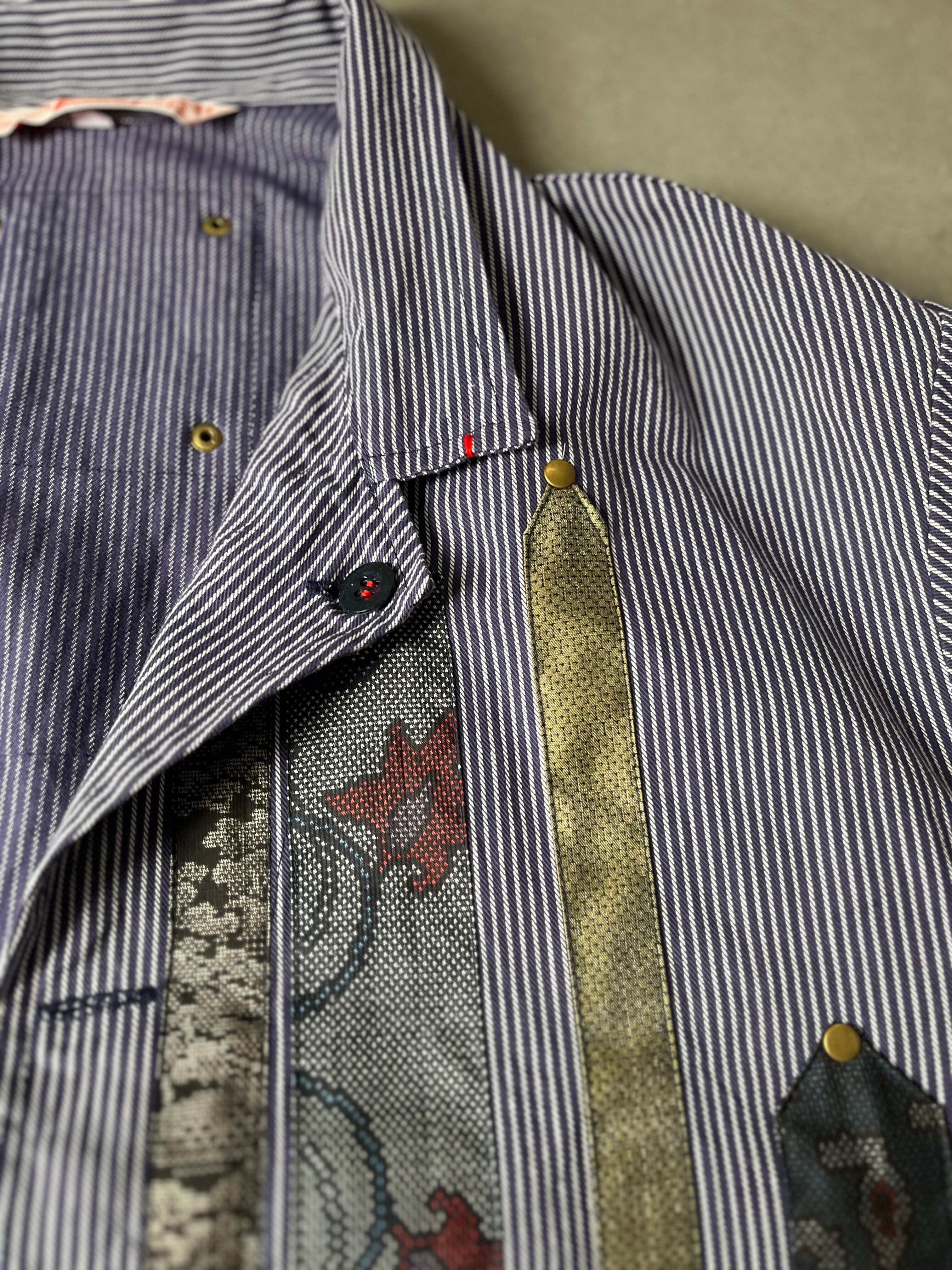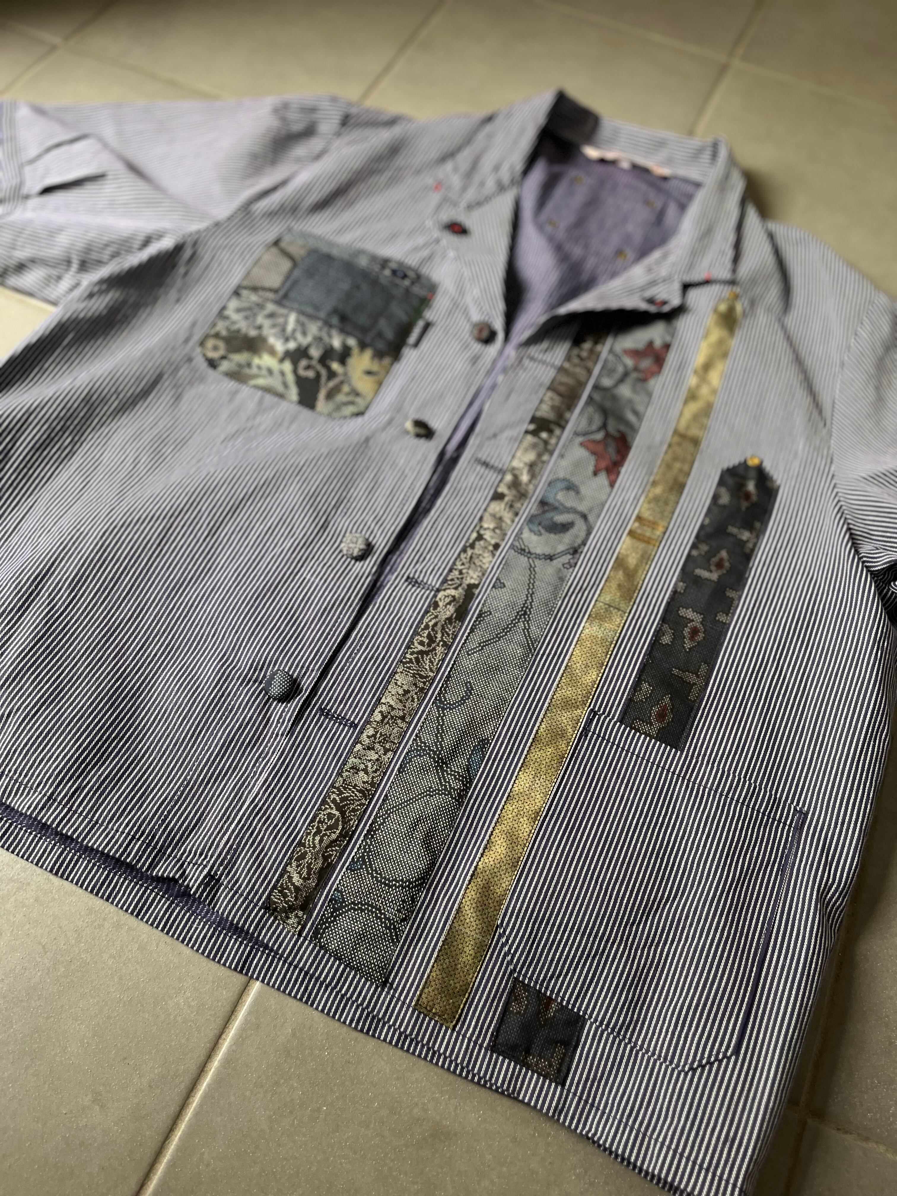 西と東の縞々JK 紬パッチワークコジャケット ユーロワークコート 着物パッチワークJK 着物リメイクJK