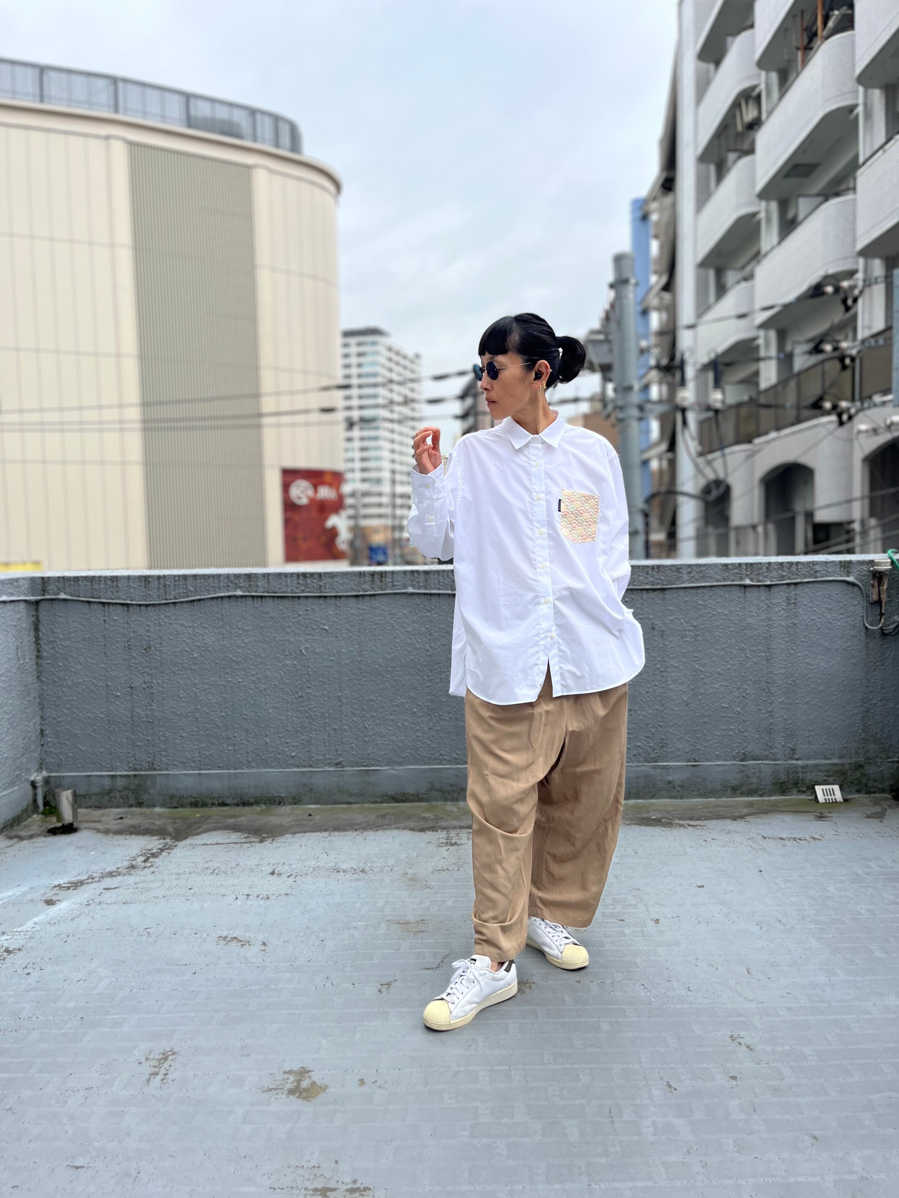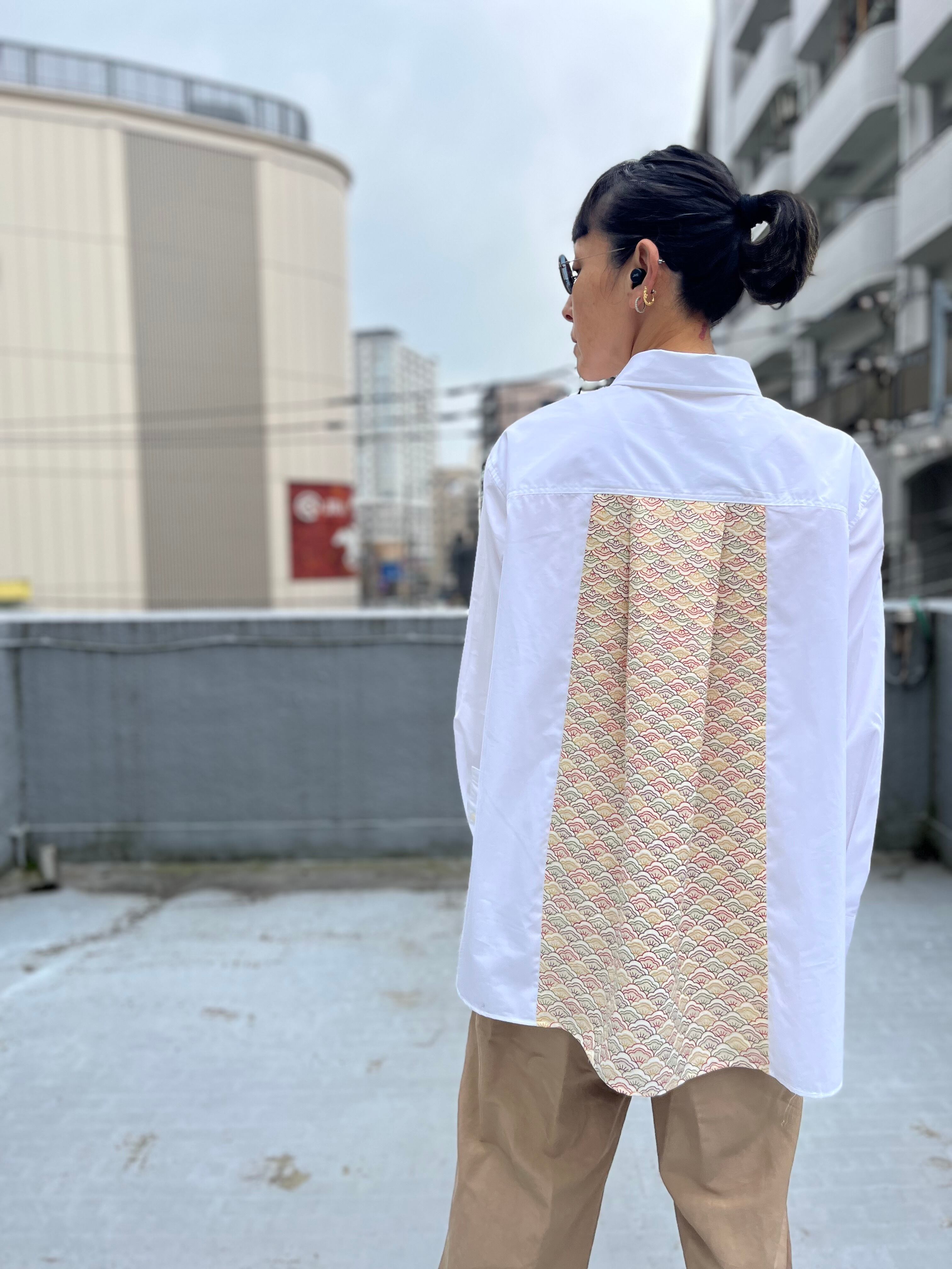 KAKERAシャツ_虹色青海波 着物パッチワークシャツ 着物リユースシャツ 着物リメイク 綿100%&正絹100%