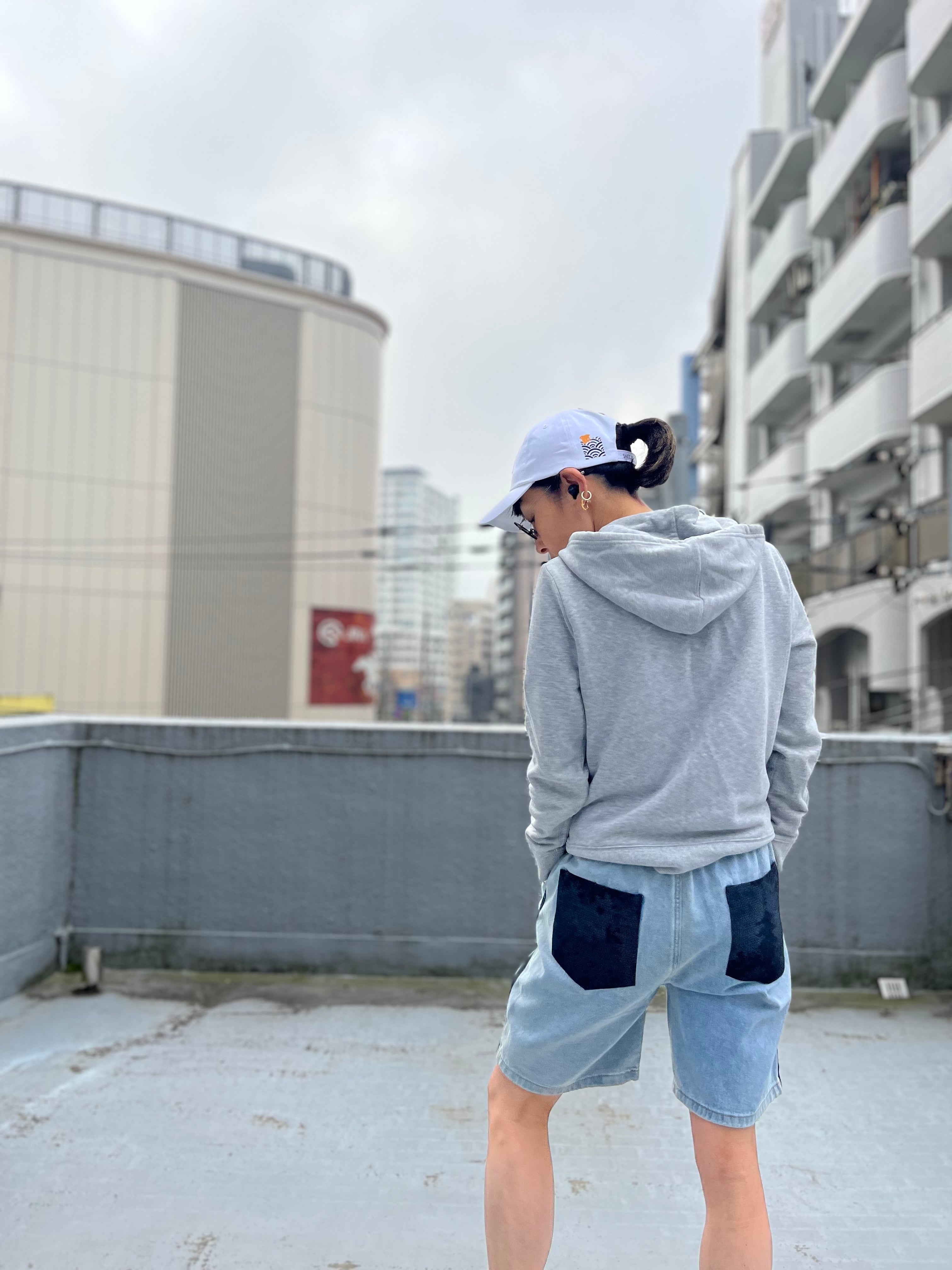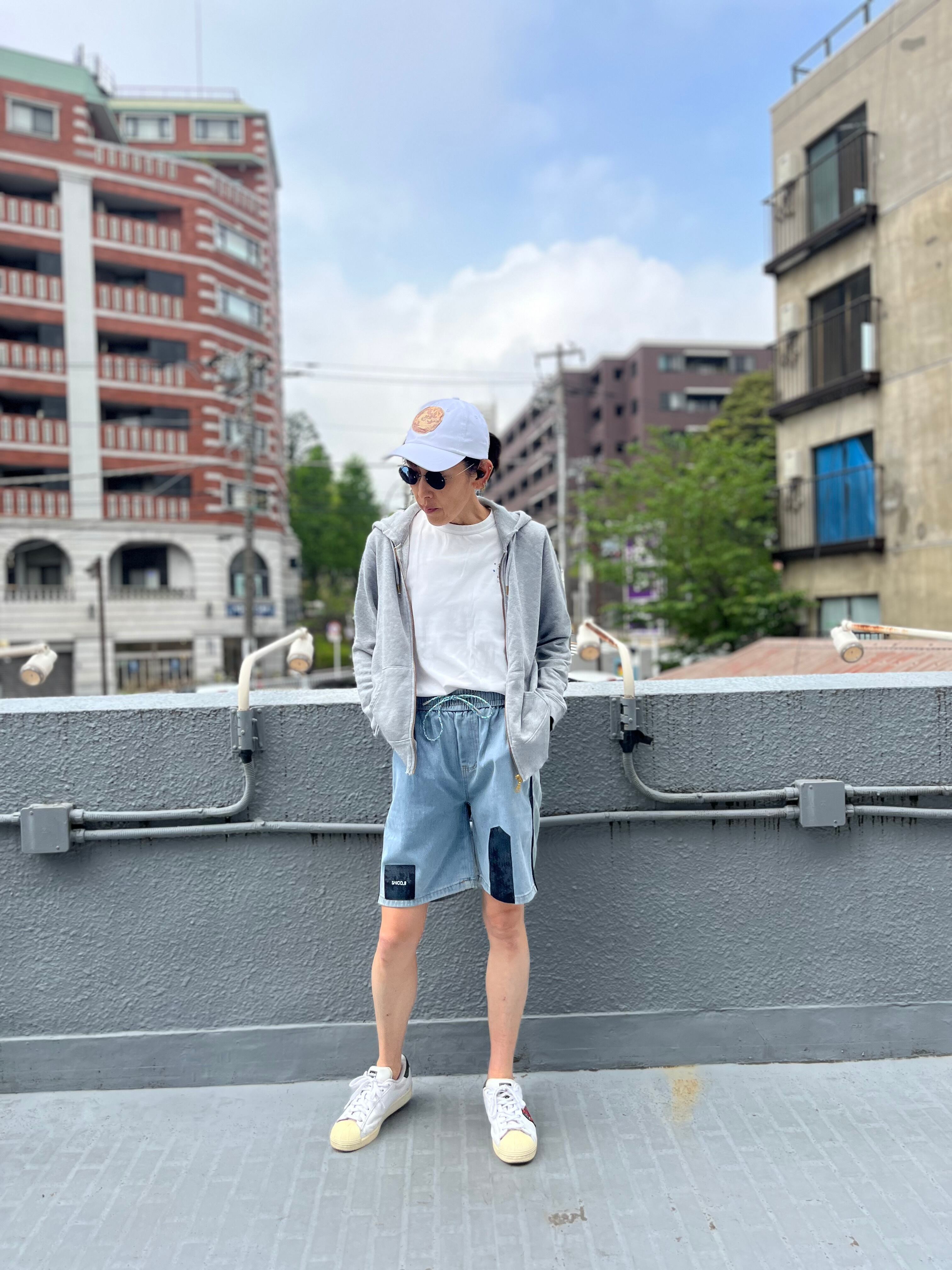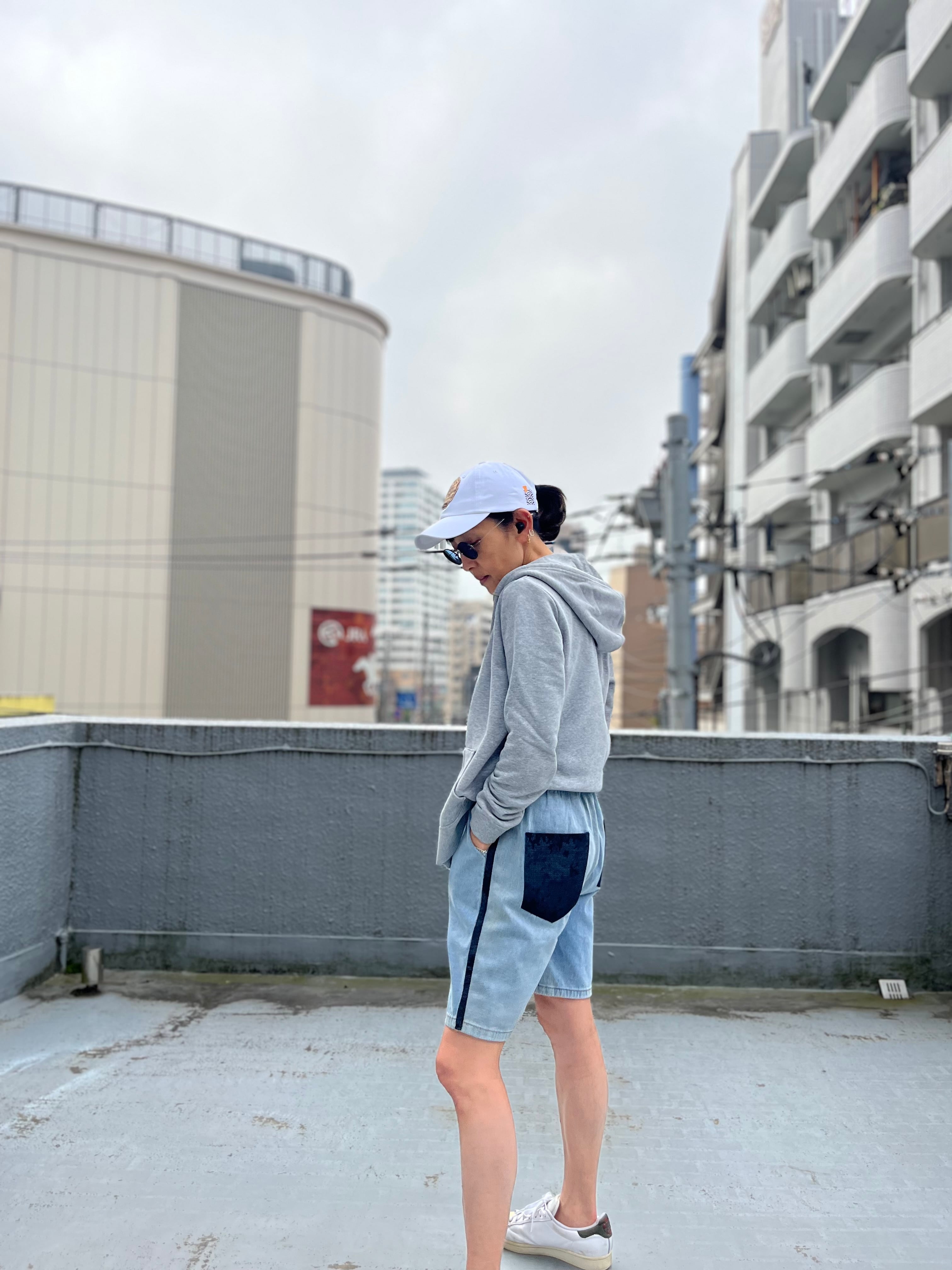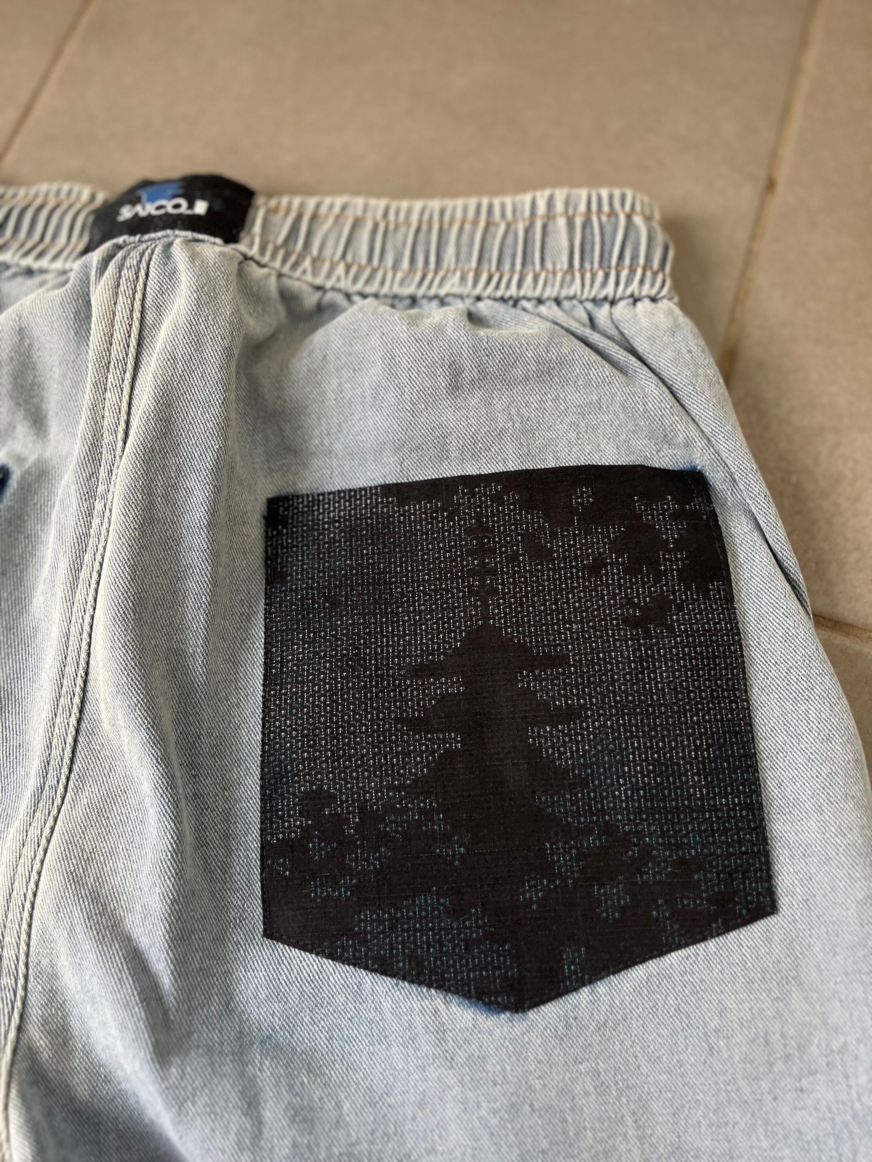 紬ラインパンツ 紬パッチワークデニムショートパンツ 着物リメイク