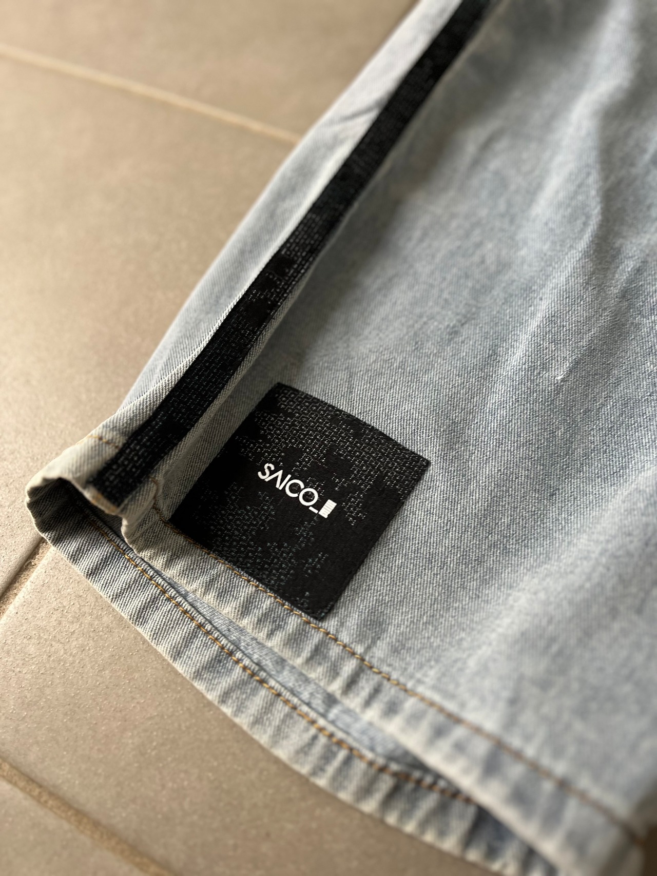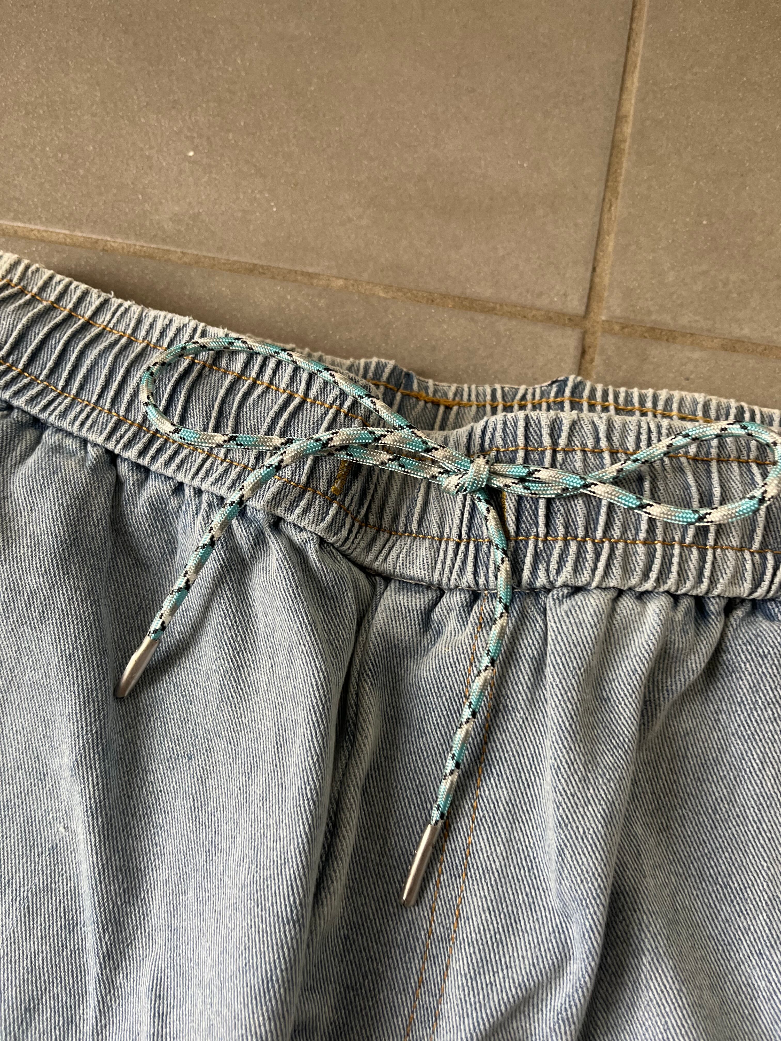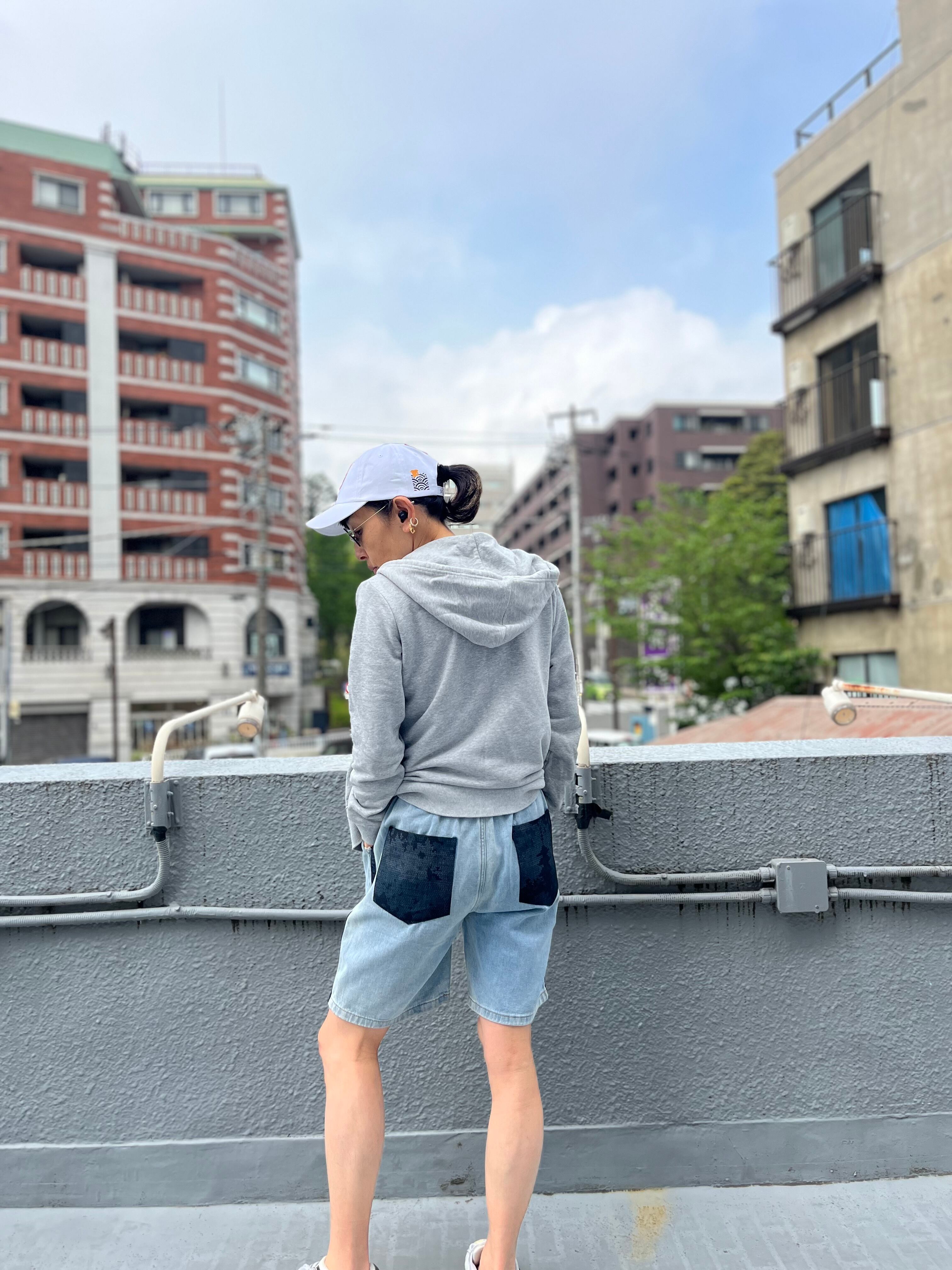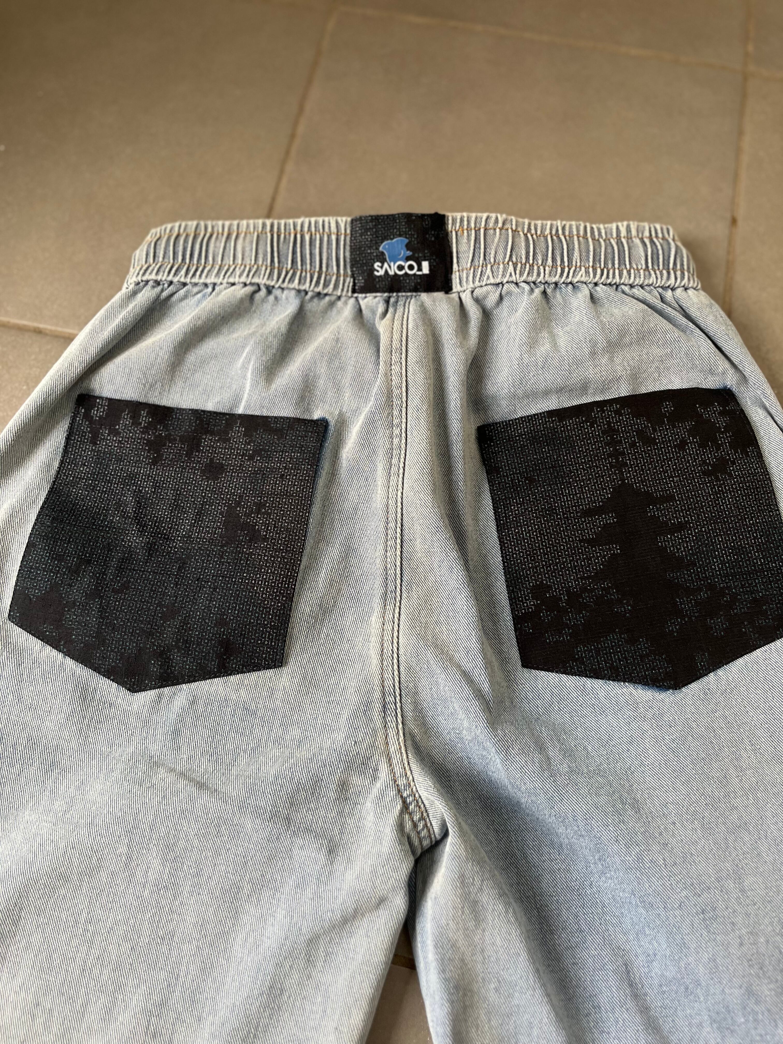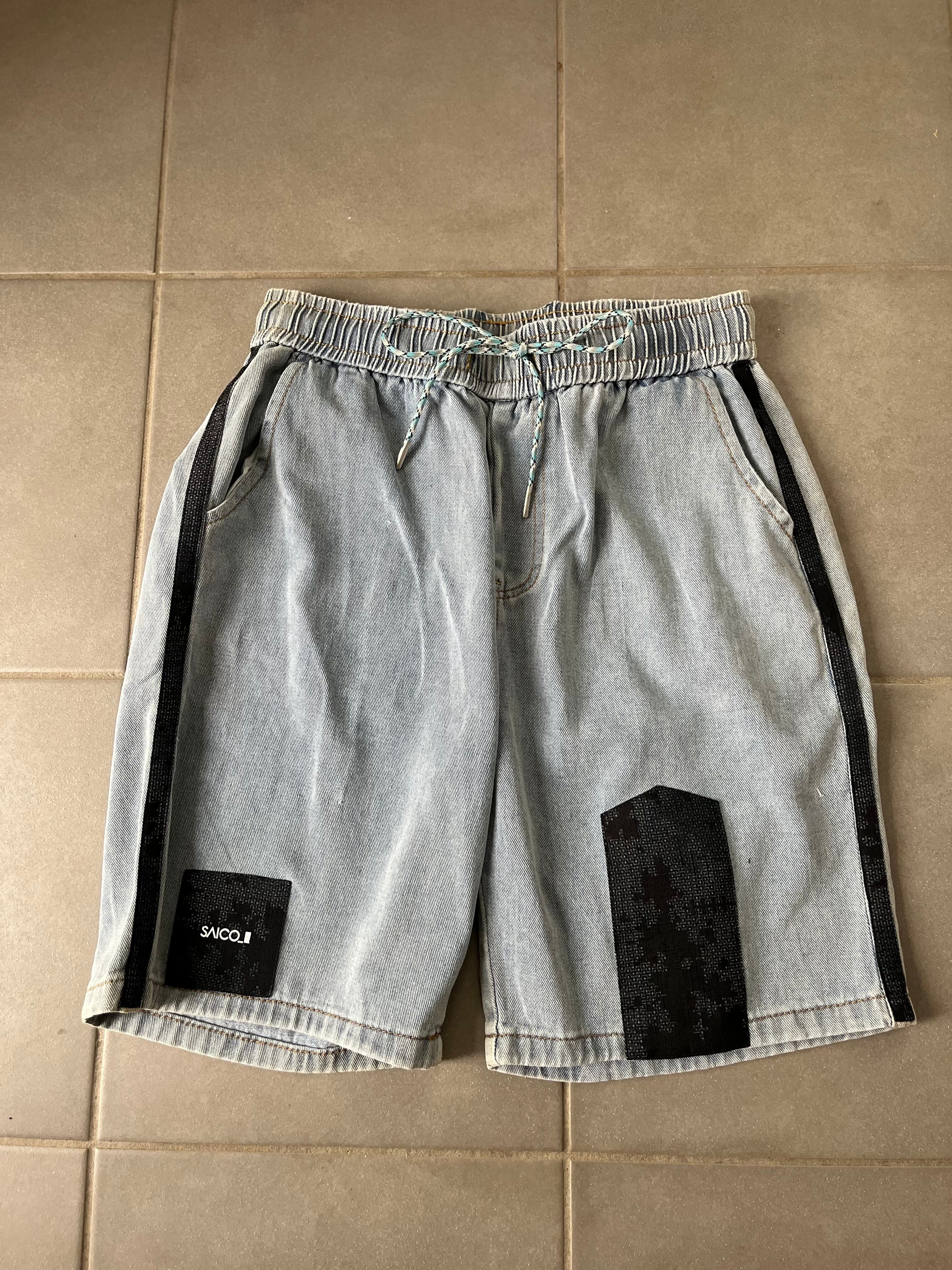 紬ラインパンツ 紬パッチワークデニムショートパンツ 着物リメイク