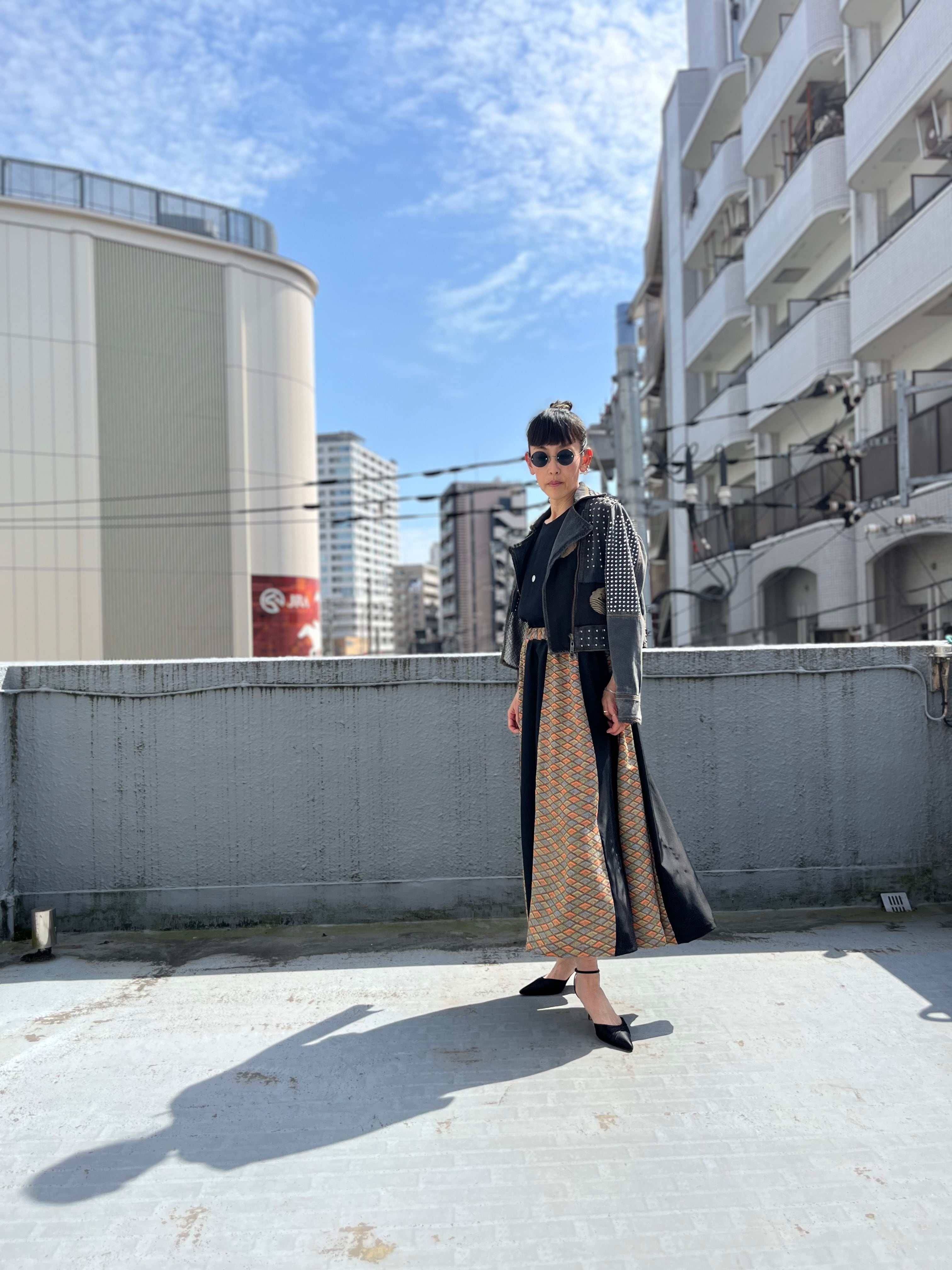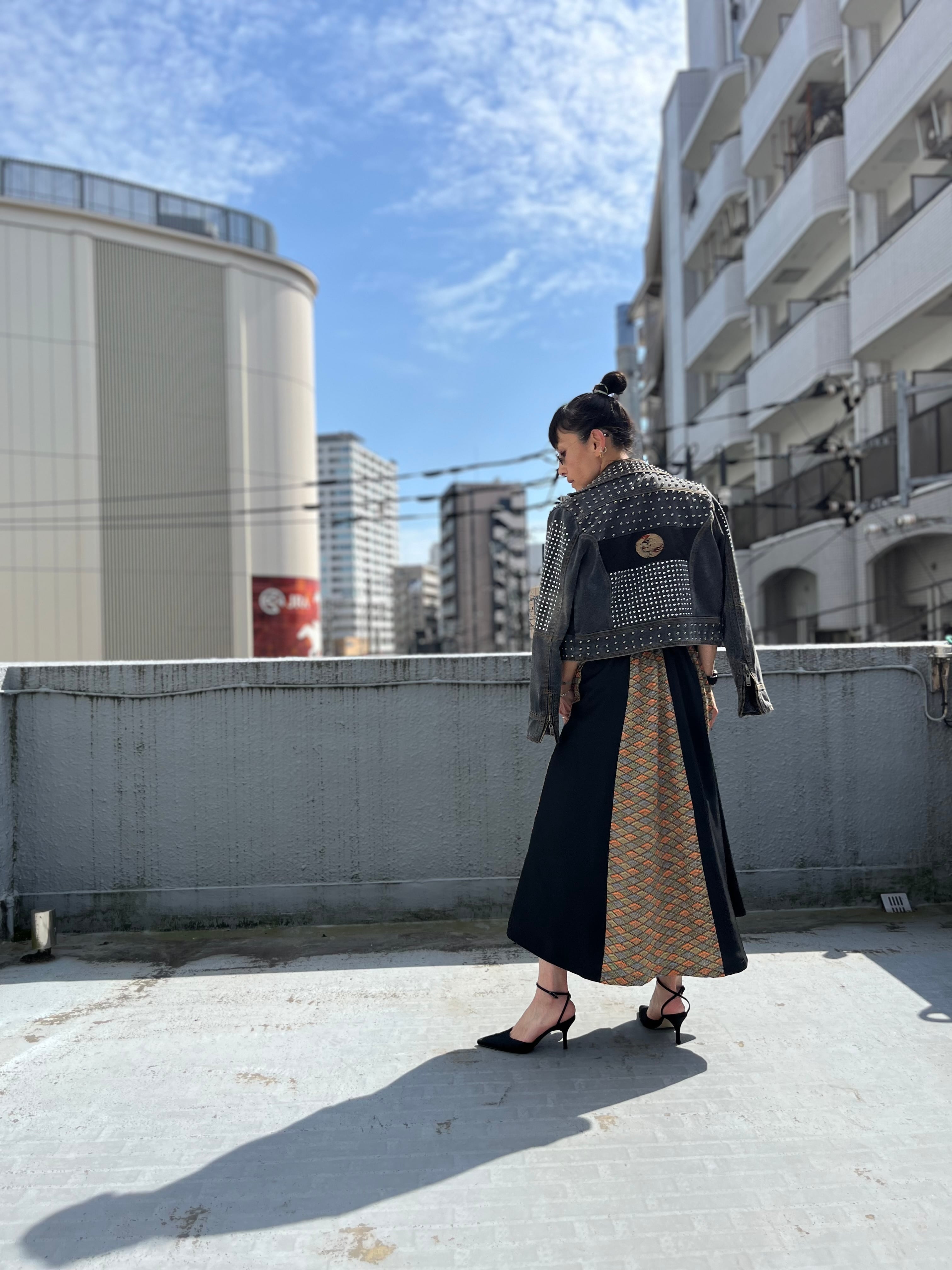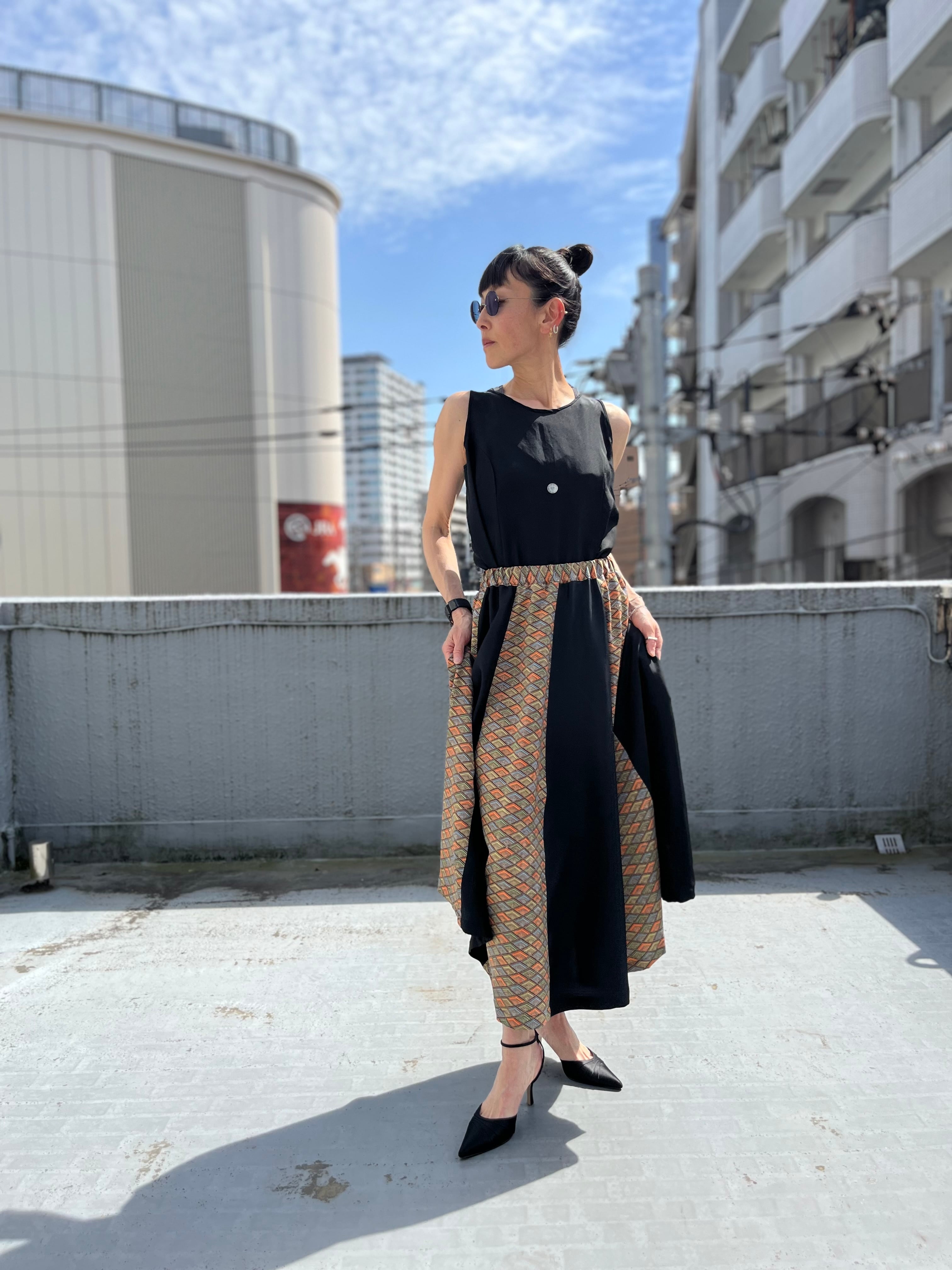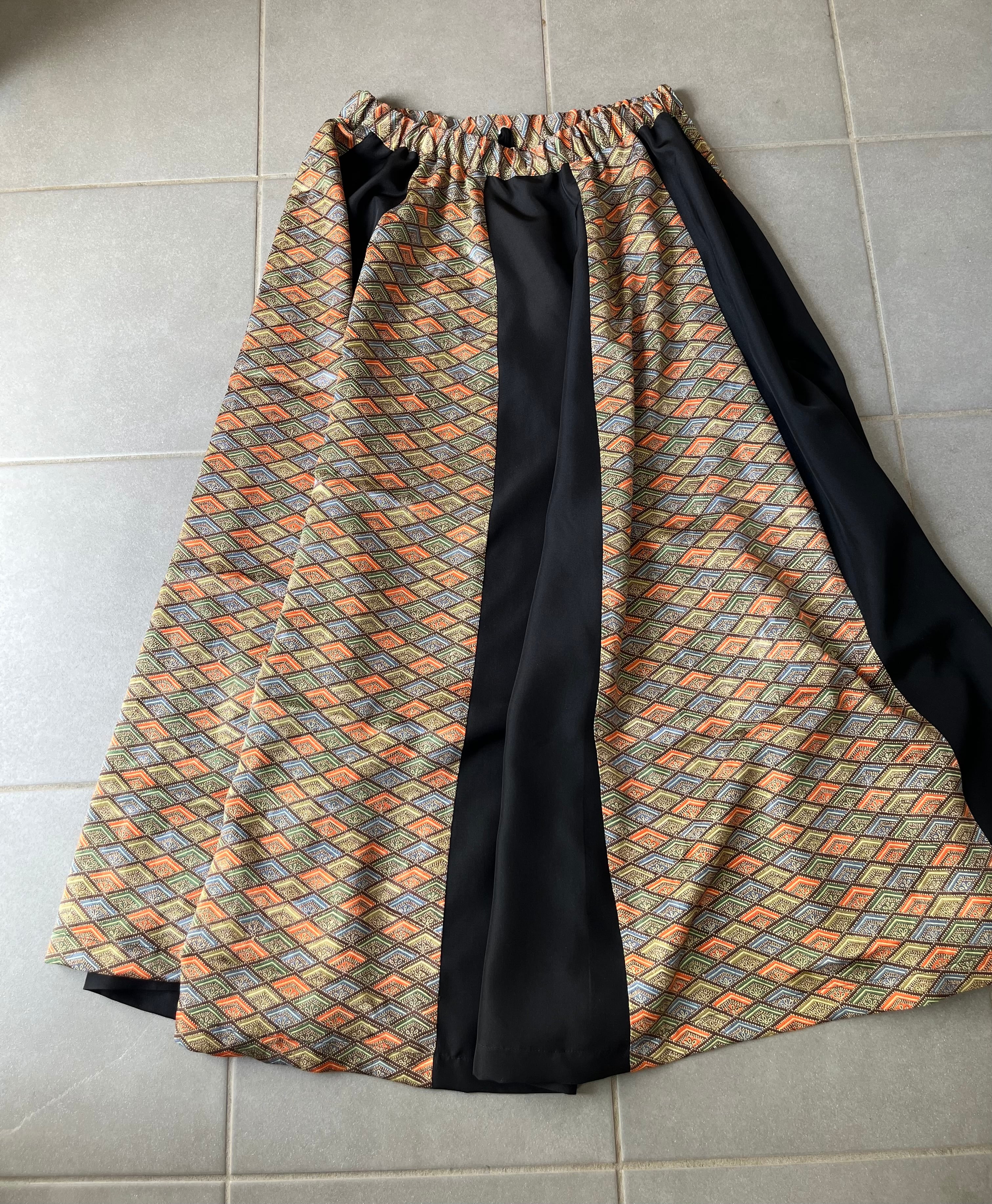 縞細工_扇嵐スカート 着物リメイク 着物再々生 着物ハギレスカート 着物リメイク