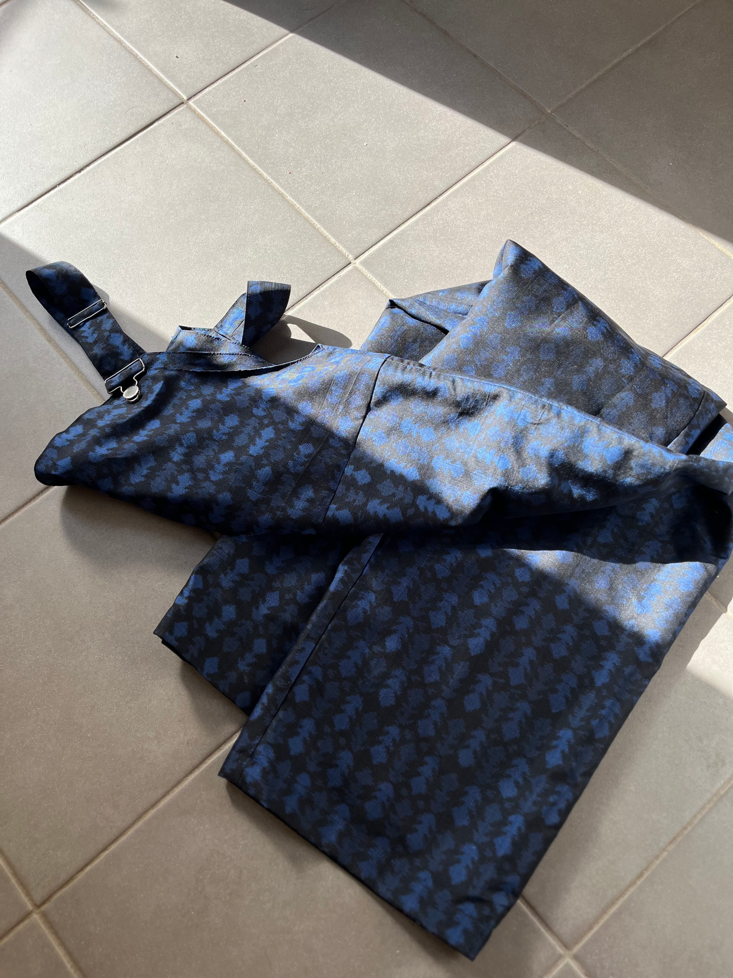 青の洞窟サロペット 紬リメイクサロペット 着物リメイク