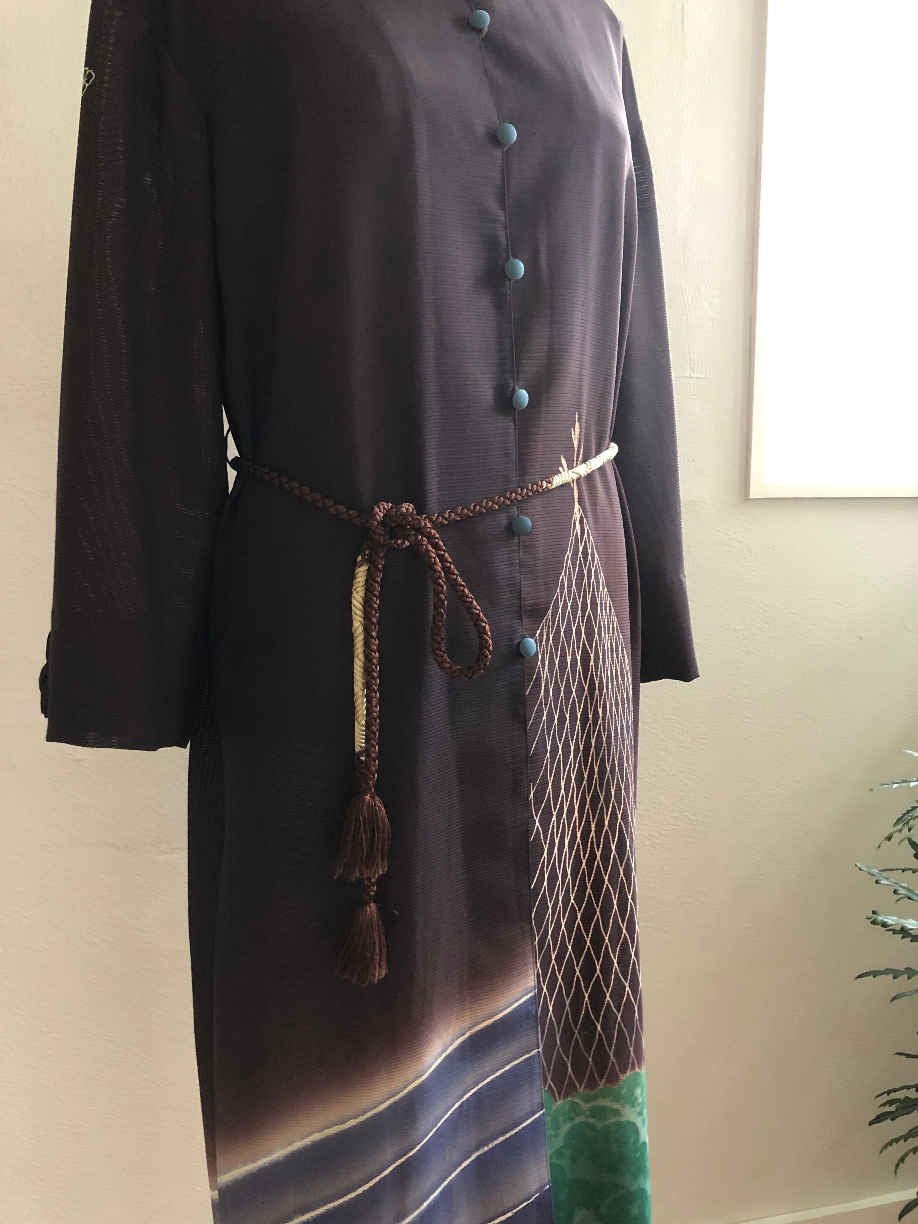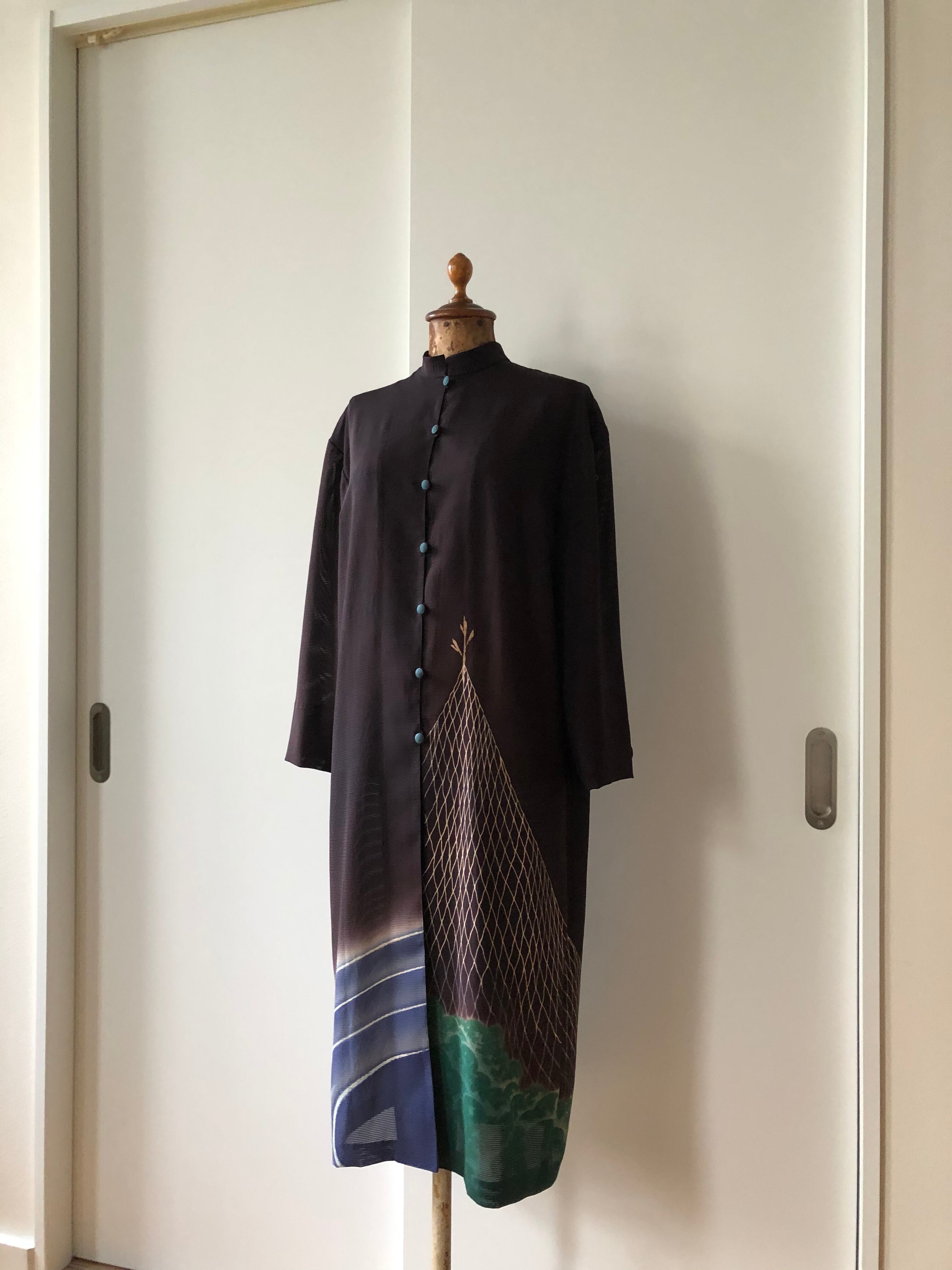 絽 スタンドカラーHITOE 着物リユース和洋服 VINTAGE KIMONO RTEUSE 【atelierline Hand made 一点物】