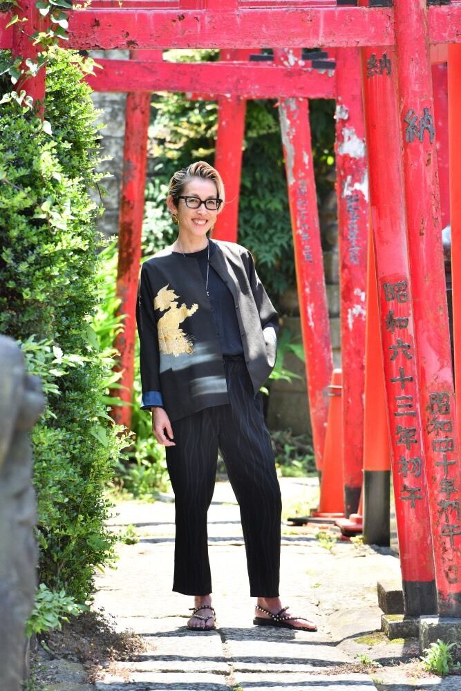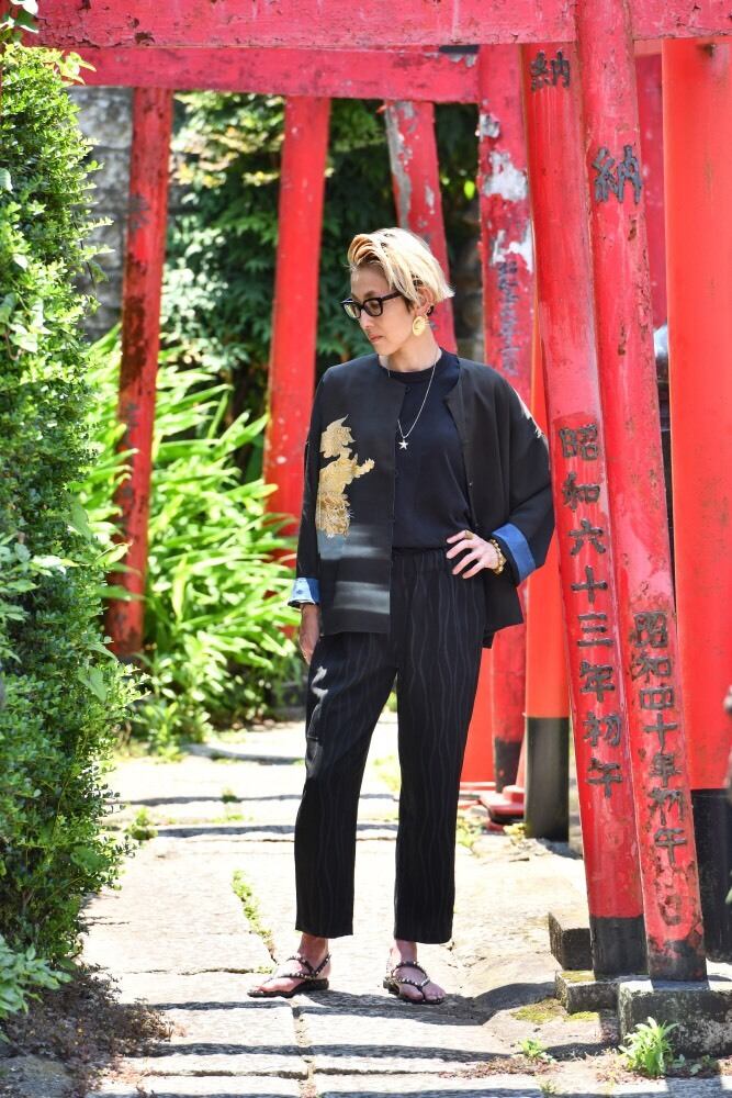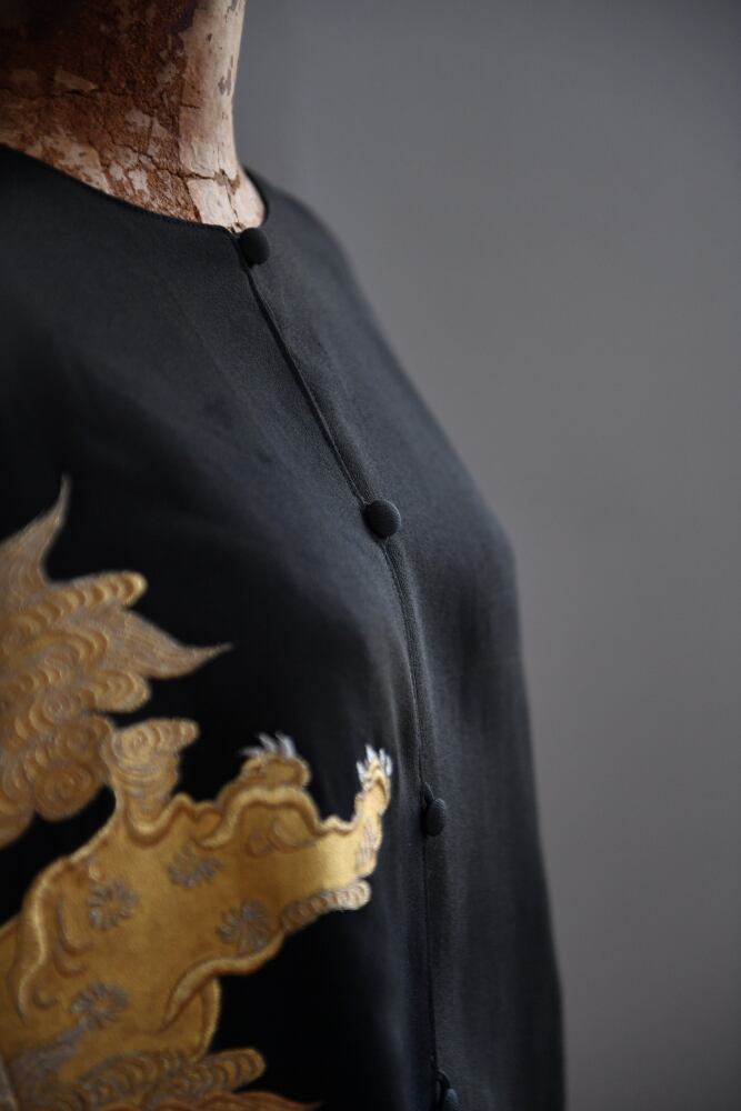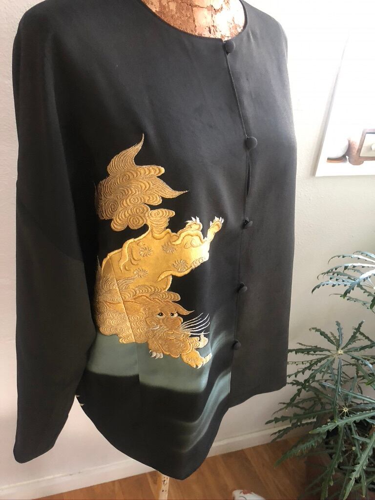 獅子刺繍の黒留袖をリメイクしたノーカラージャケット
