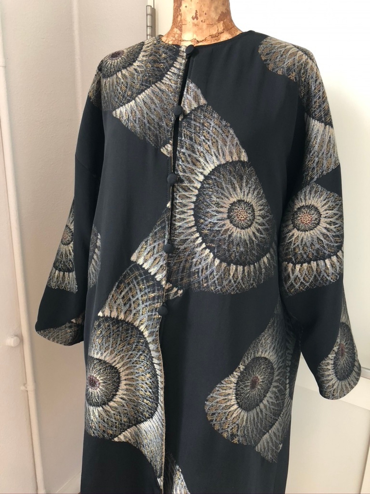 アンモナイトのような不思議な幾何学文様をあしらった着物でした