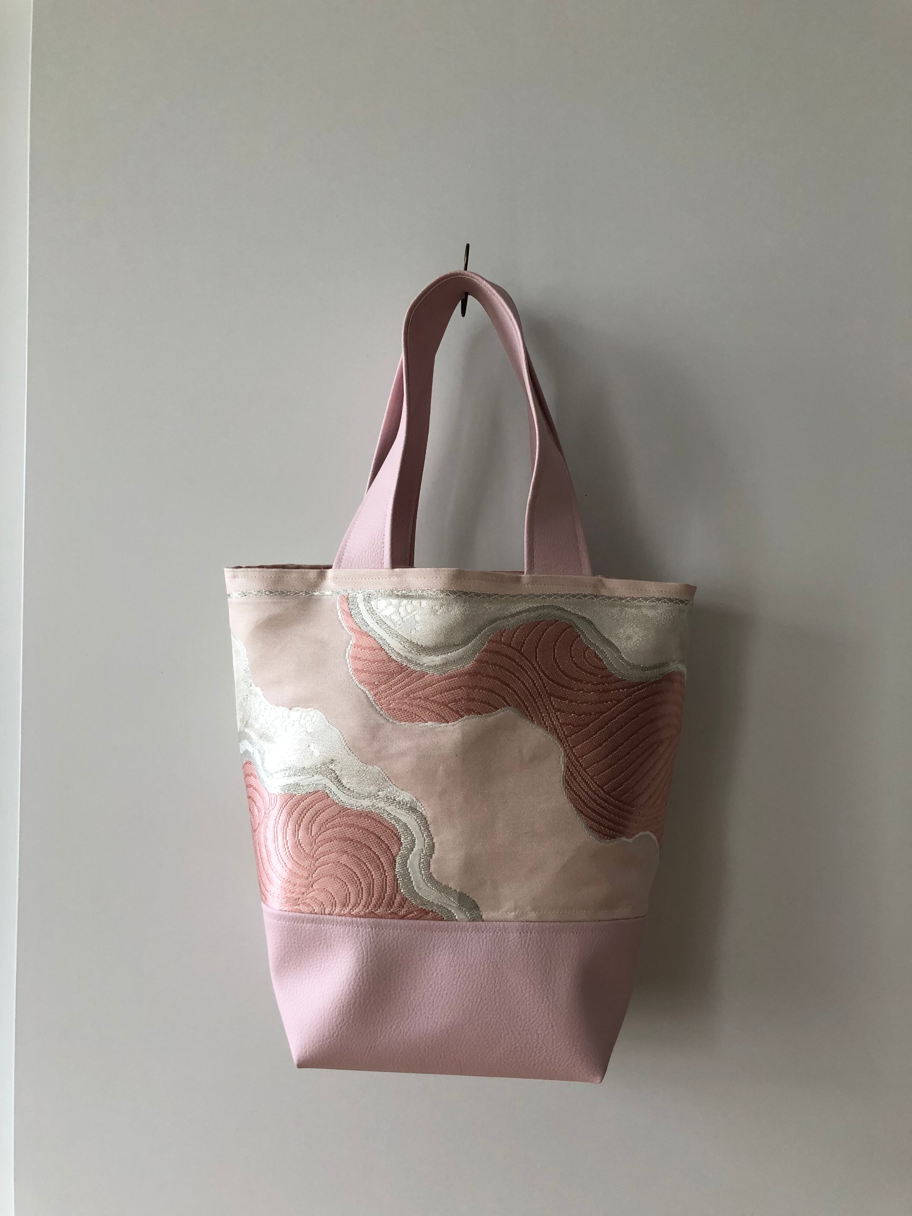 砂紋模様帯×エコレザー トートバック(Sサイズ)帯リユースバック 帯リメイク