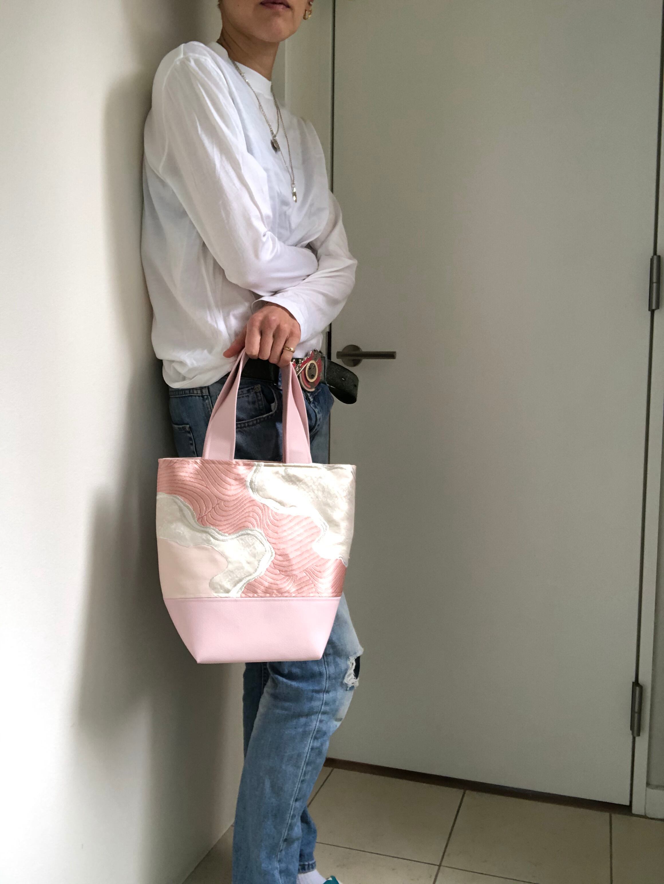 A tote bag made of "obi" that looks like a sand pattern in a japanese garden.