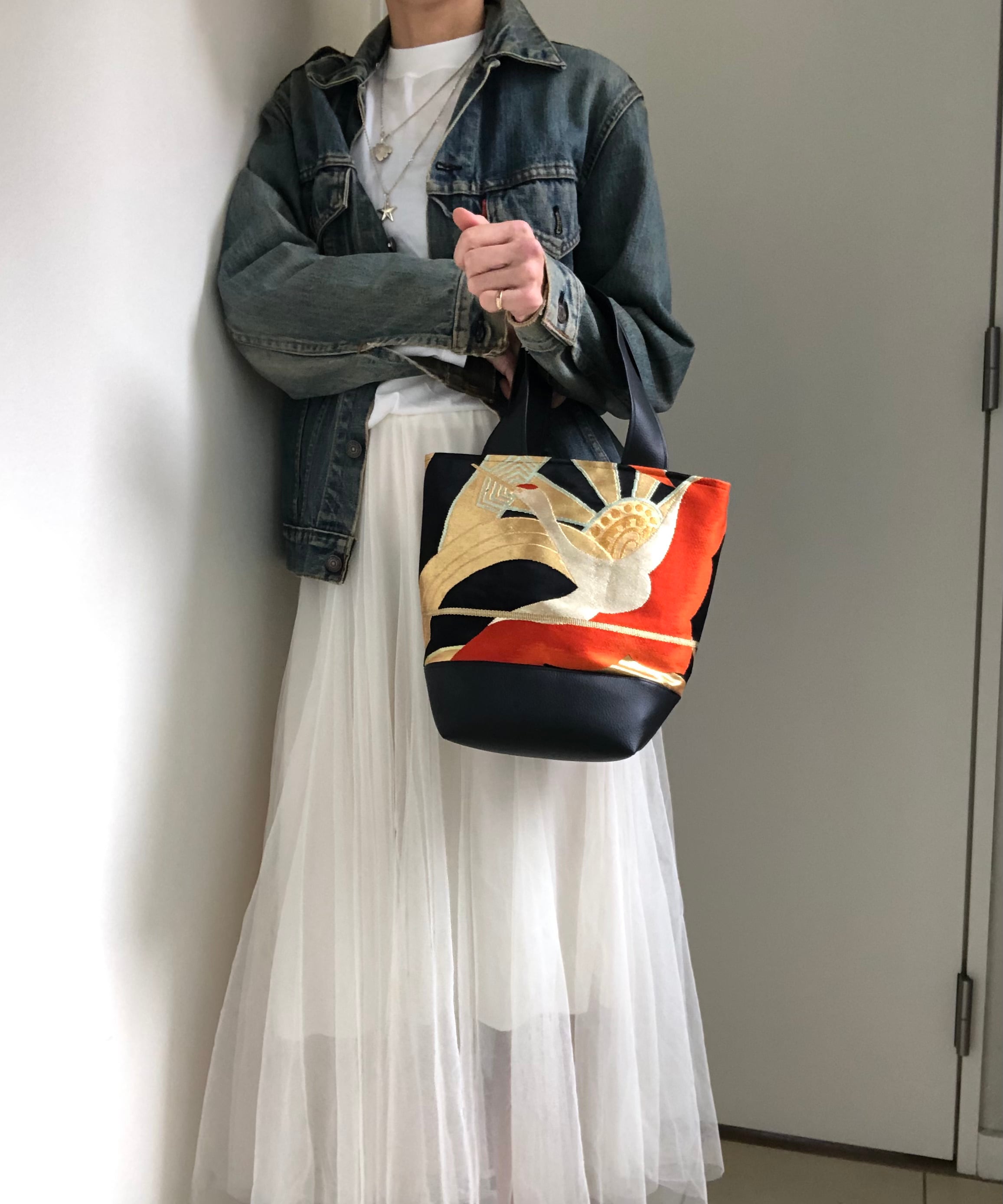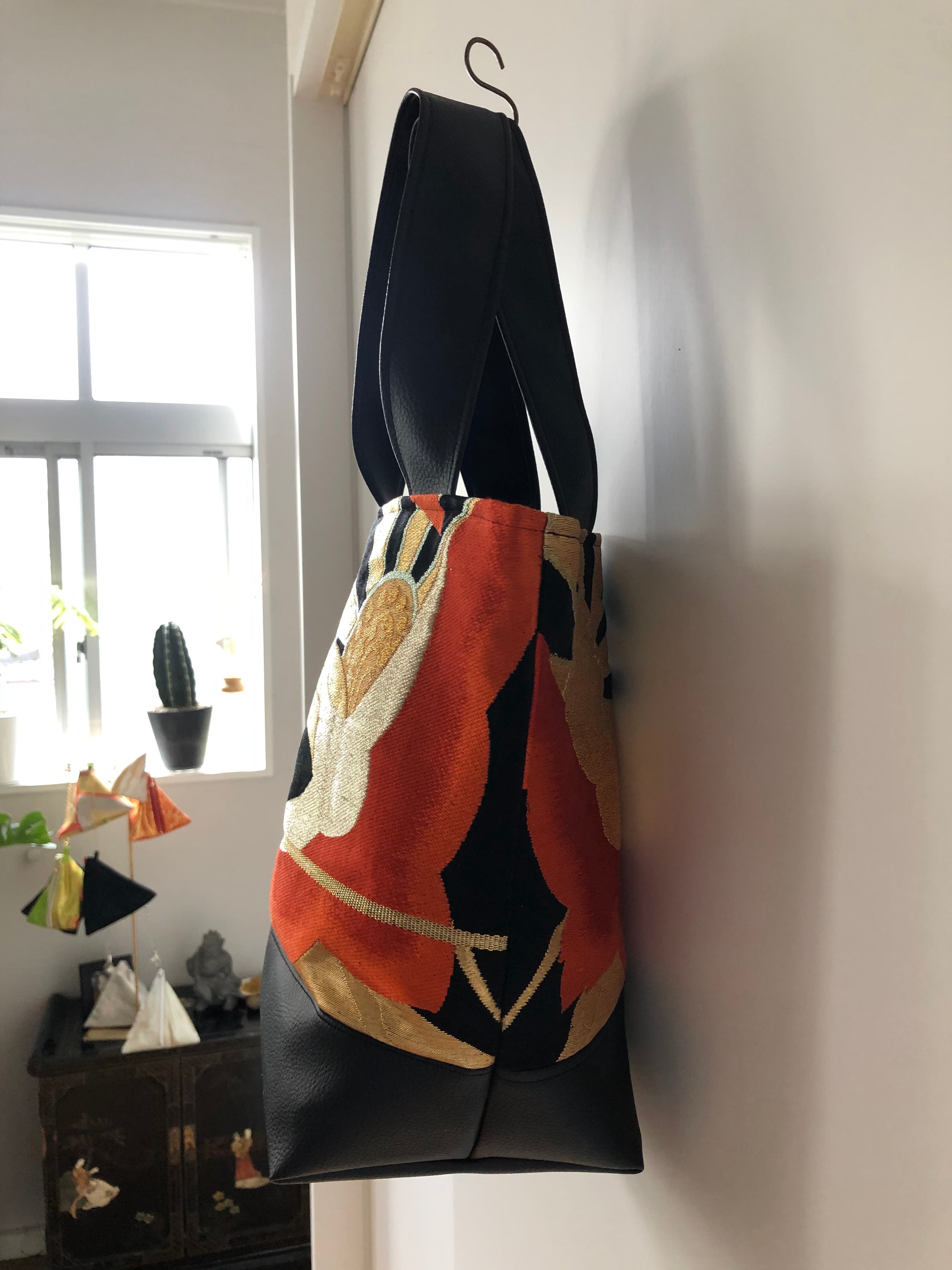 表: 帯 (絹 )× エコレザー(表皮 PVCポリ塩化ビニール/裏地 メリヤス)