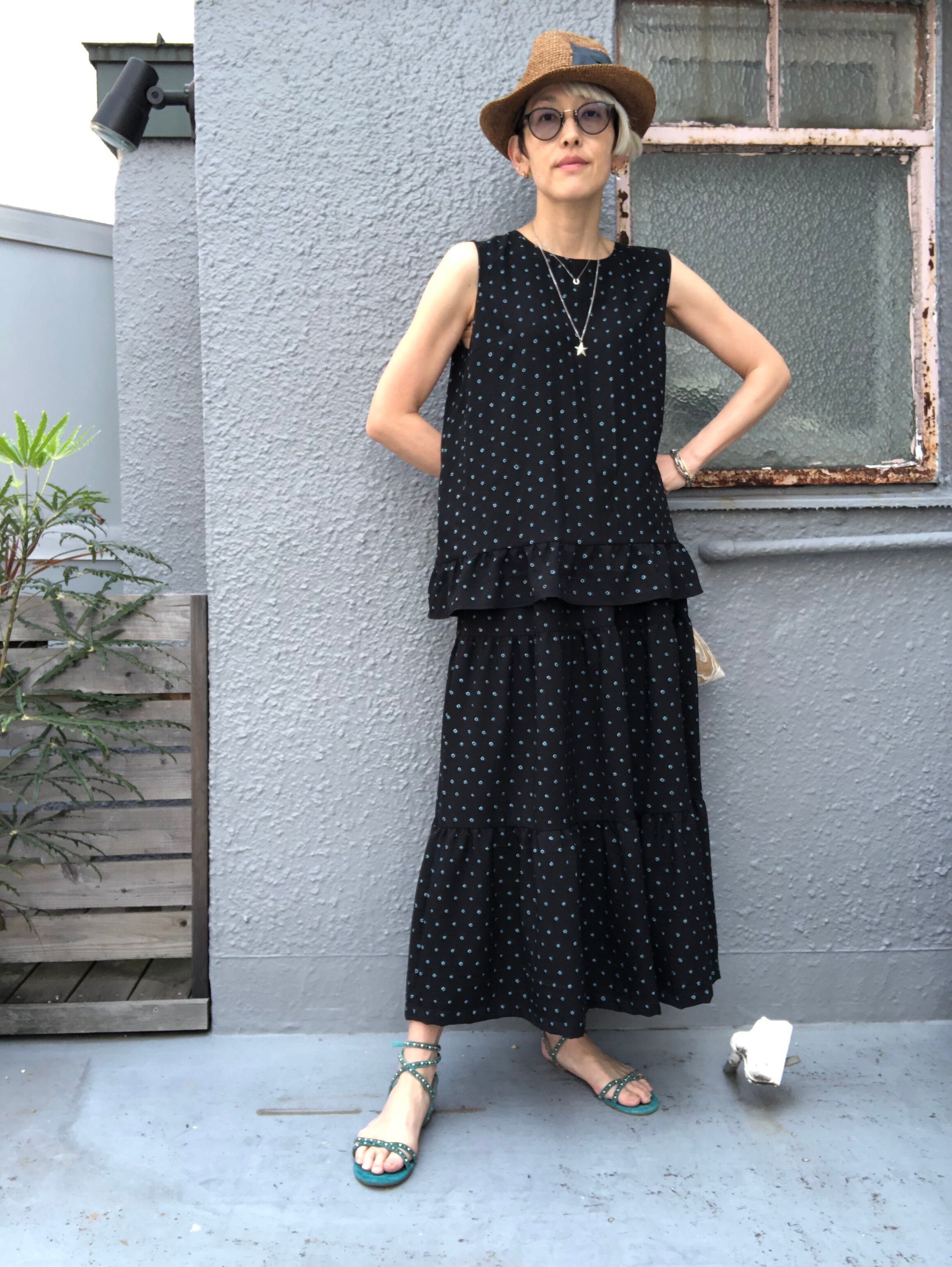 別売りのティアードスカートとセットアップ着ることでワンピースのような仕上がりになります