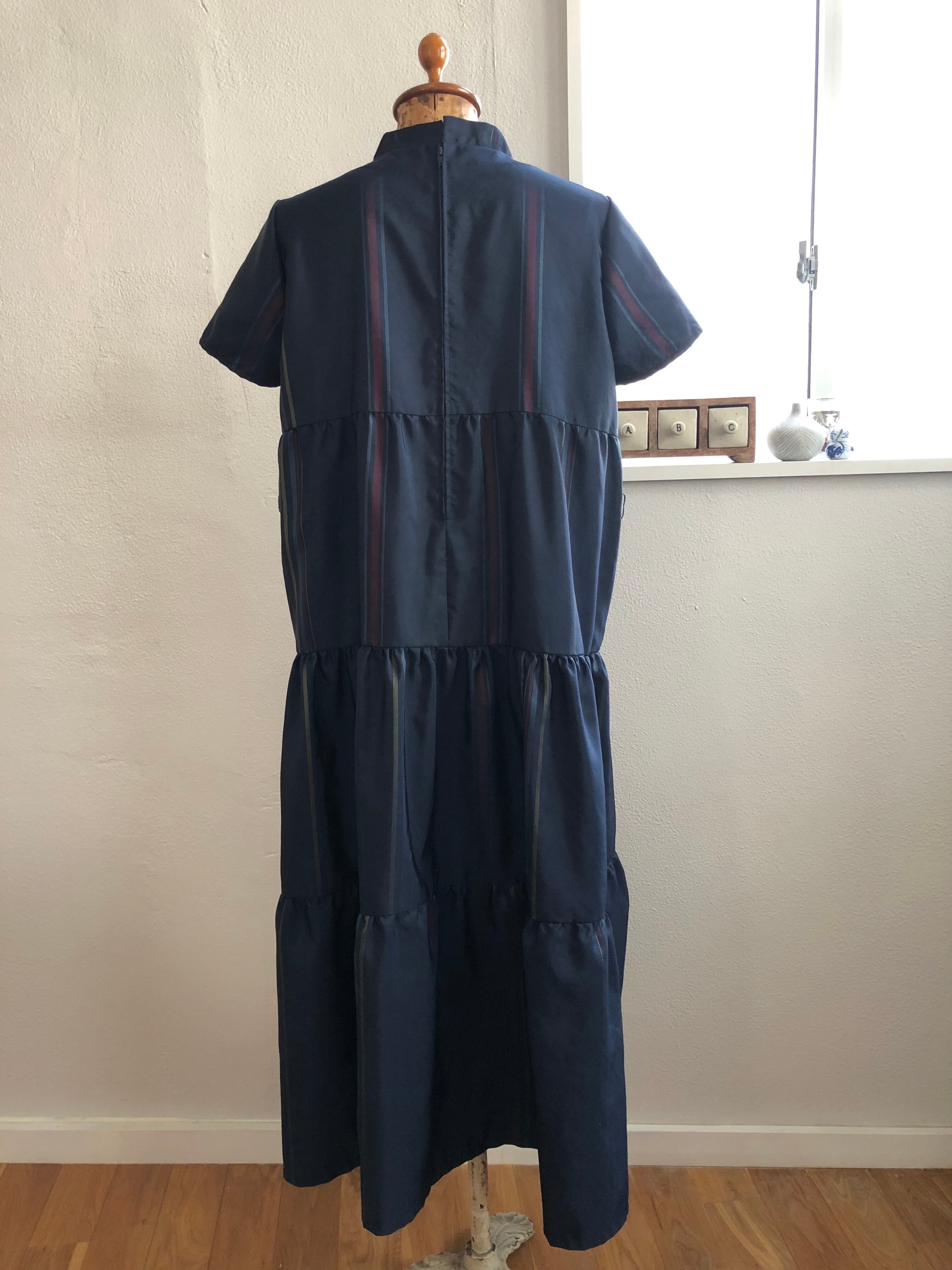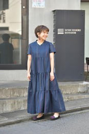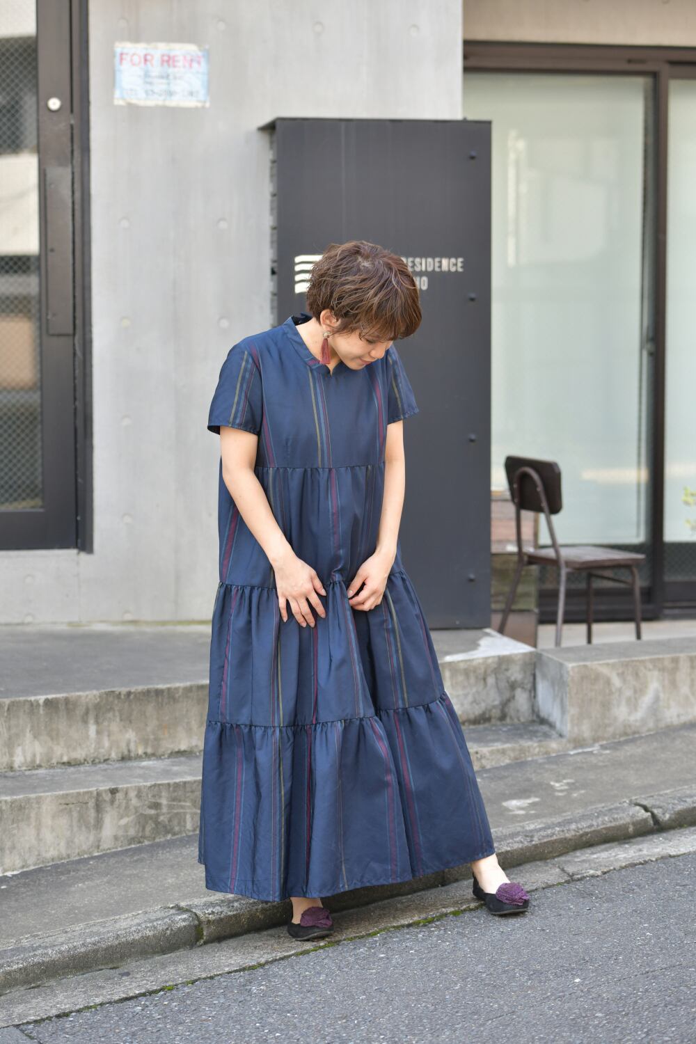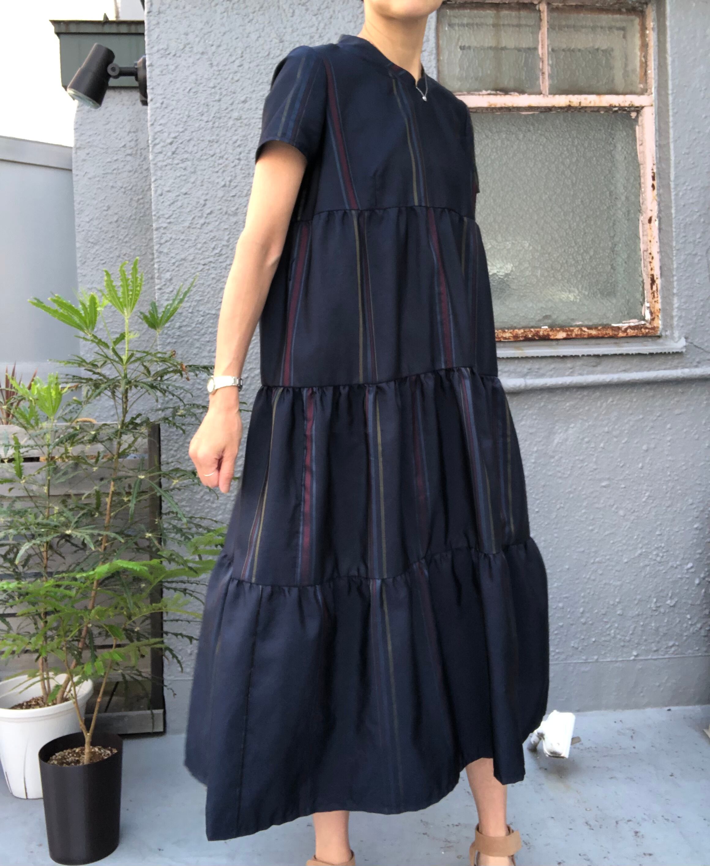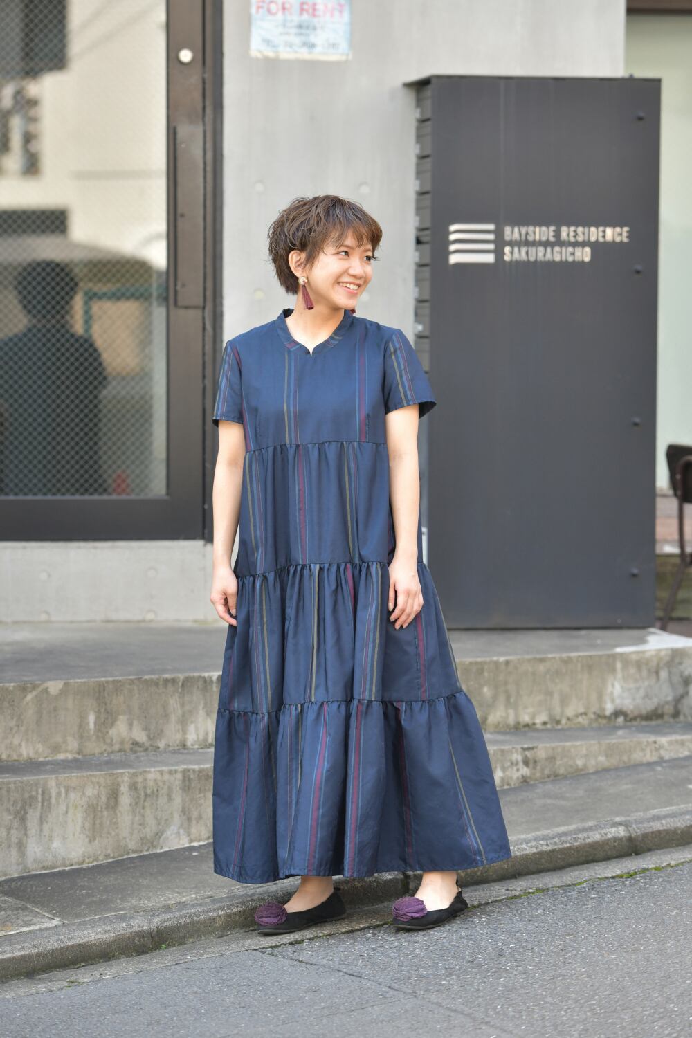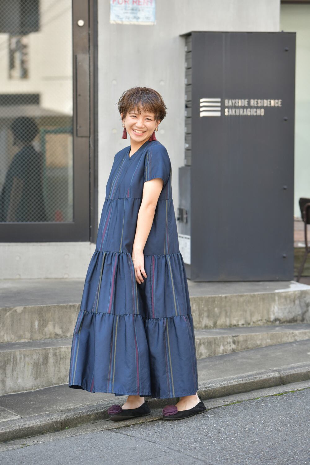 It's mother's job after along time.Tiered skirt made by "Tsumugi-Kimono".Tsumugi is very light & delicate but very durable.Rubbing the cloth makes a unique sound , which we call "kinu-zure".Wearing this skirt makes a pleasant "kinu-zure"..