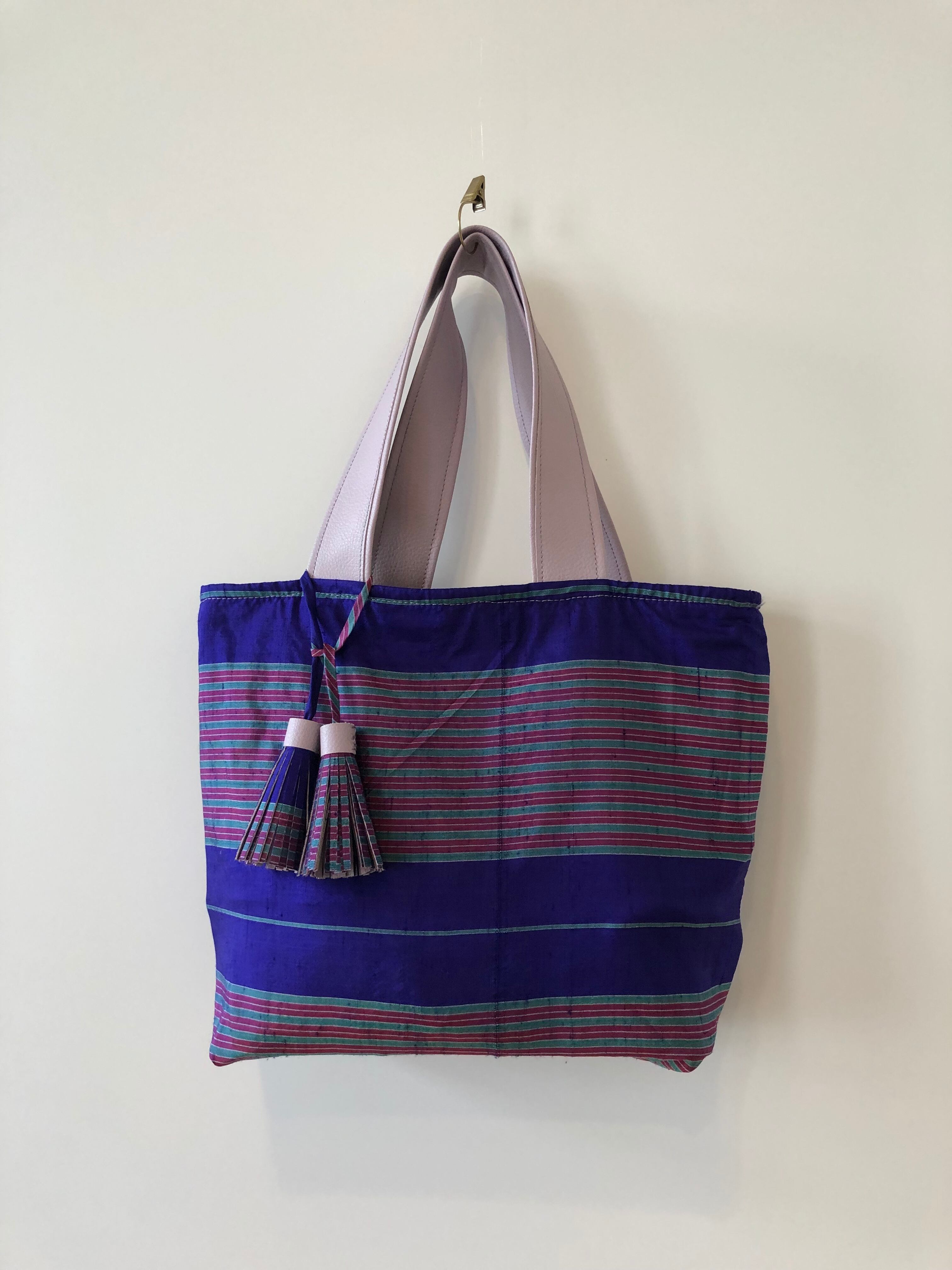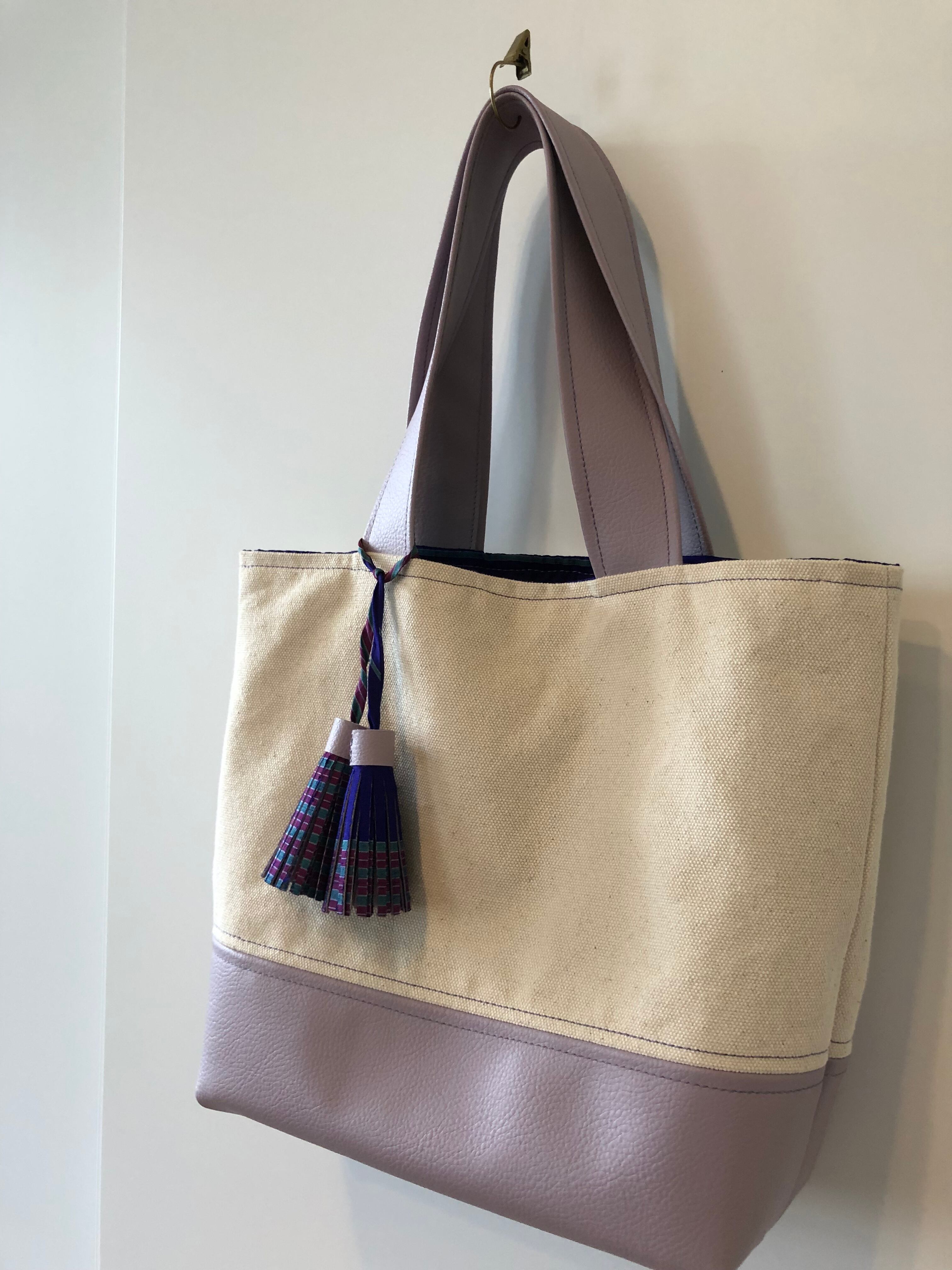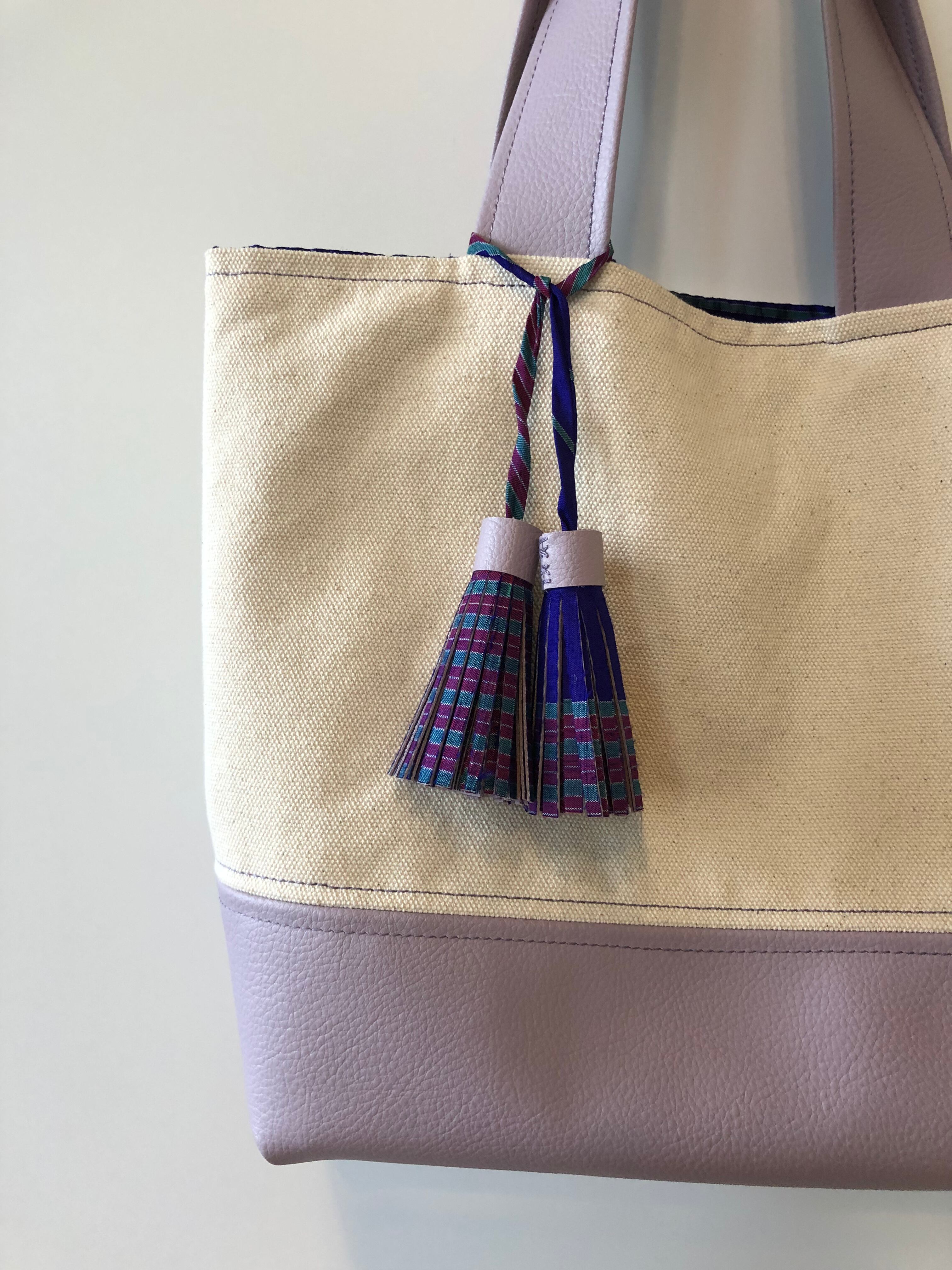 トートバック&BA.renチャーム アップサイクルトートバック エコレザー&着物リユーストートバックMサイズ