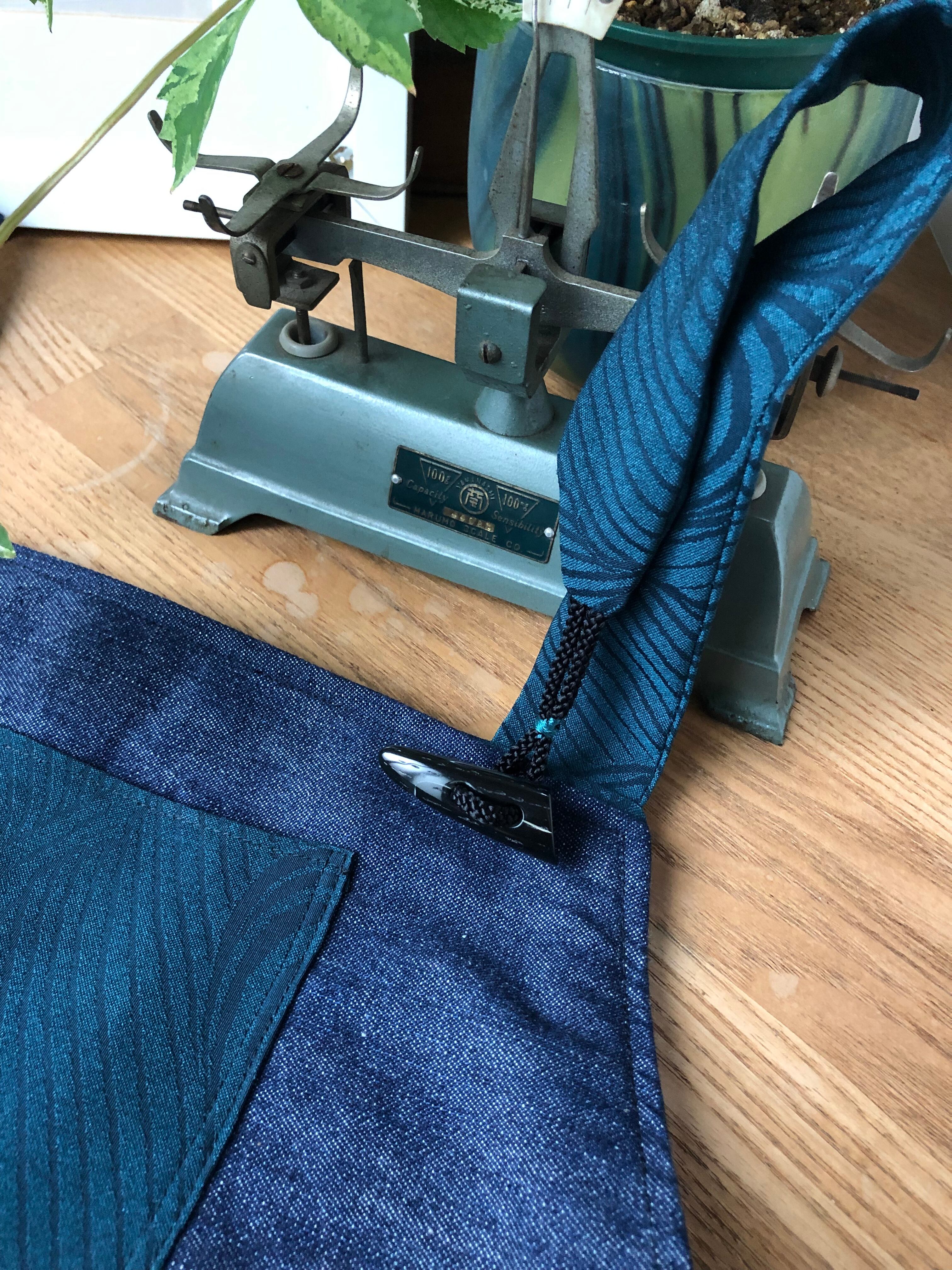 フロントとバックに着物をリユースしたポッケは大きなワンポイントアクセント
