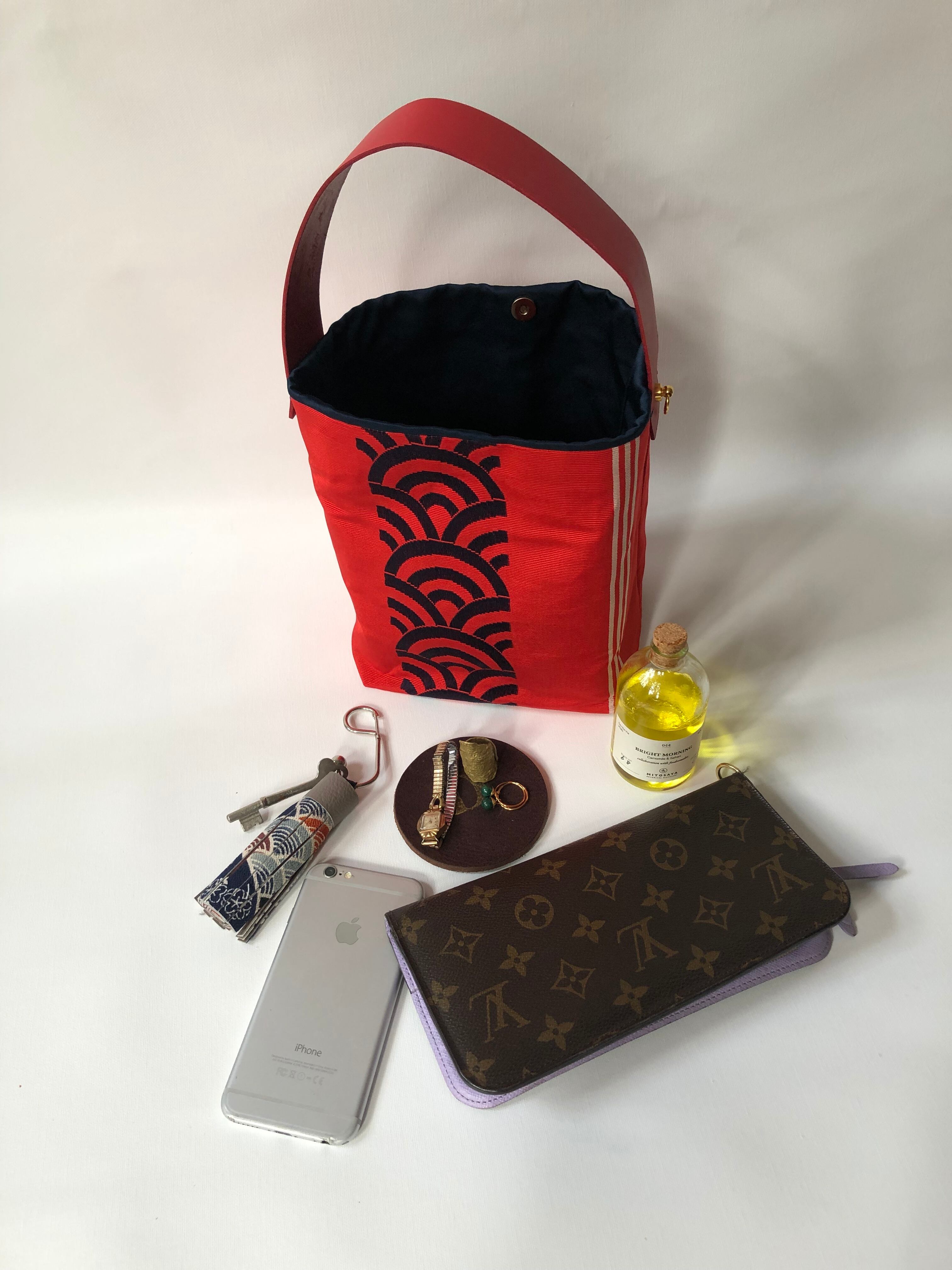 レザーワンハンドルバック 帯リユースバック 着物リメイク 青海波帯リメイク