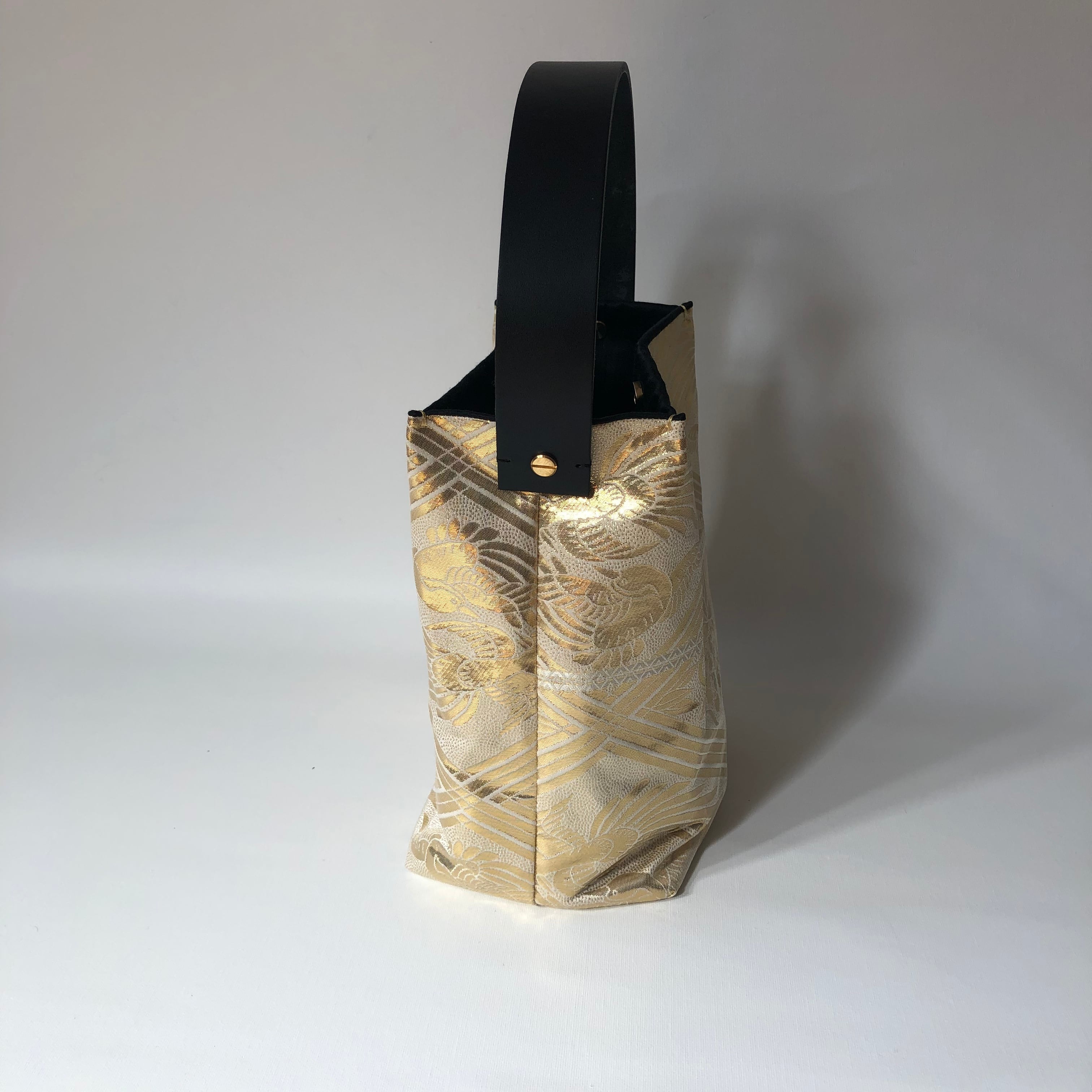 レザーワンハンドルバック 帯リユースバック 着物リメイク 錦帯リメイク バケツバック