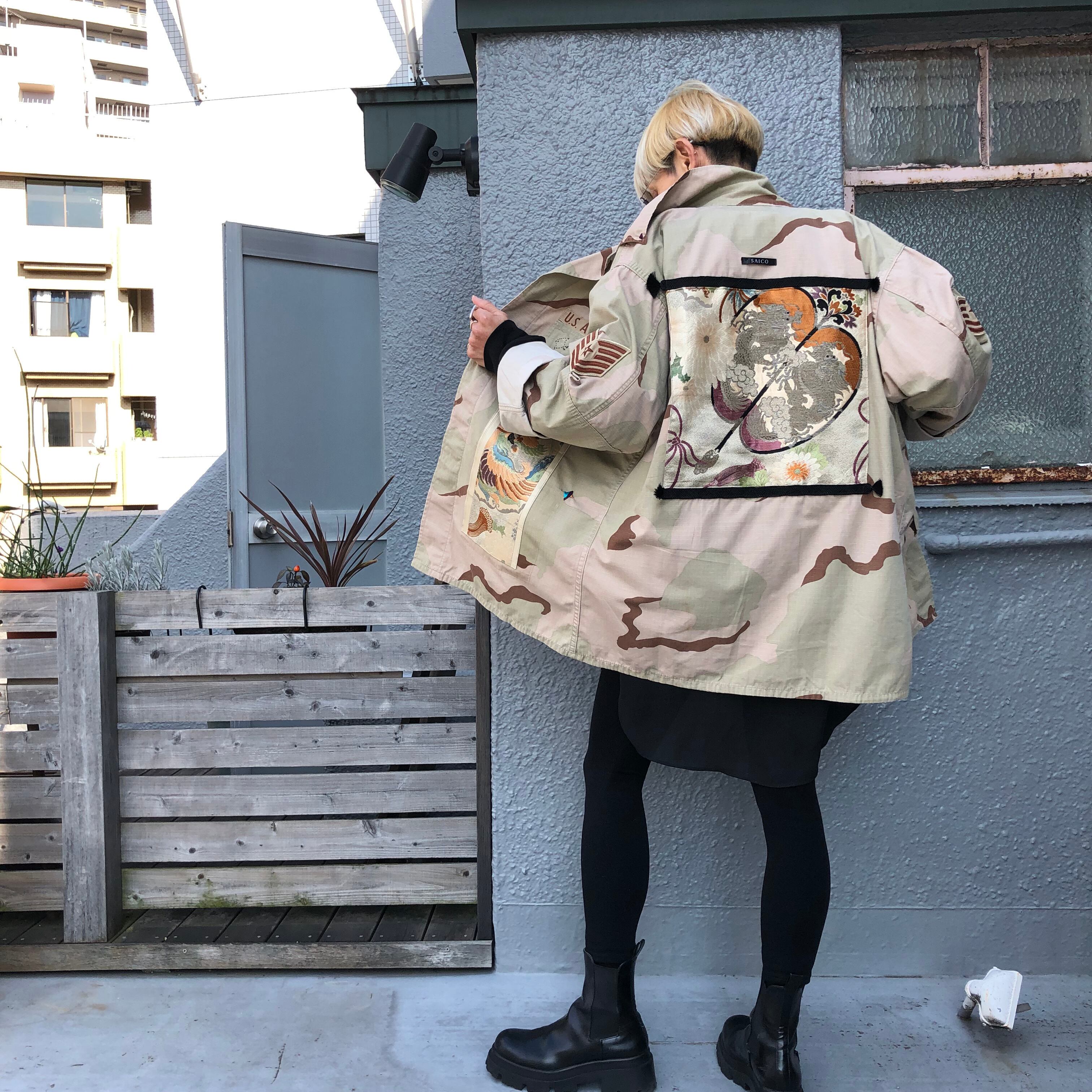 軍配扇獅子&鳳凰のアンティーク帯とUSミリタリーのUSEDジャケットのリミックス