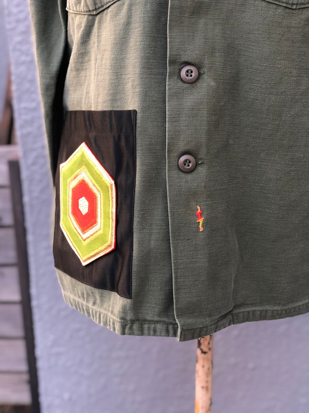 mr.Davit 様の 専用 60~70年代 ミリタリー ユーティリティシャツ USA製 メンズL ヴィンテージ 帯リユース × ミリタリーリメイクジャケット 鳳凰 US 161/2サイズ
