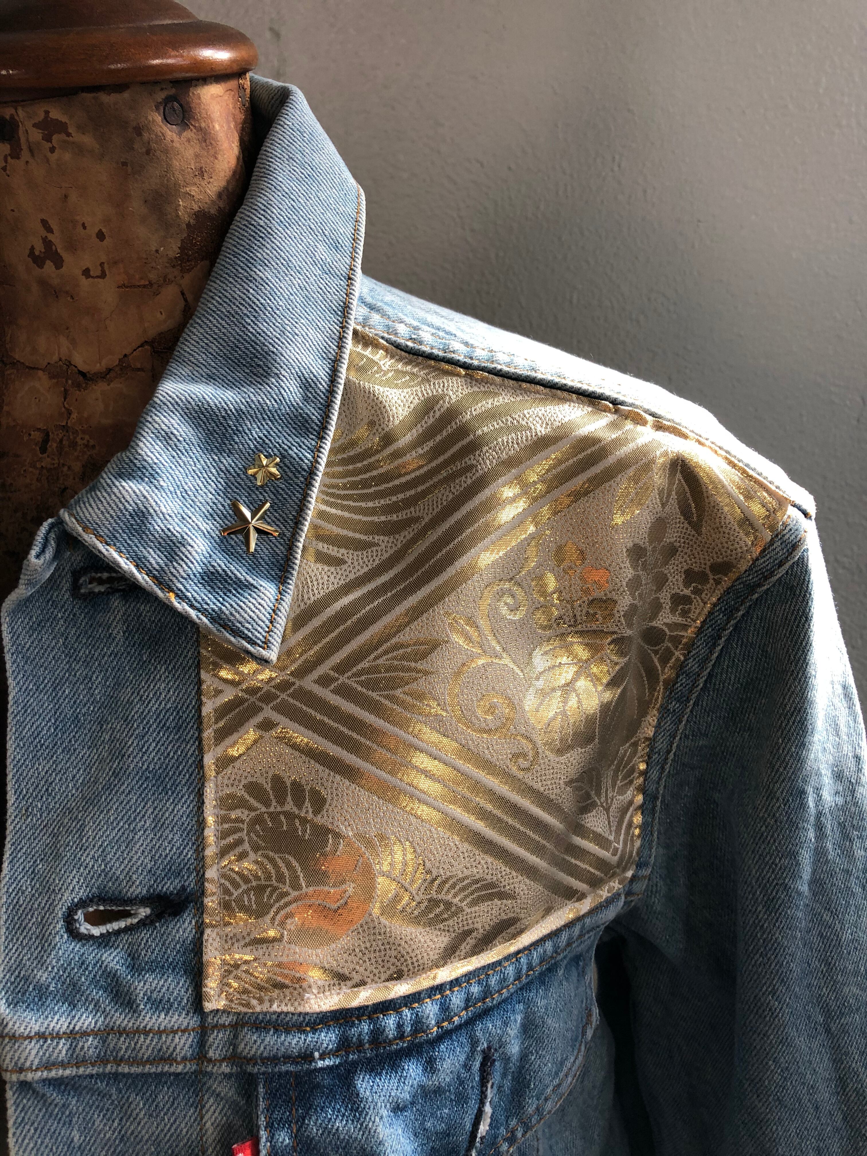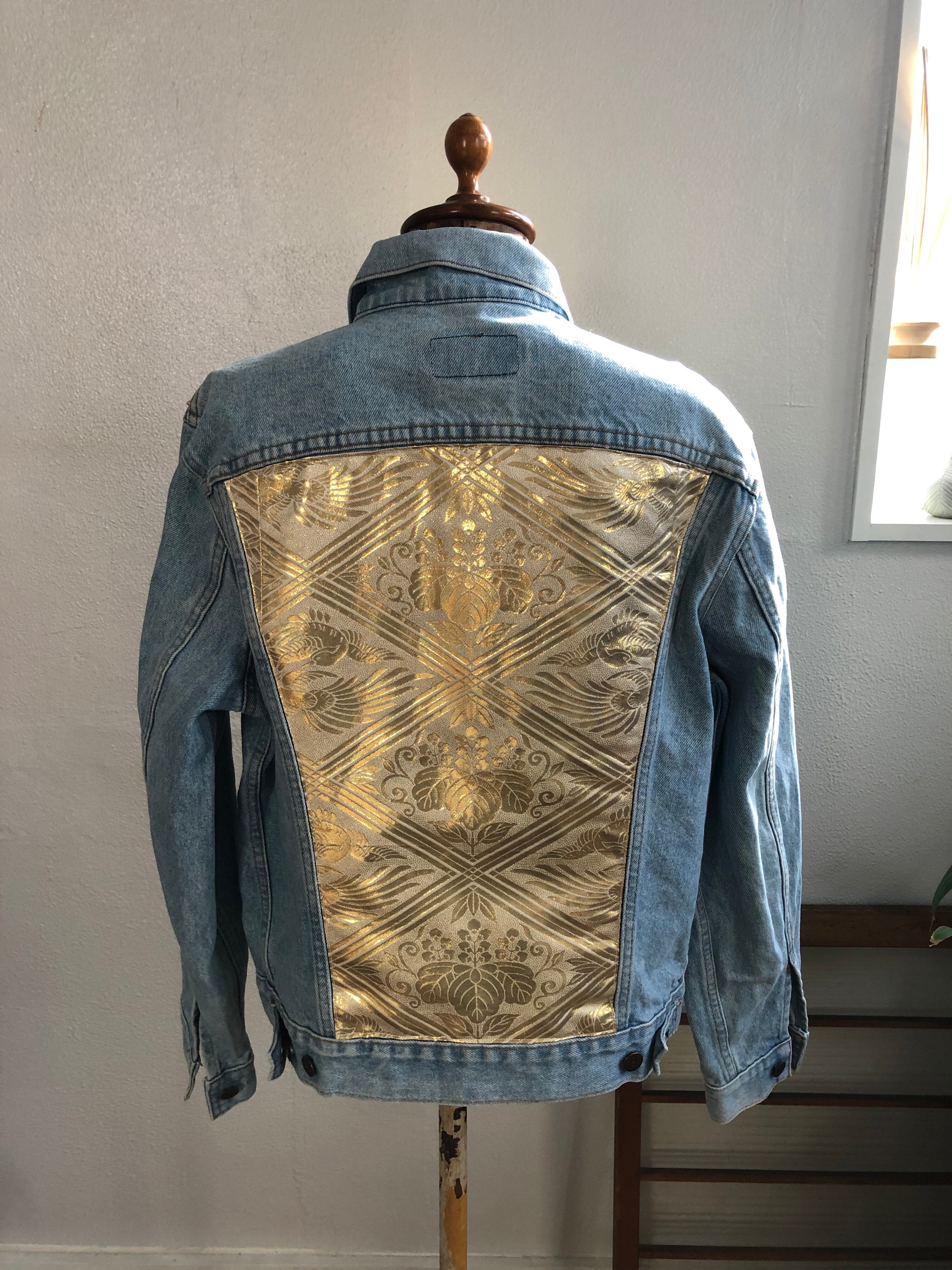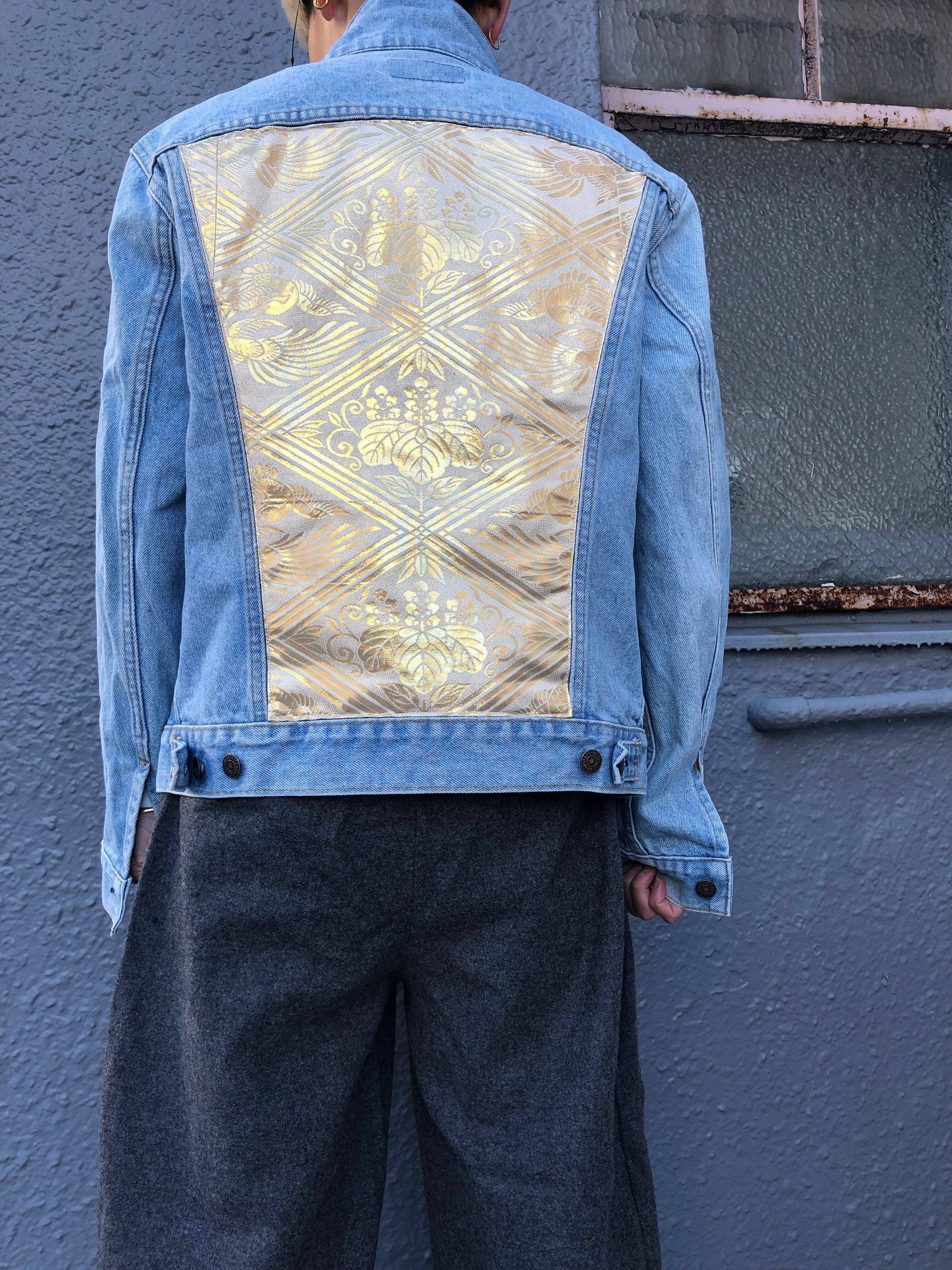 向鶴&桐紋帯リユース × used デニムジャケット リメイクジャケット 一点もの