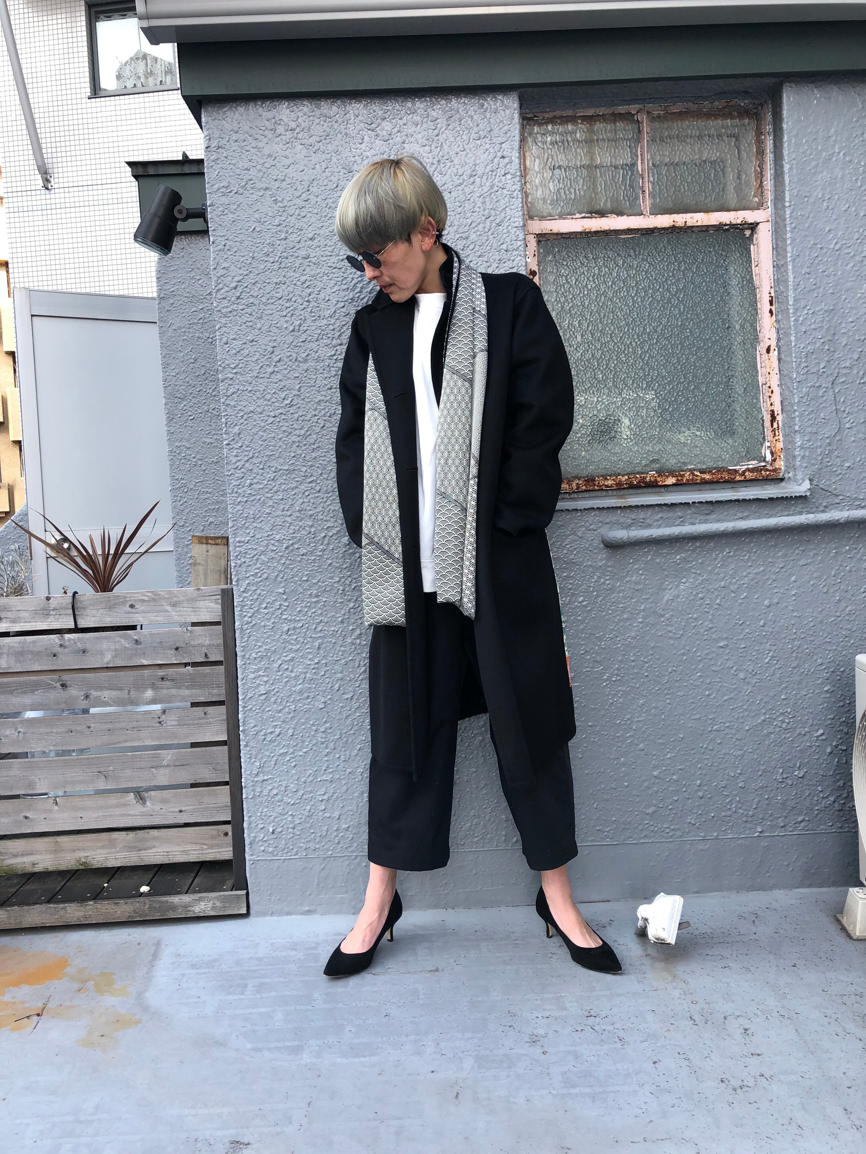 着物リユースストール シルク100% 青海波×絽 リバーシブル マフラー