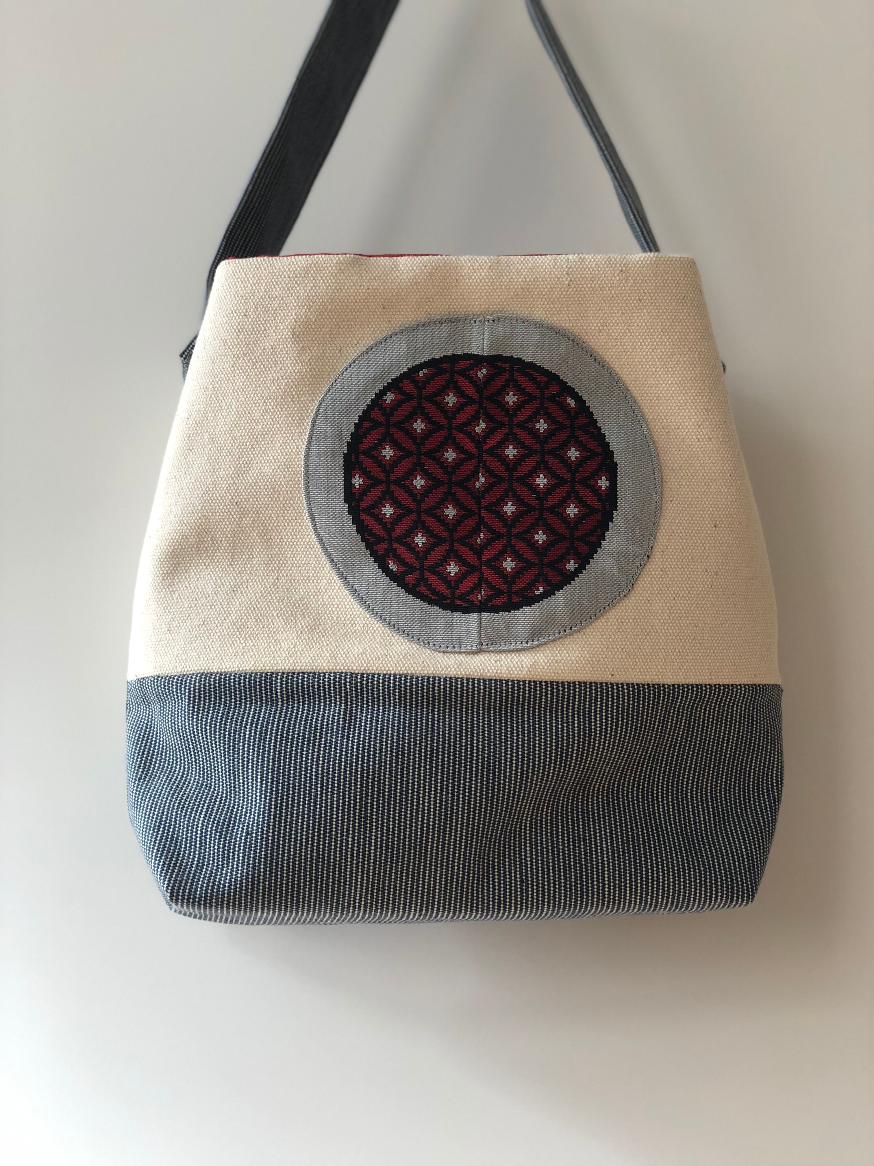 1点もの 帯ワッペン デニム×帆布 ワンハンドル トートバック 帯リユースバック 着物リメイク
