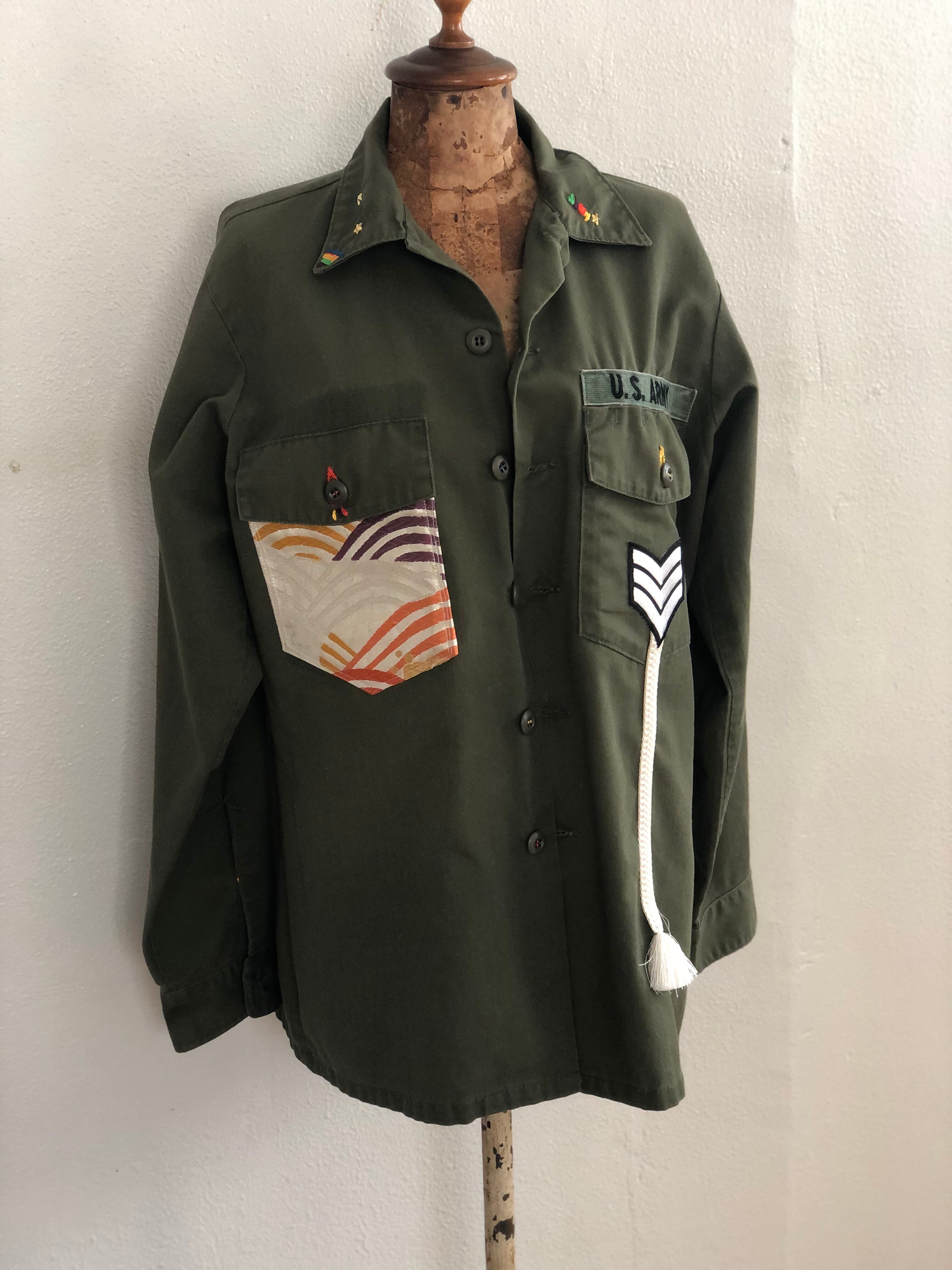 USミリタリー ×青海波帯リユースジャケット 80年代 80s US ARMY