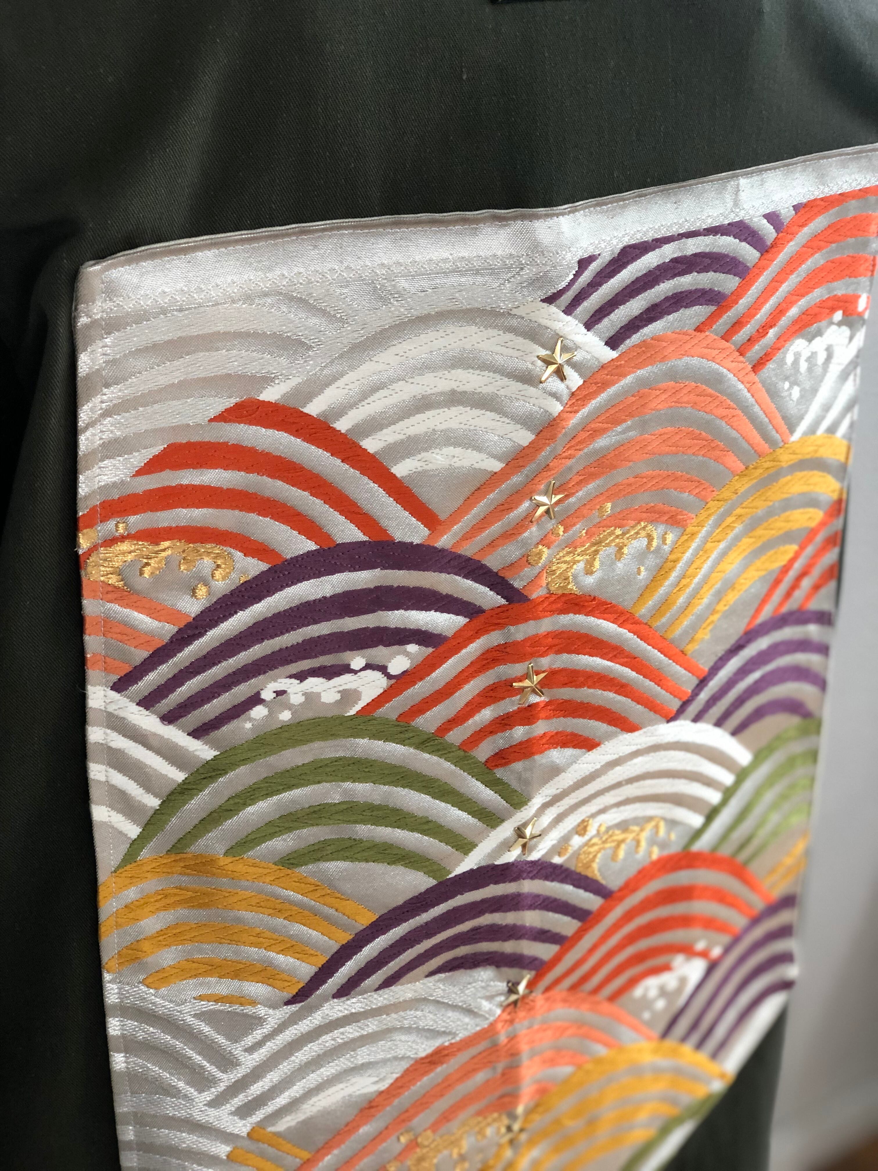 色とりどりの青海波紋様の帯をリユースしたフュージョンジャケット
