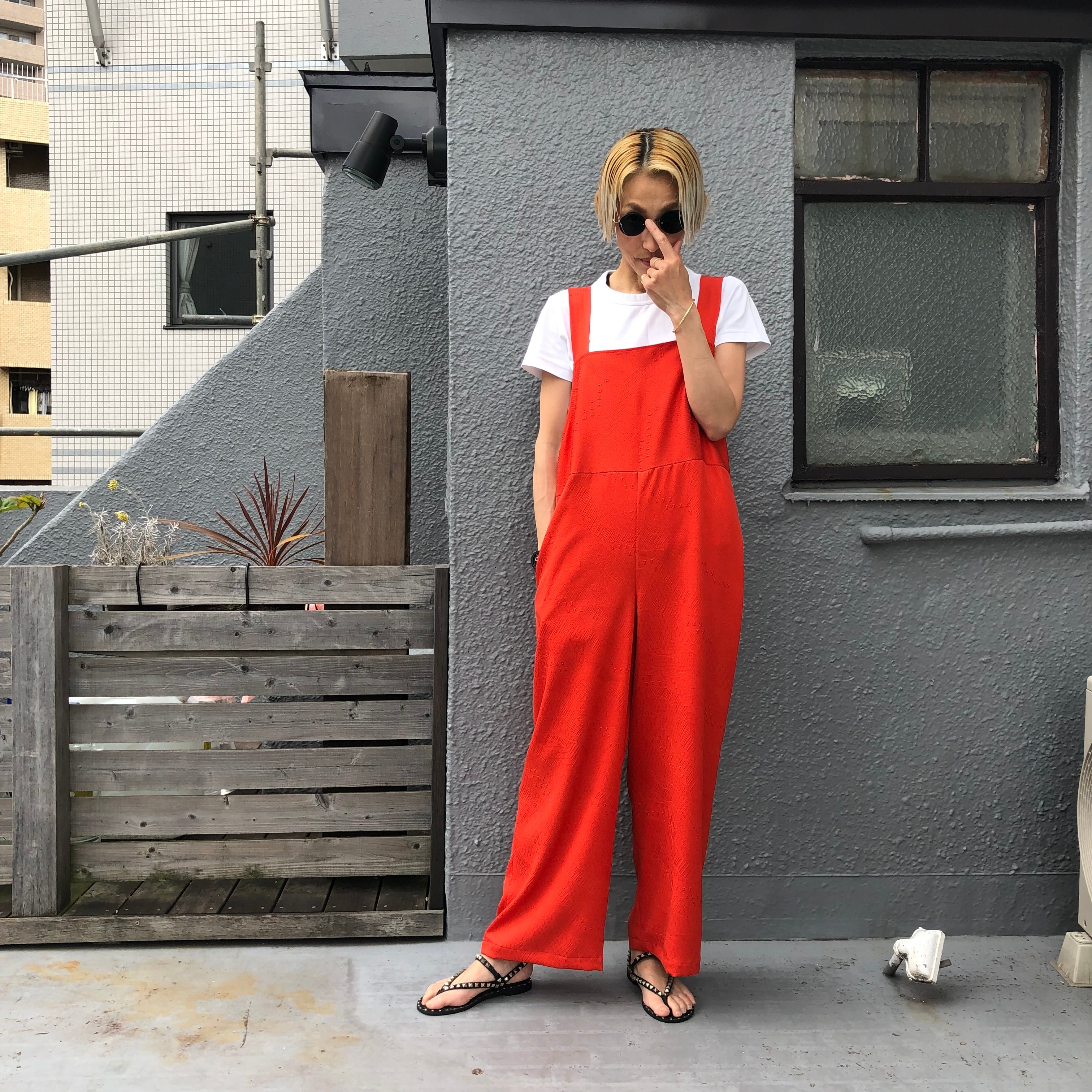 朱色 道行リユースサロペット 着物リメイク リユース