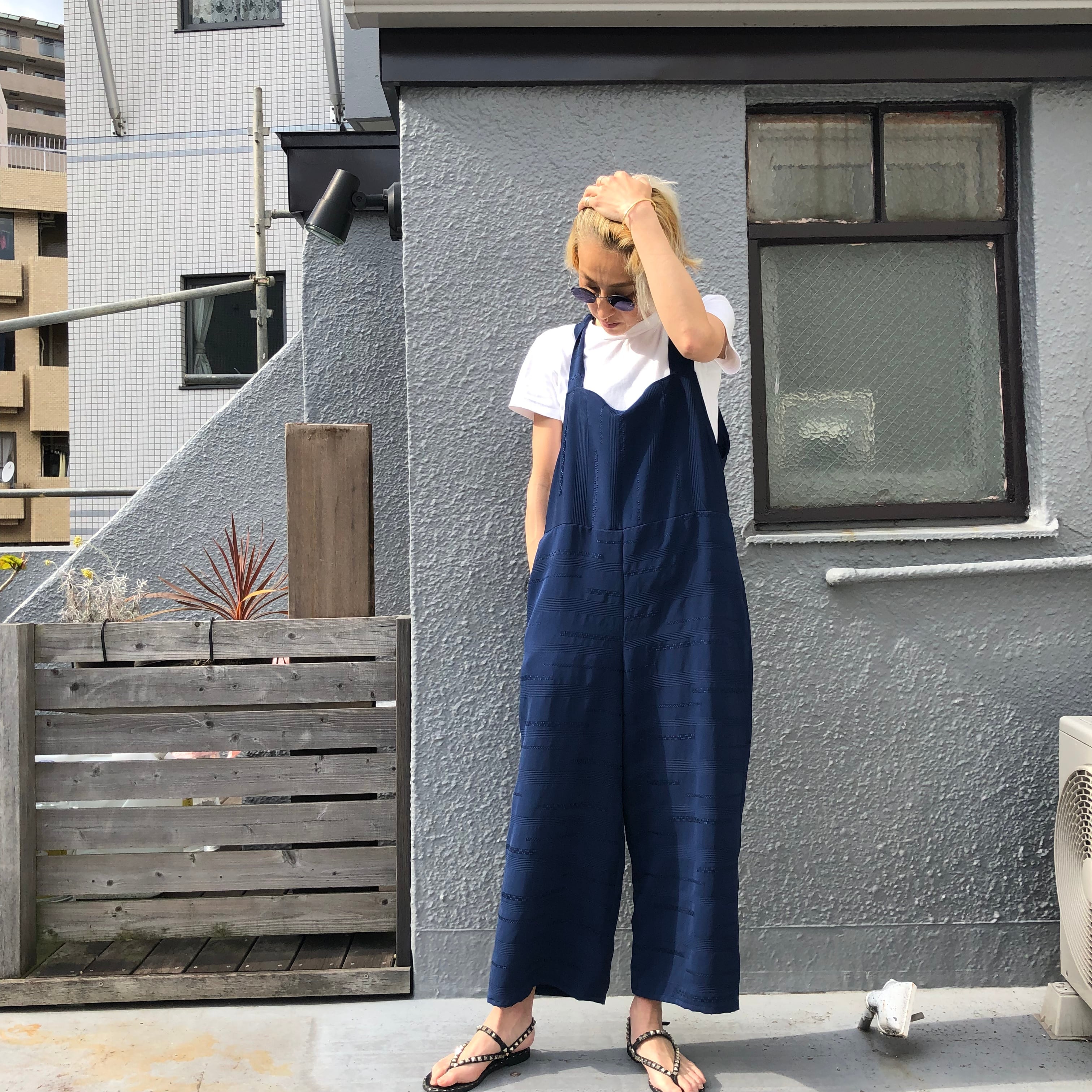 瑠璃紺色 道行リユースサロペット 古典柄 着物リメイク リユース