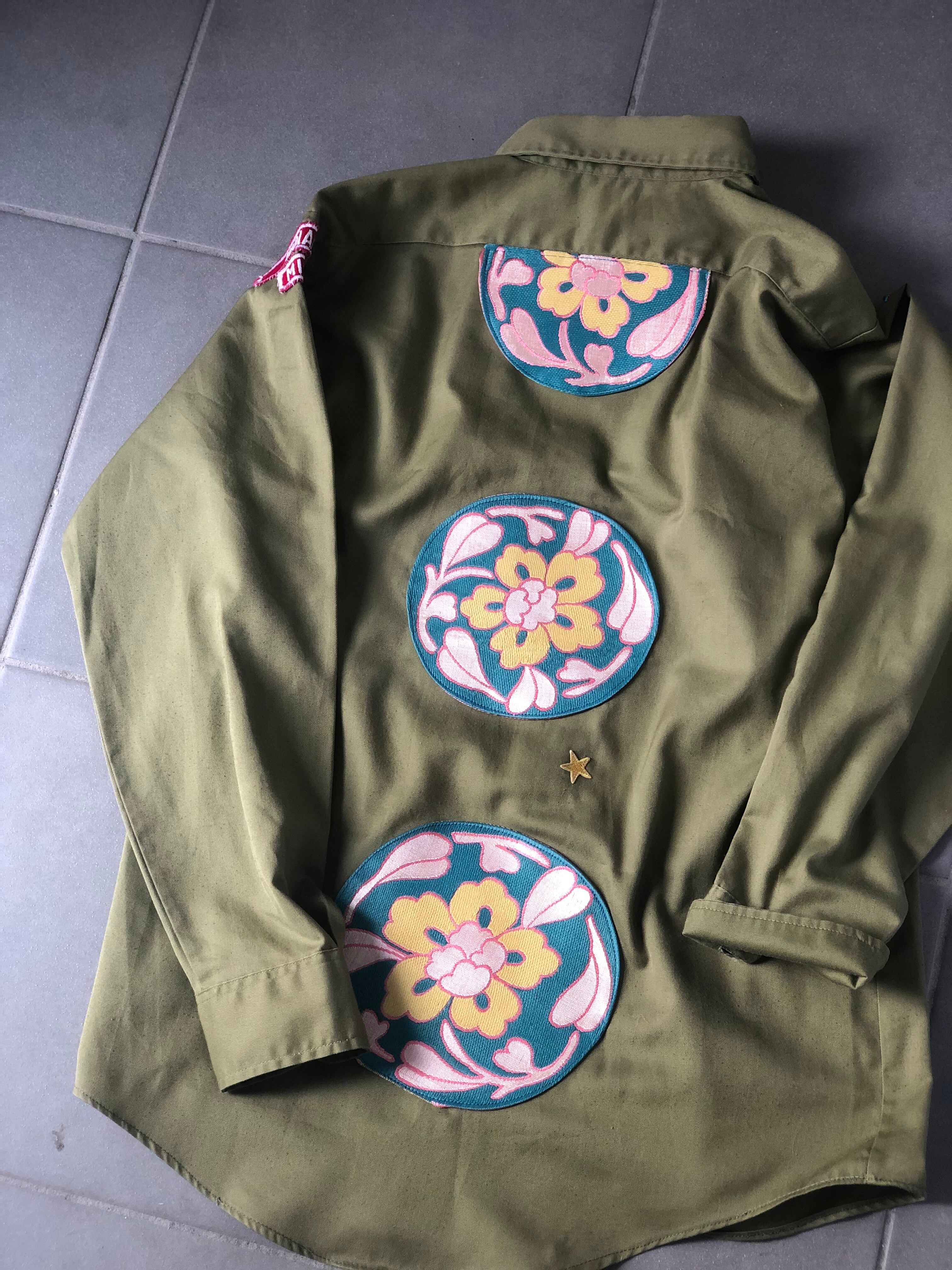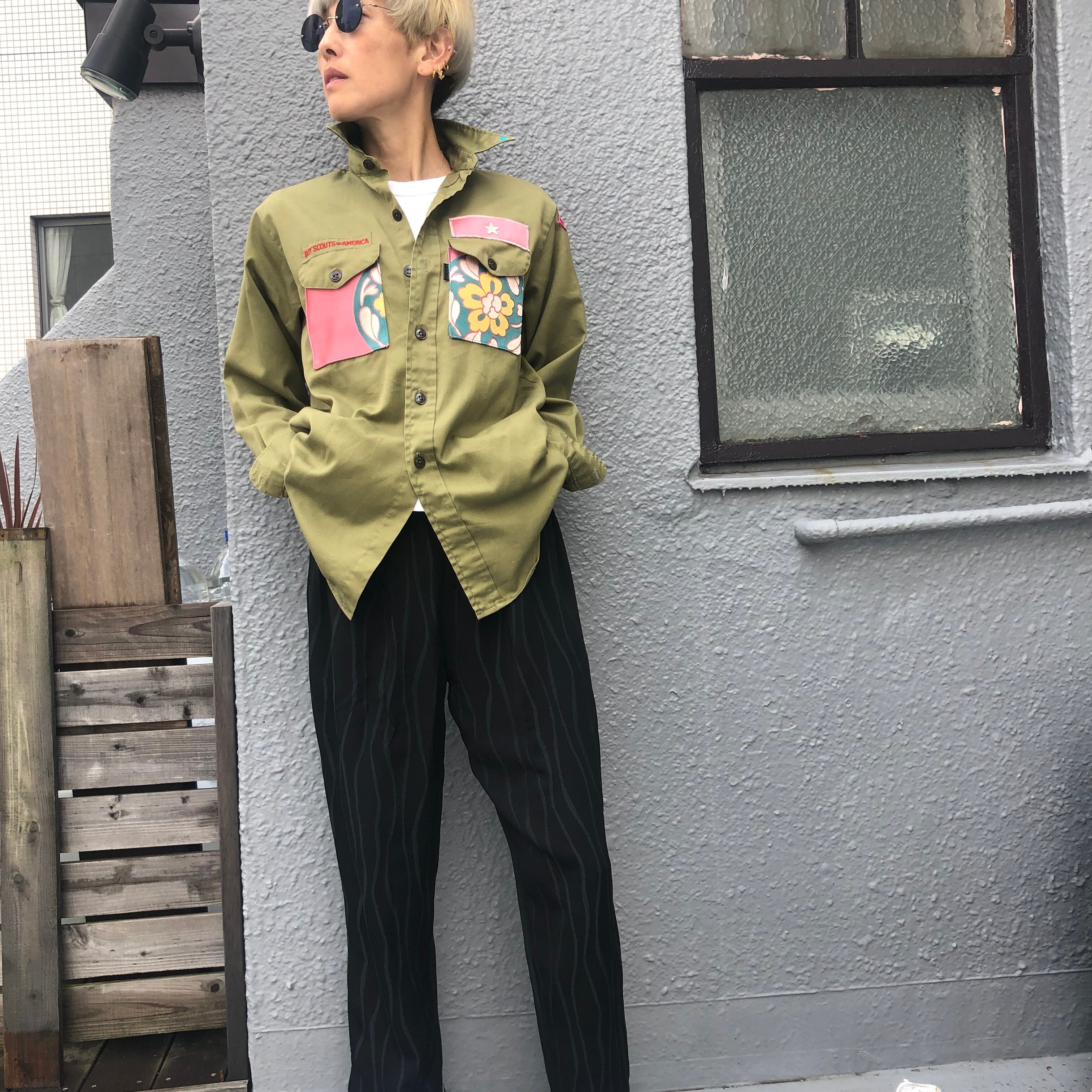 特別SALEプライス 団子2.5兄弟 帯リユースパッチワークジャケットUSED USボウイスカウトシャツリボーン