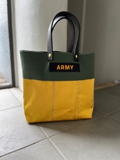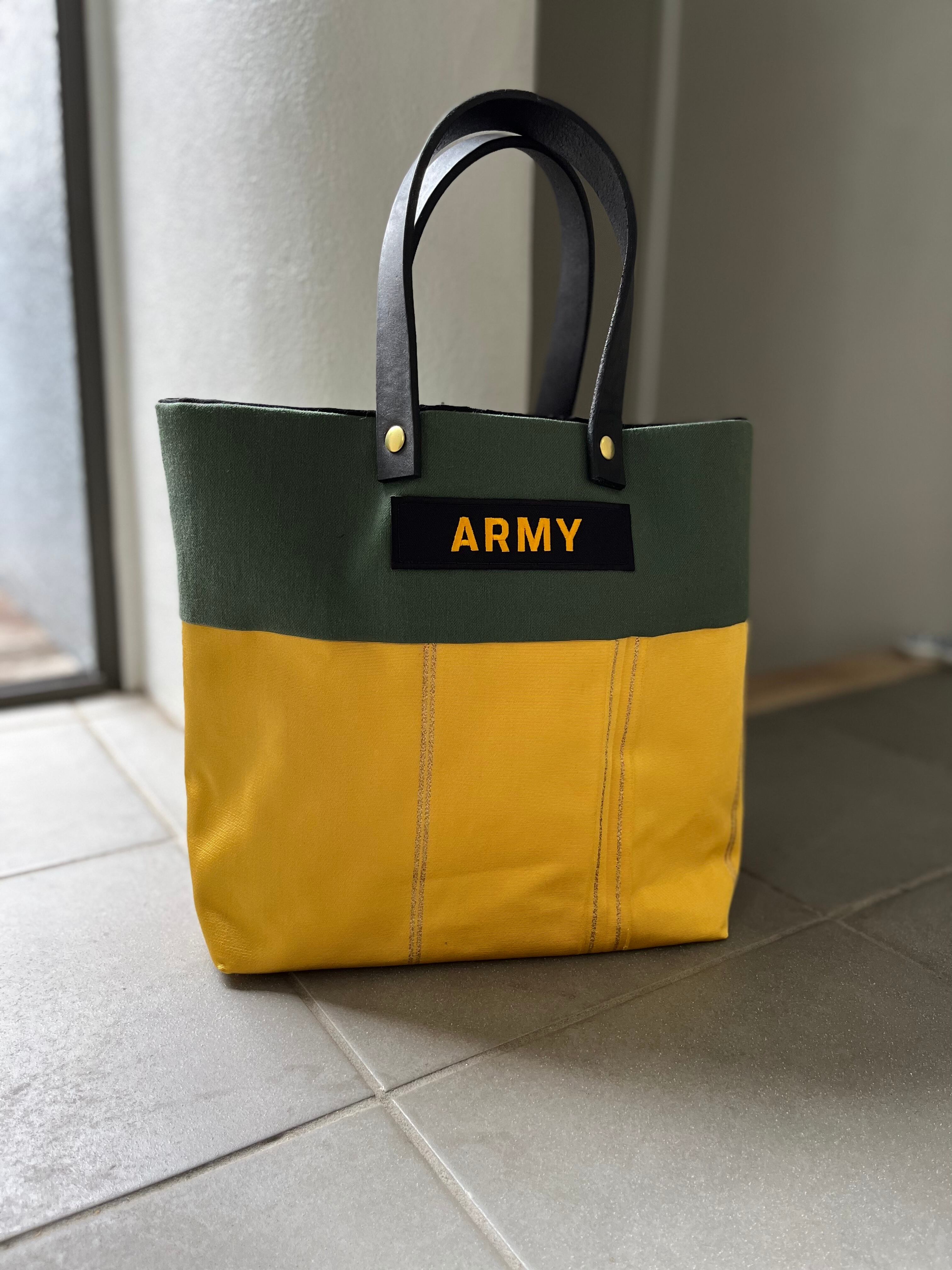 1点もの ビックサイズ 帯トートバック レザーハンドルバック 帯×ミリタリーランドリーバック リユースバック 着物リメイク