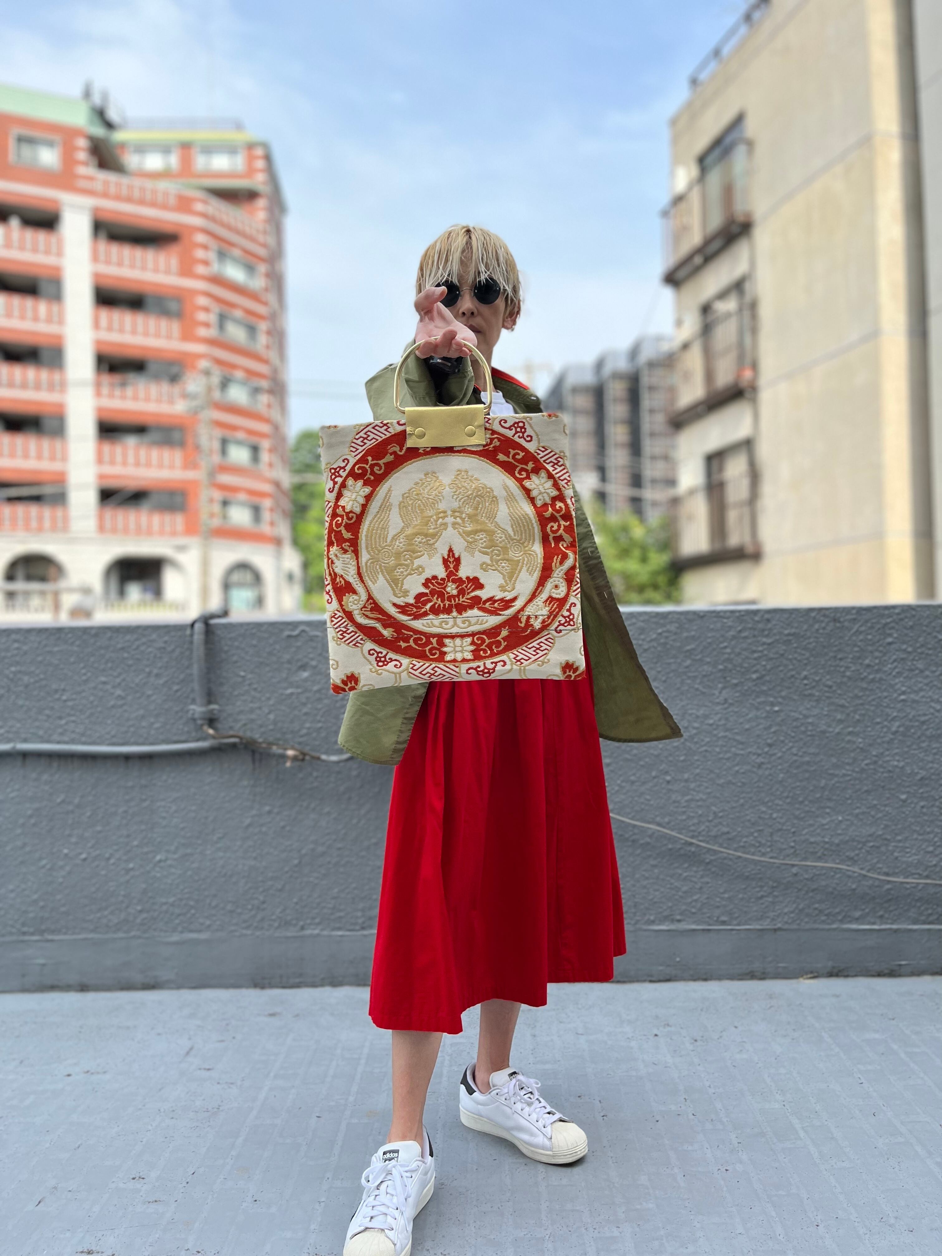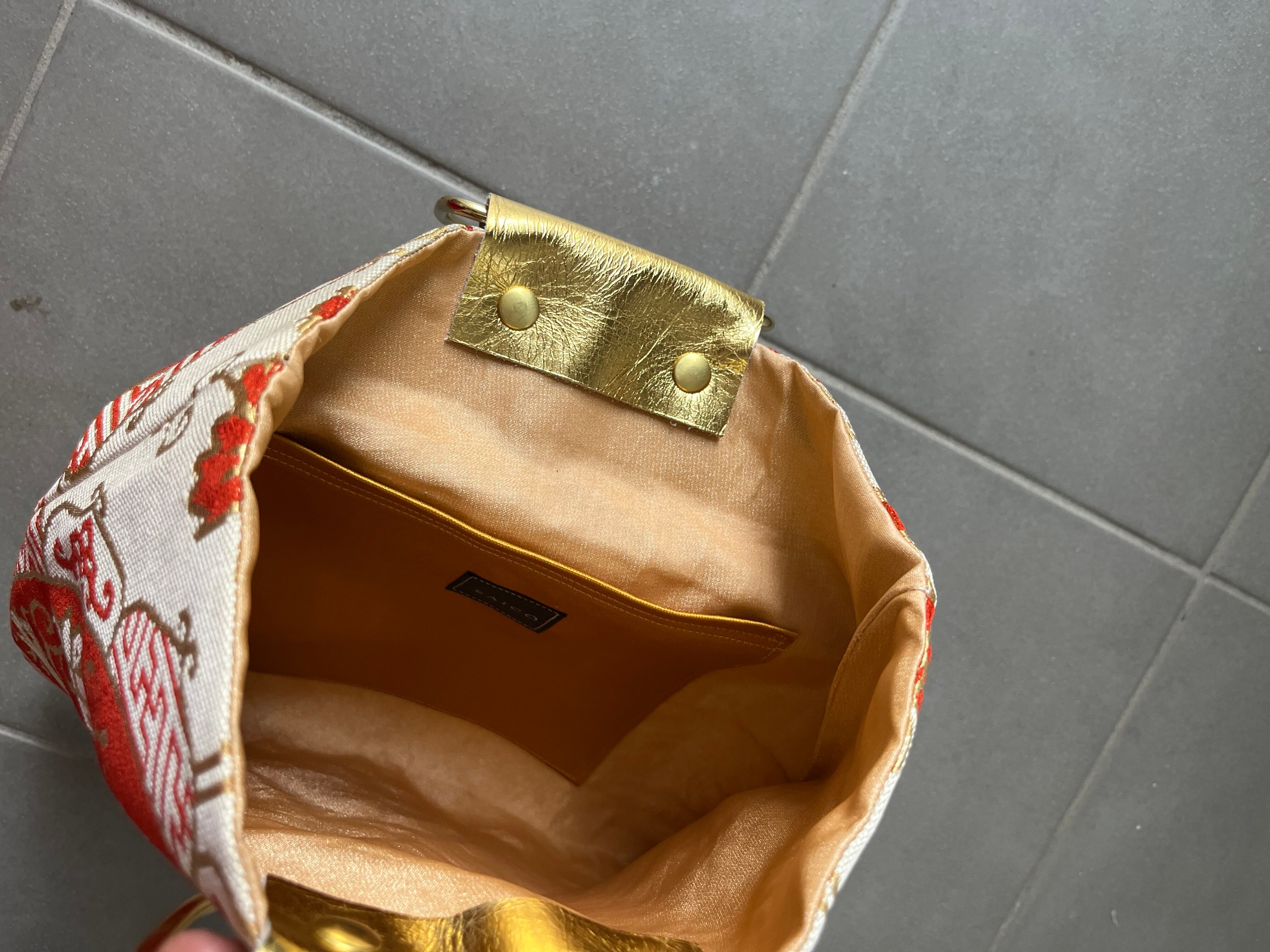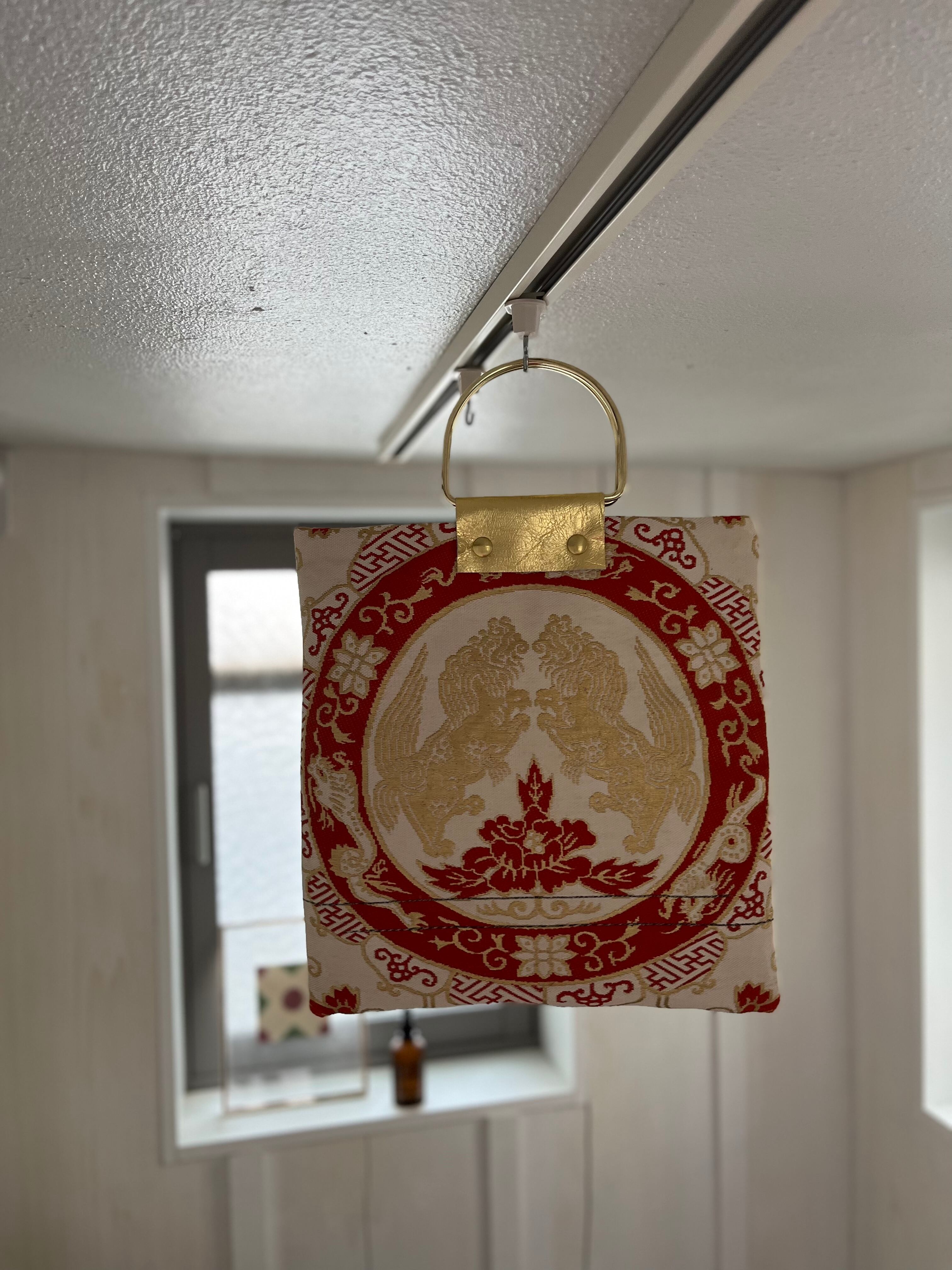 MONJIさま専用お取り置き 1点もの 帯リユース ハンドルバック The Guardian Dogs 狛犬帯 パーティバック